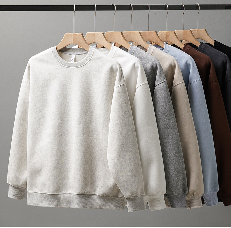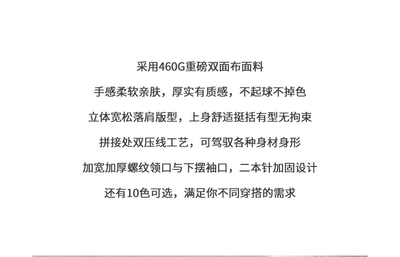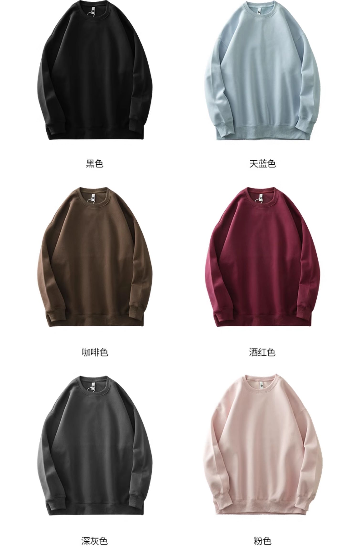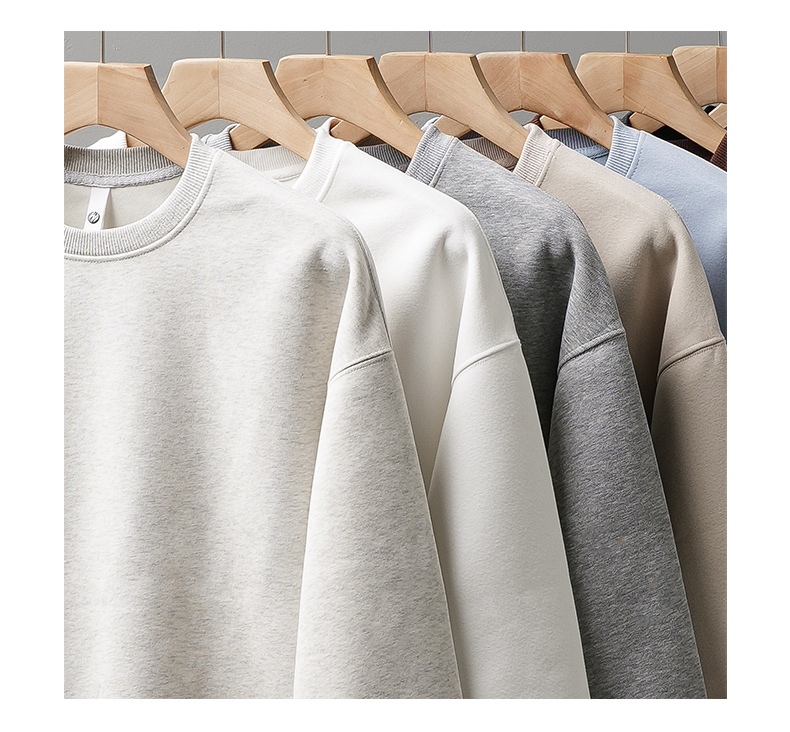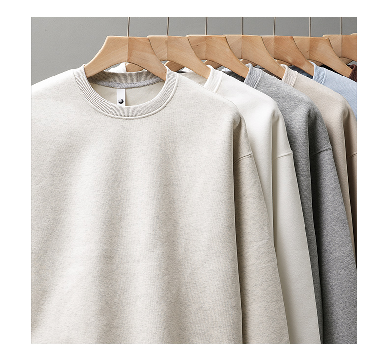 460G重磅加絨衛衣男2025秋冬款美式寬松純色圓領打底衫長袖外套潮