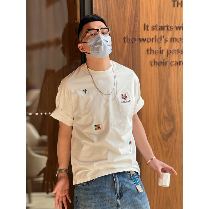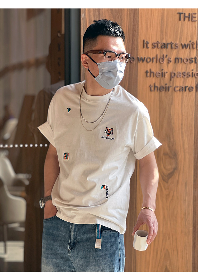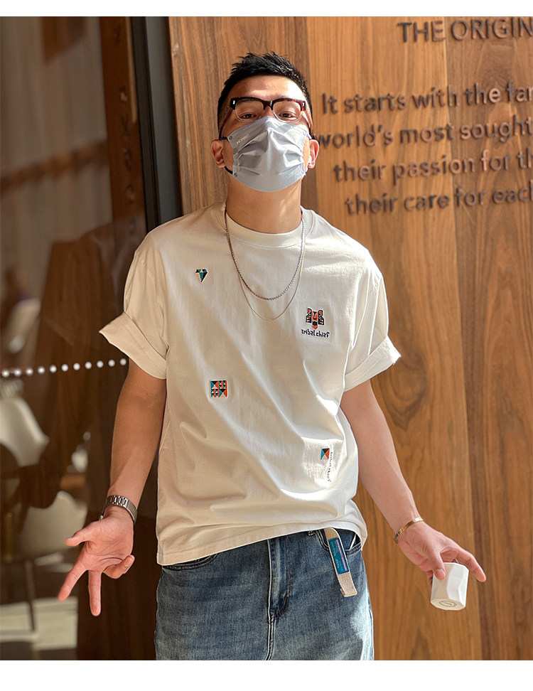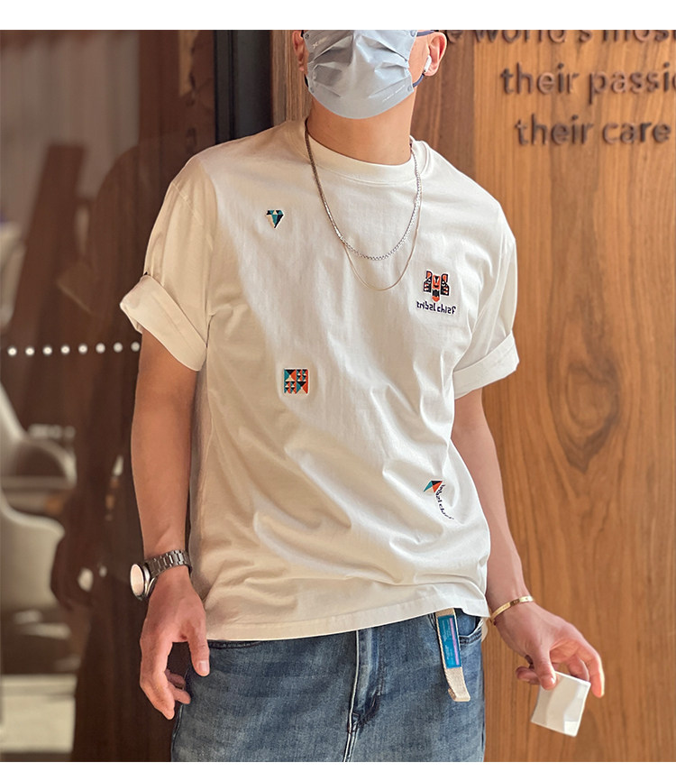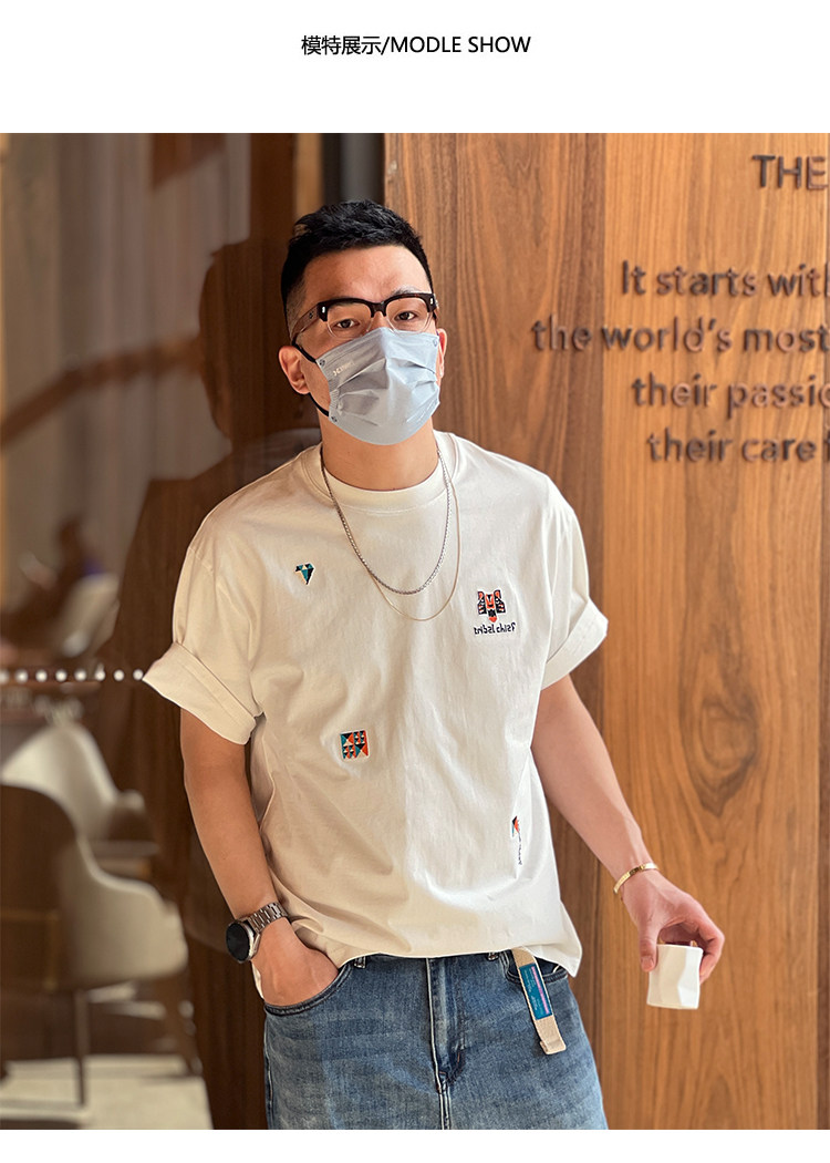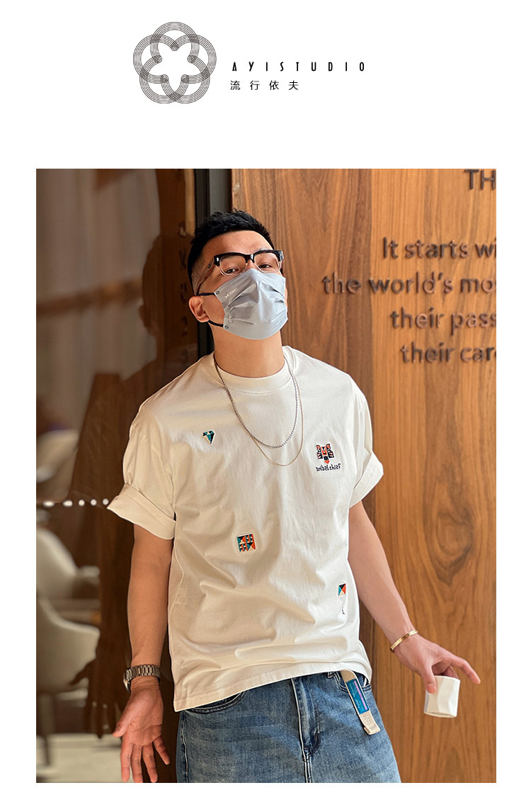 港風設計感小衆刺綉短袖t恤男潮流虎頭高級感ins純棉寬松半袖上衣
