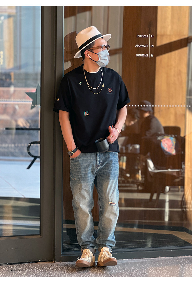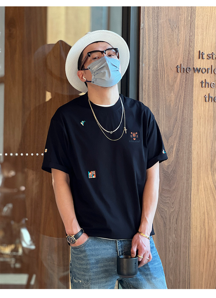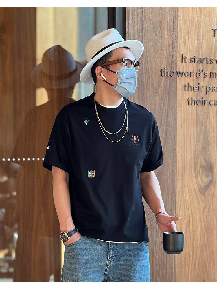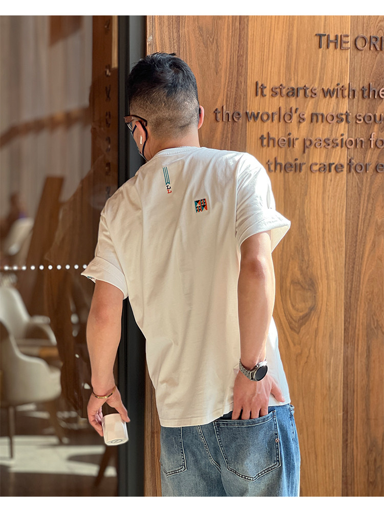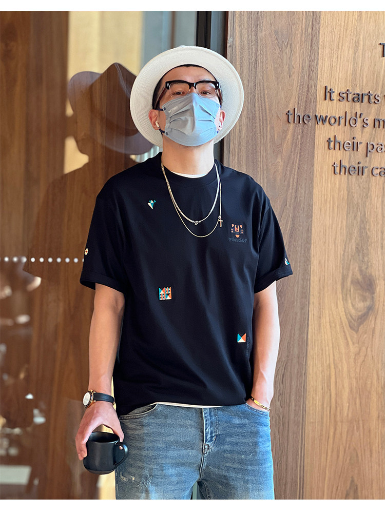 港風設計感小衆刺綉短袖t恤男潮流虎頭高級感ins純棉寬松半袖上衣