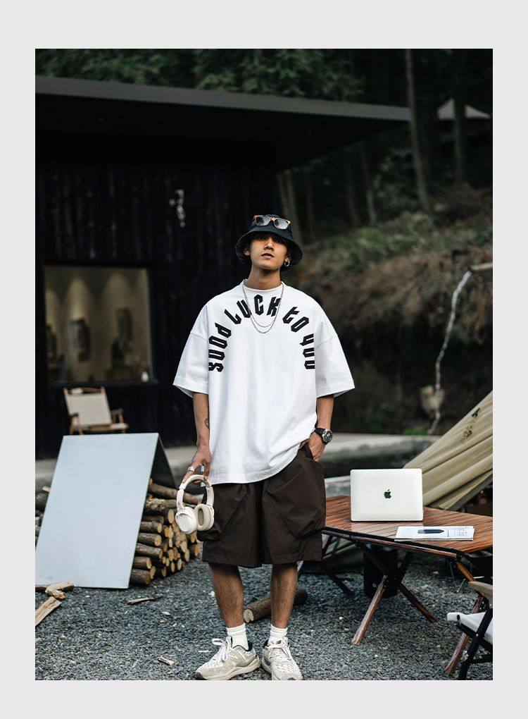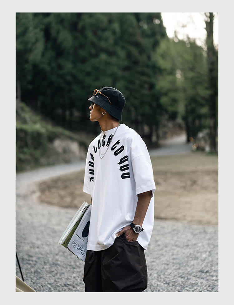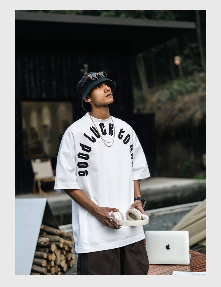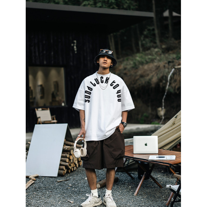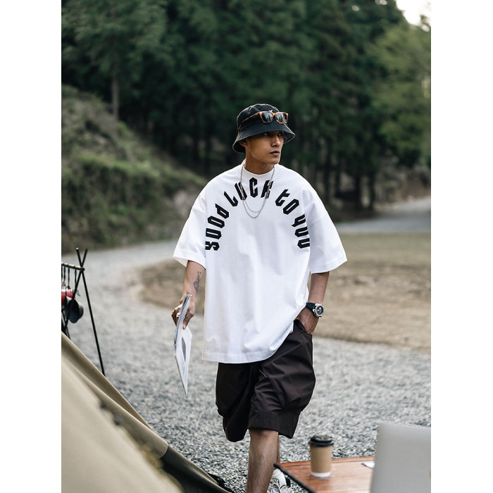 特大碼300斤日系字母印花短袖T恤男裝夏季潮流百搭圓領體恤上衣服