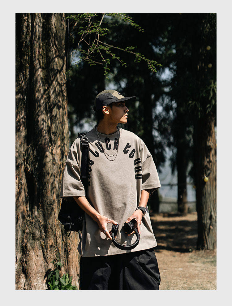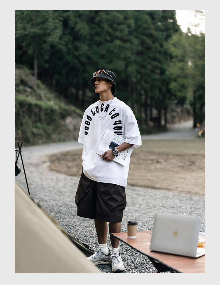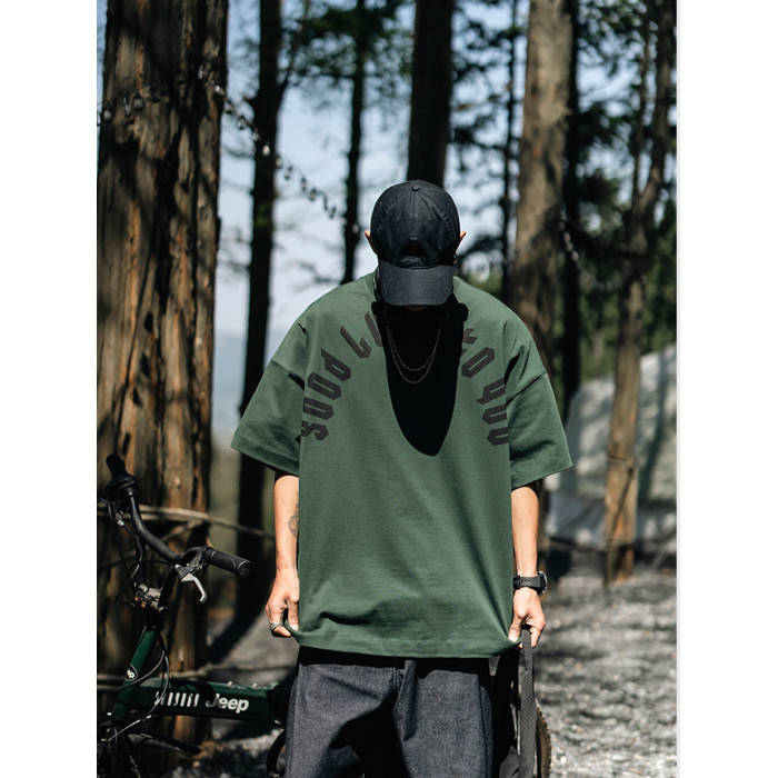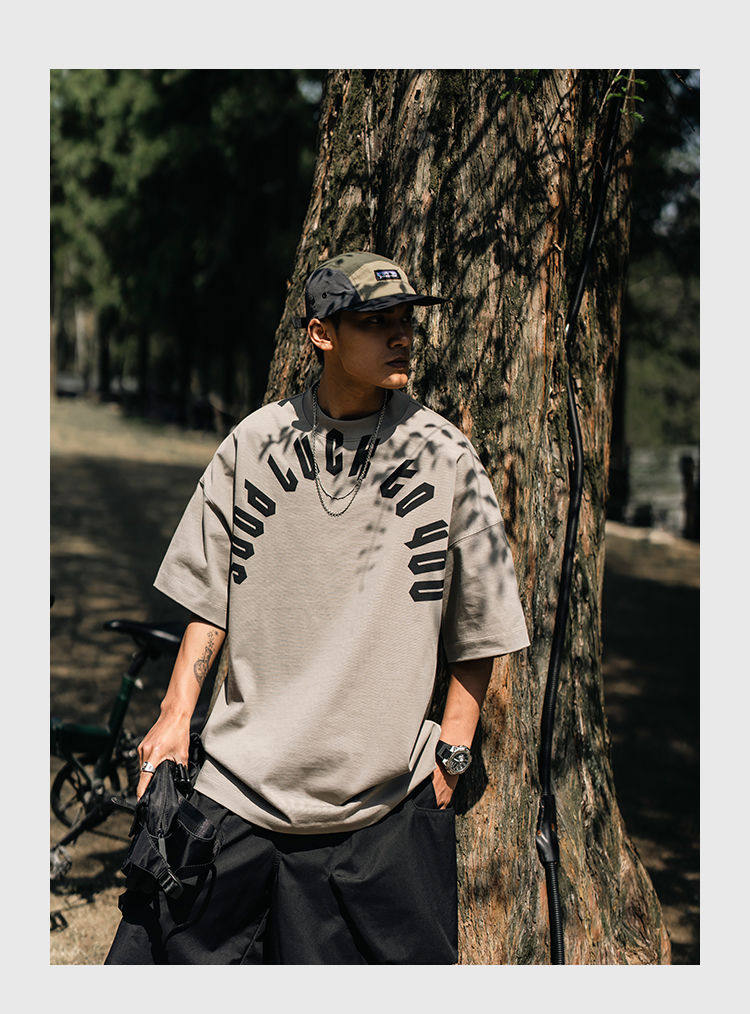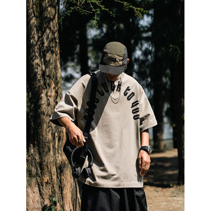 特大碼300斤日系字母印花短袖T恤男裝夏季潮流百搭圓領體恤上衣服