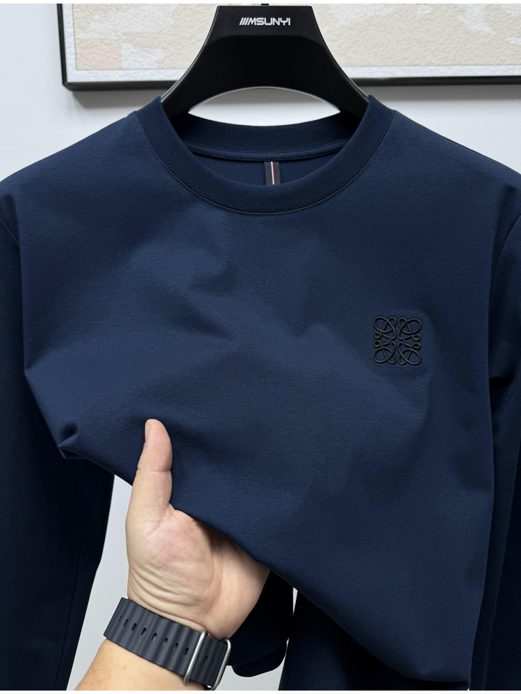 輕奢潮牌衛衣男圓領春季休閒t恤男長袖打底衫男裝上衣潮小衫T
