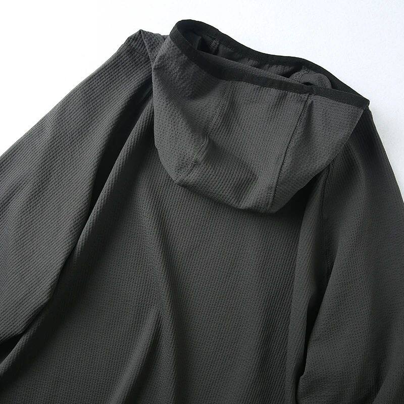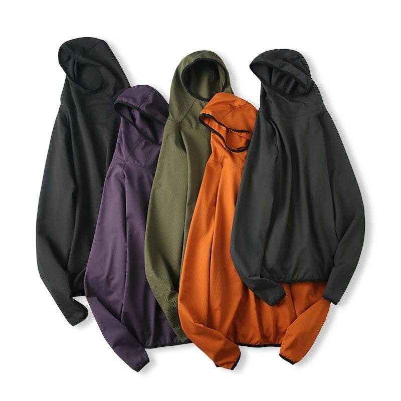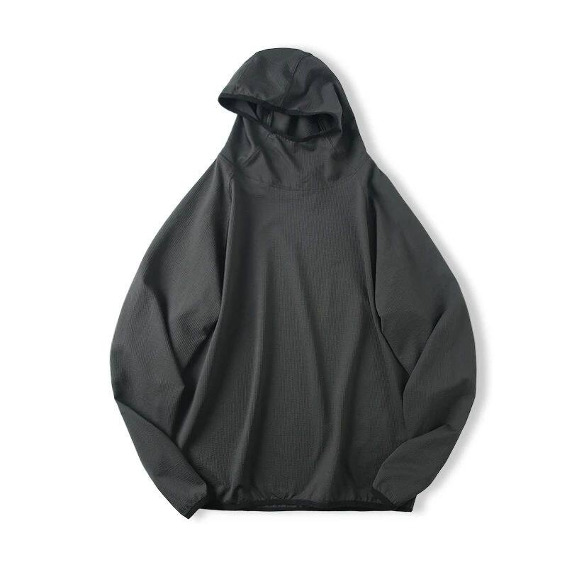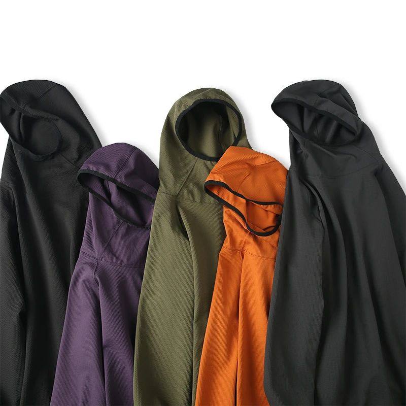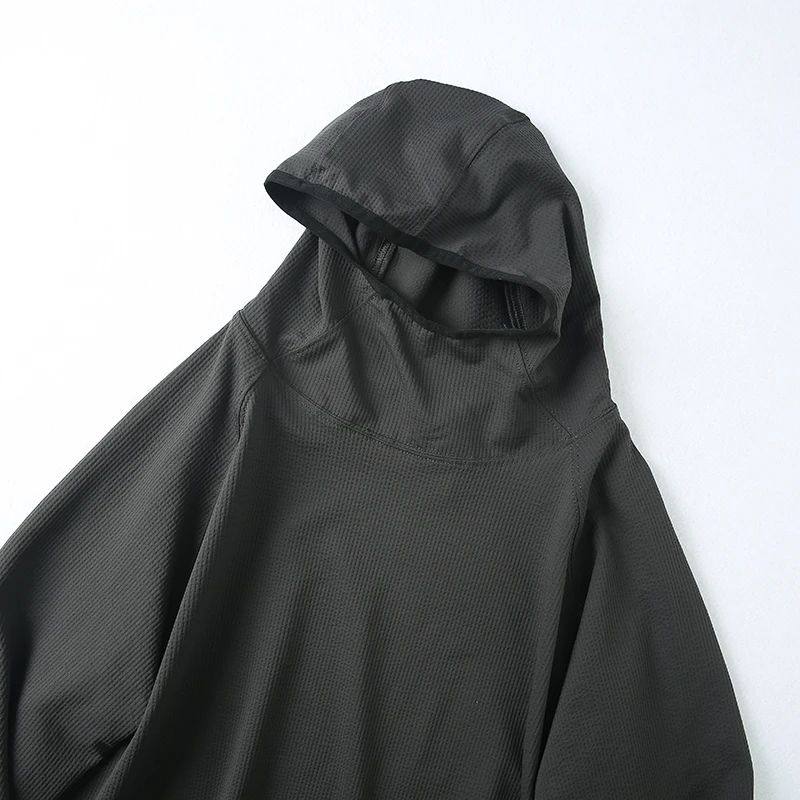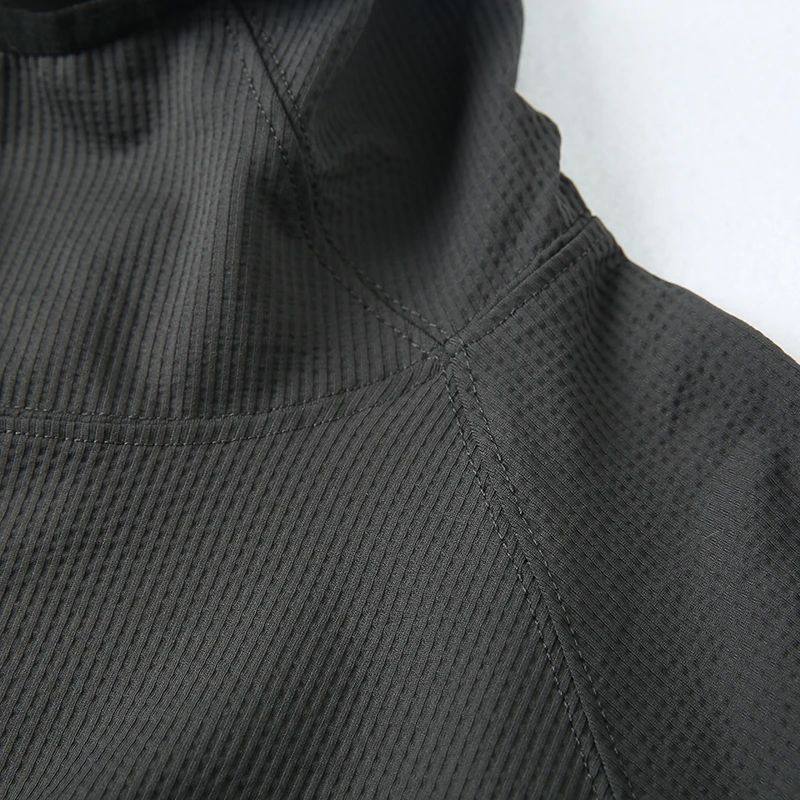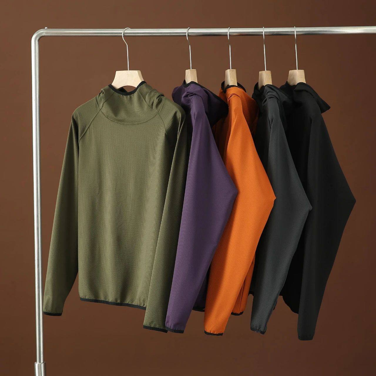 尾貨彈力泡泡紗男女同款戶外山系寬松連帽薄款套頭衛衣帽衫