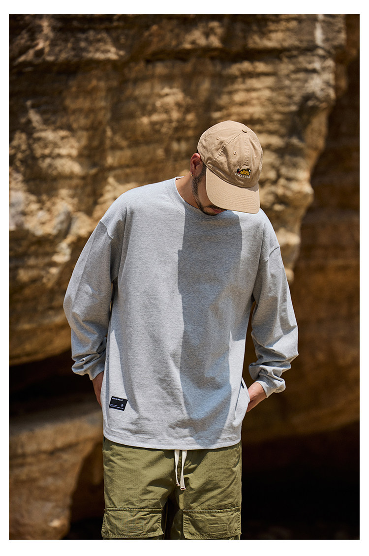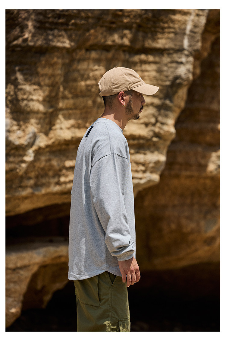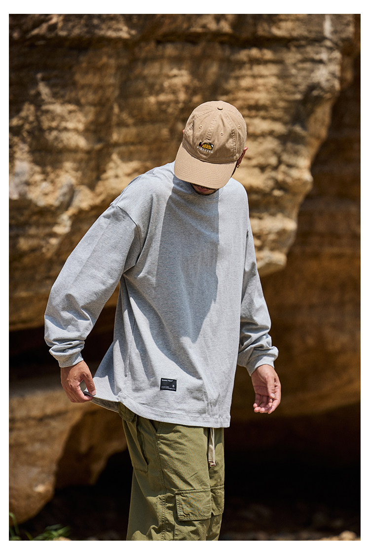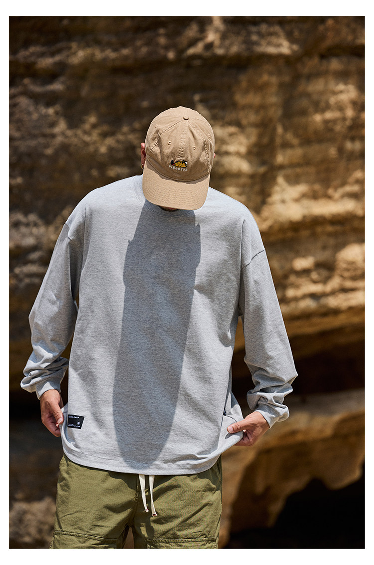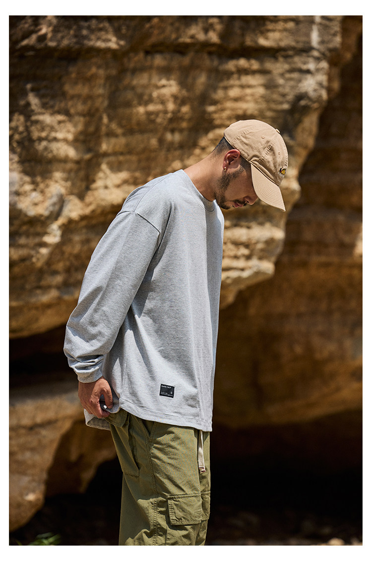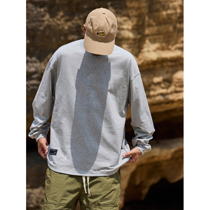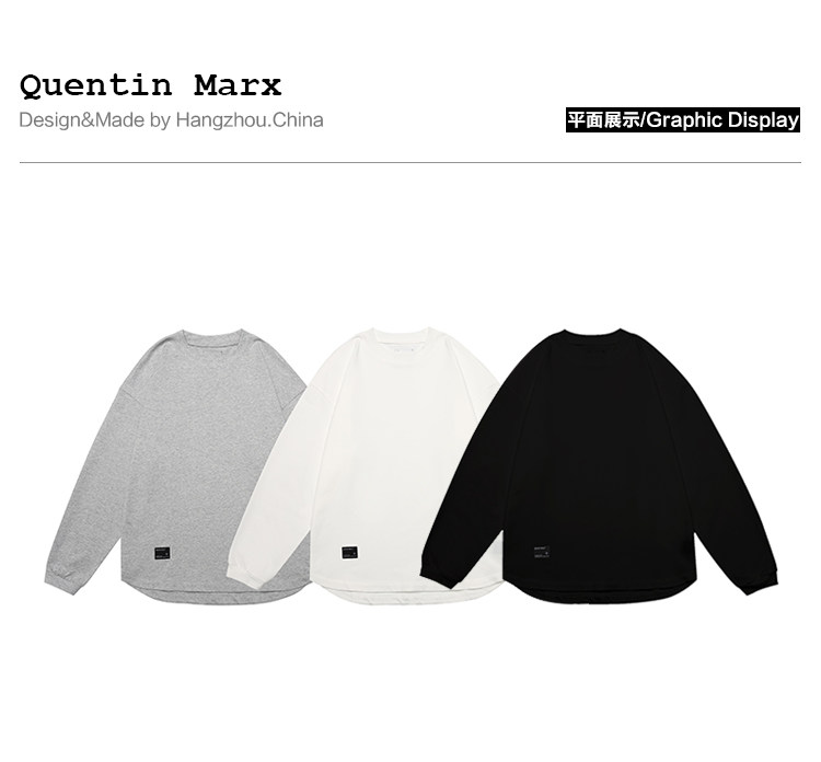 Quentin Marx日系男士320g重磅長袖T恤弧形下擺休閒寬松潮打底衫