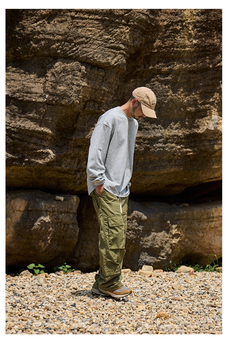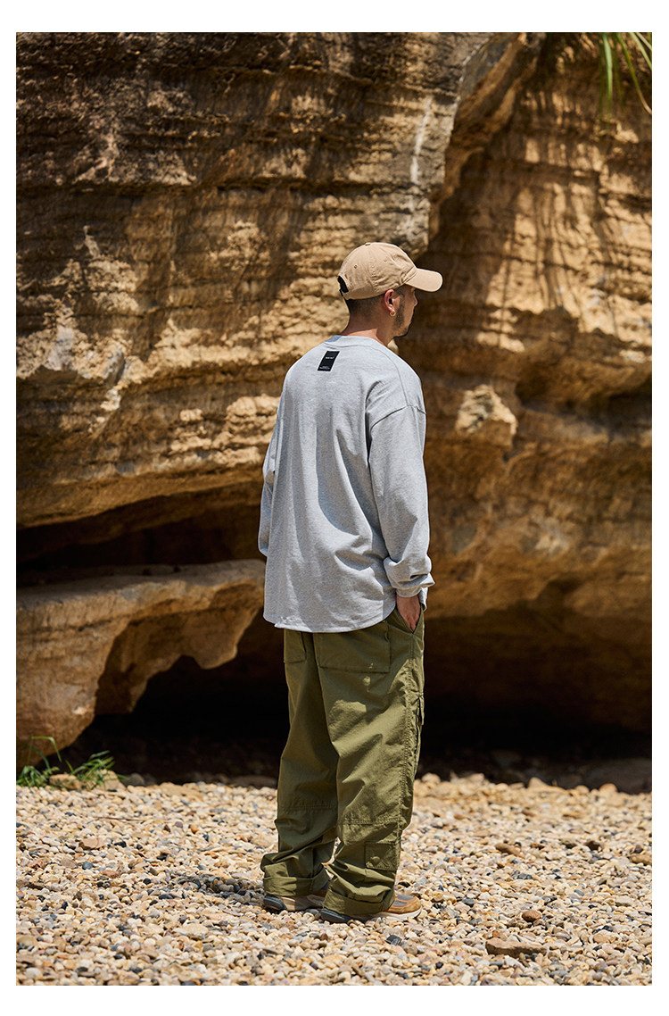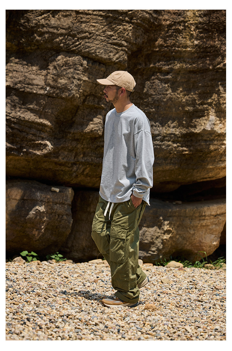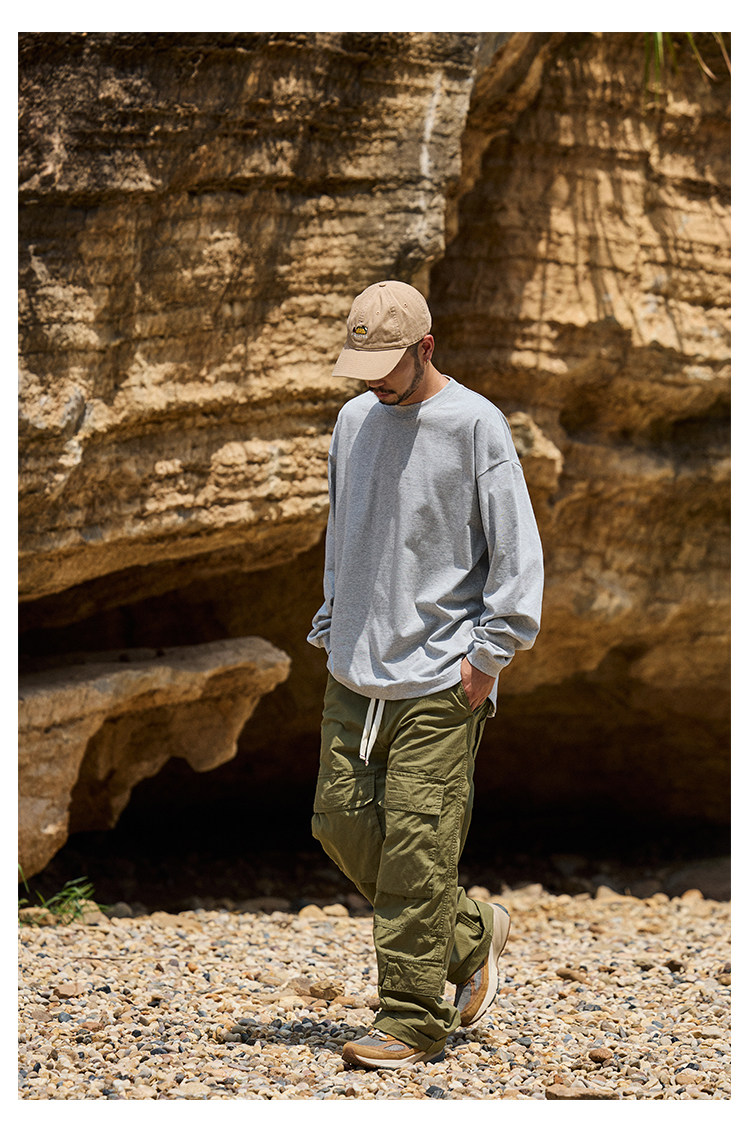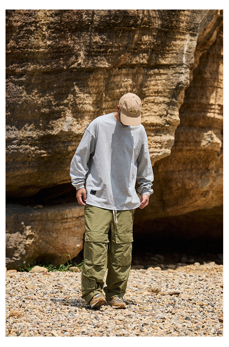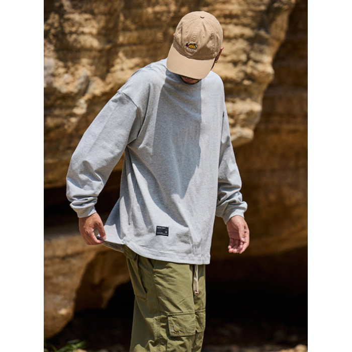 Quentin Marx日系男士320g重磅長袖T恤弧形下擺休閒寬松潮打底衫