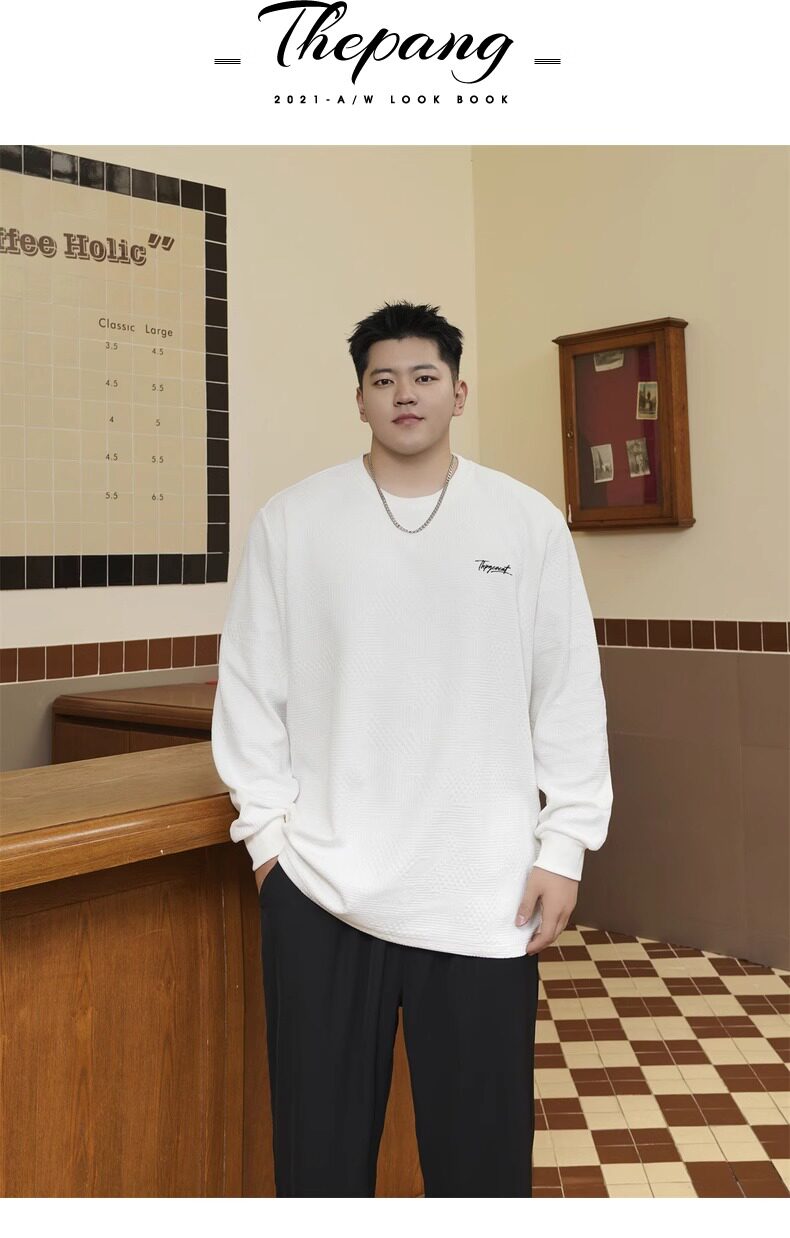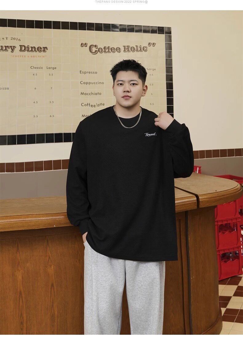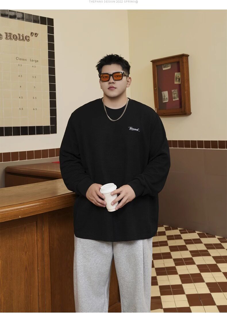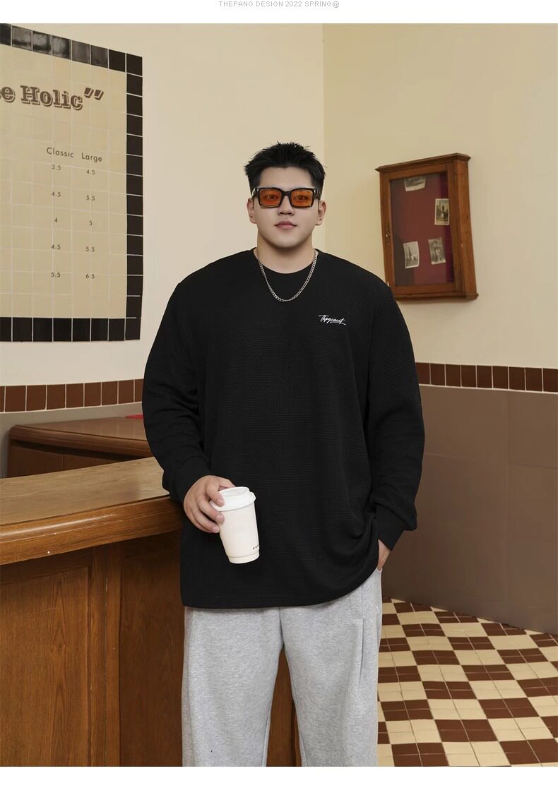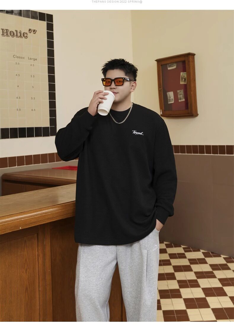 潮牌大碼男裝秋新款簡約寬松休閒胖子加肥加大打底衫圓領長袖T恤