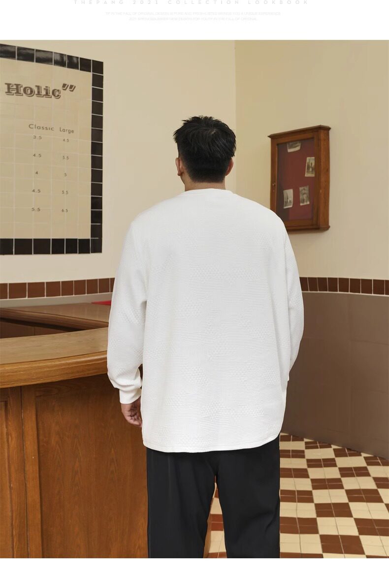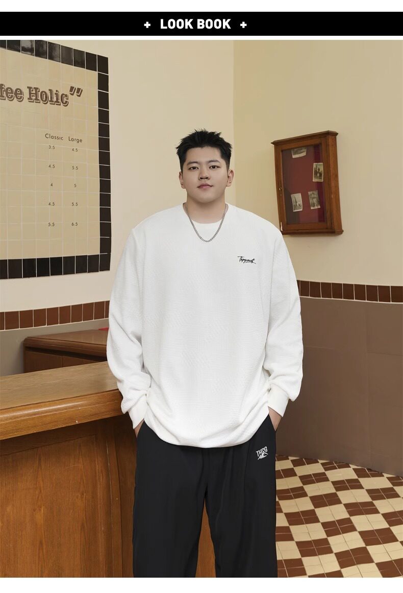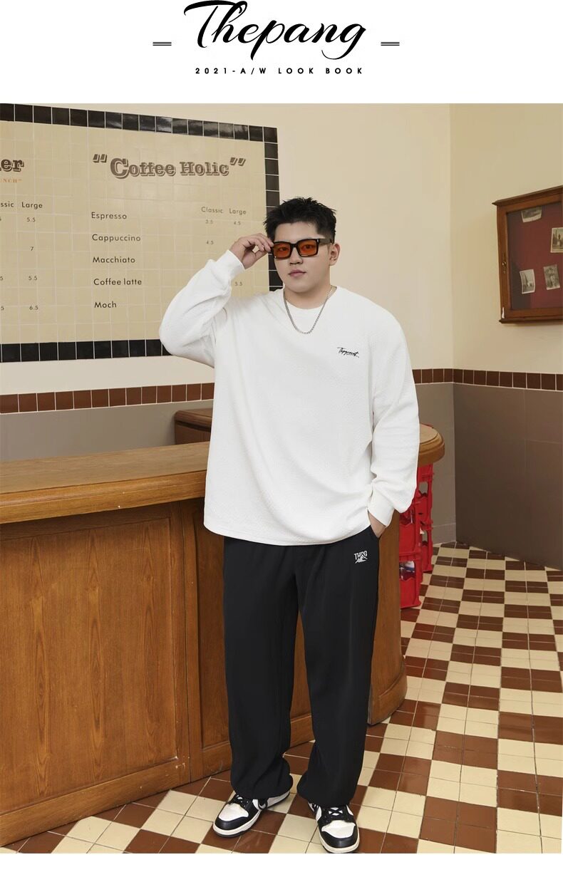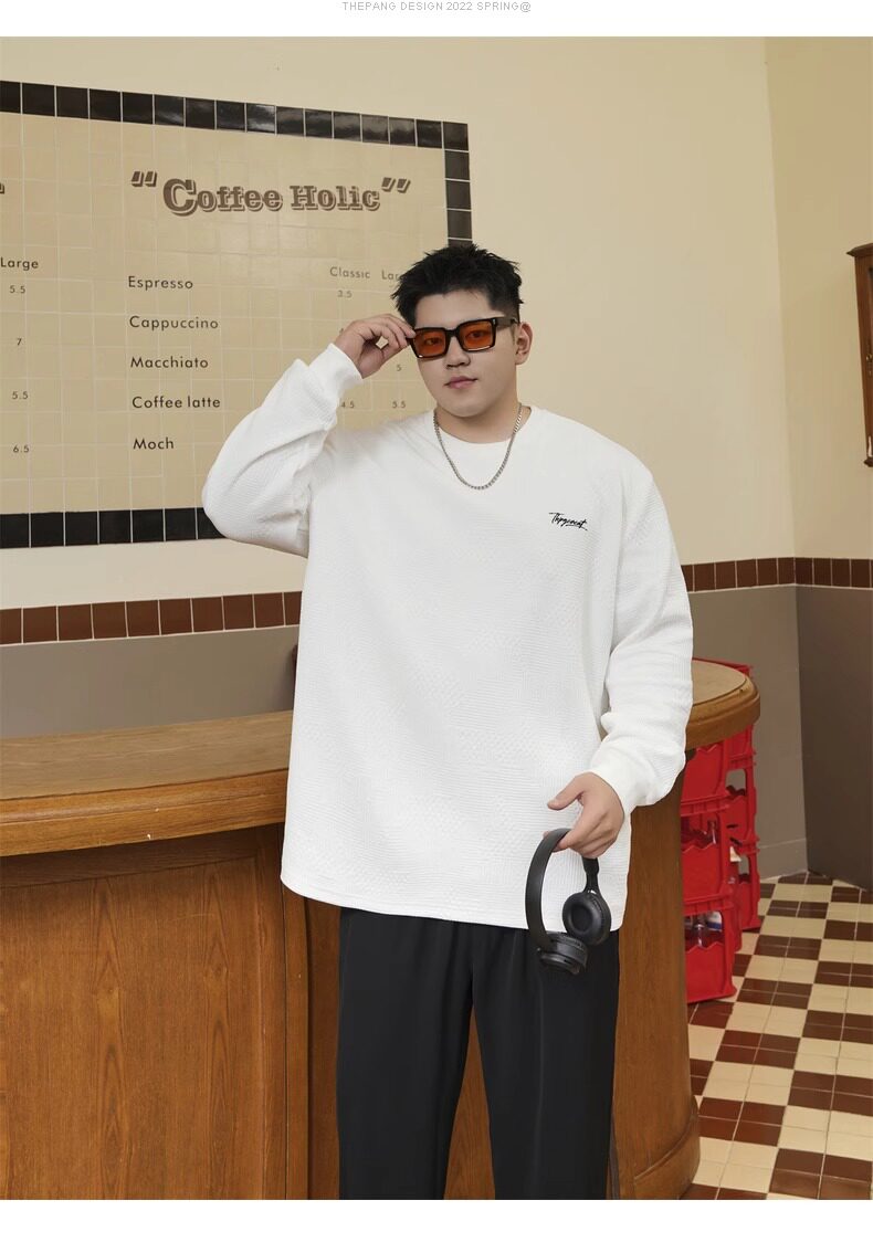 潮牌大碼男裝秋新款簡約寬松休閒胖子加肥加大打底衫圓領長袖T恤