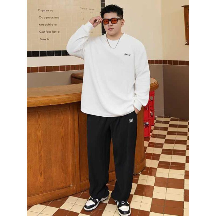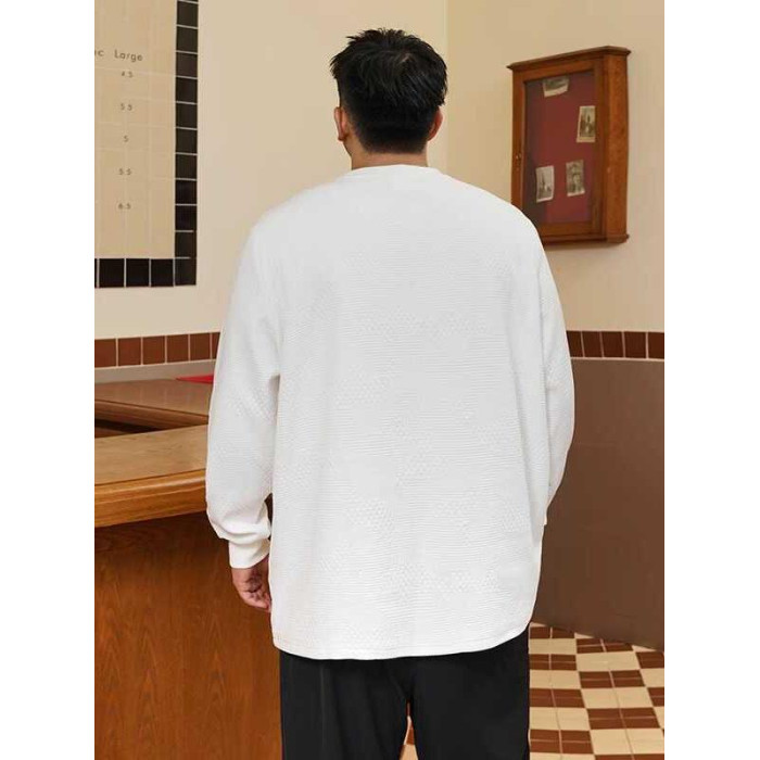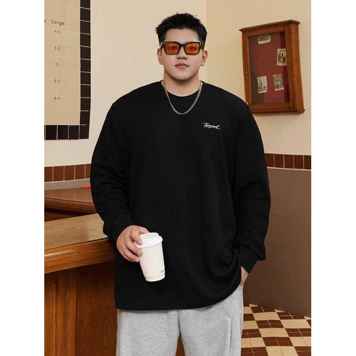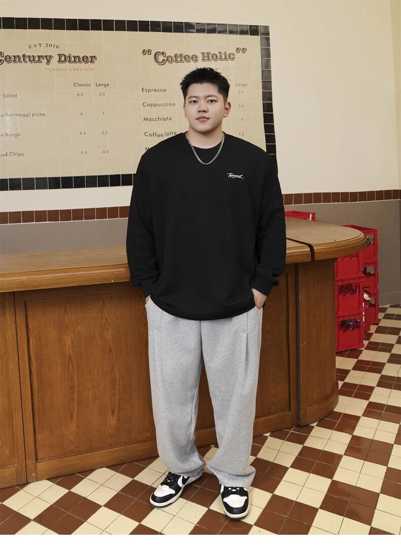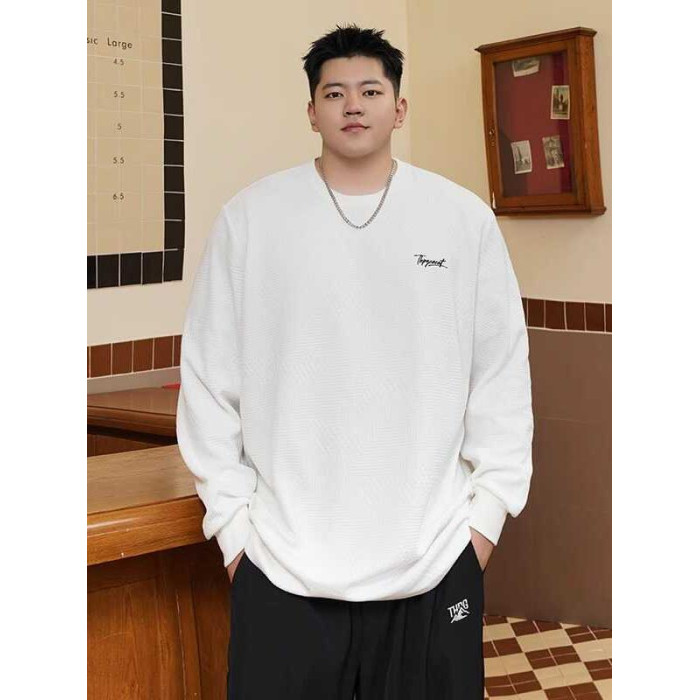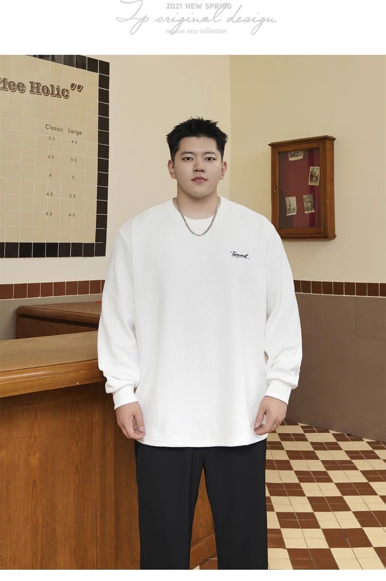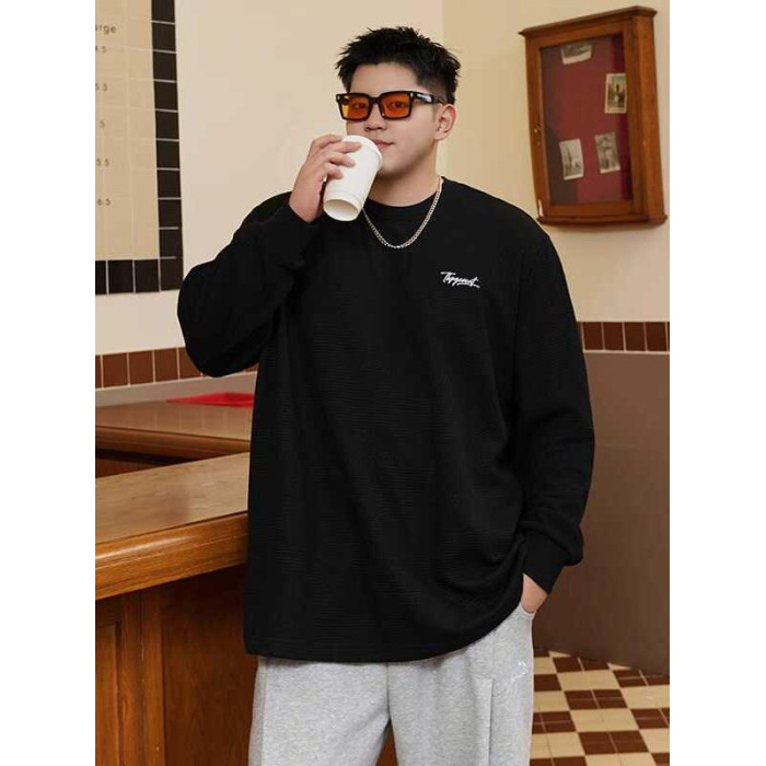 潮牌大碼男裝秋新款簡約寬松休閒胖子加肥加大打底衫圓領長袖T恤
