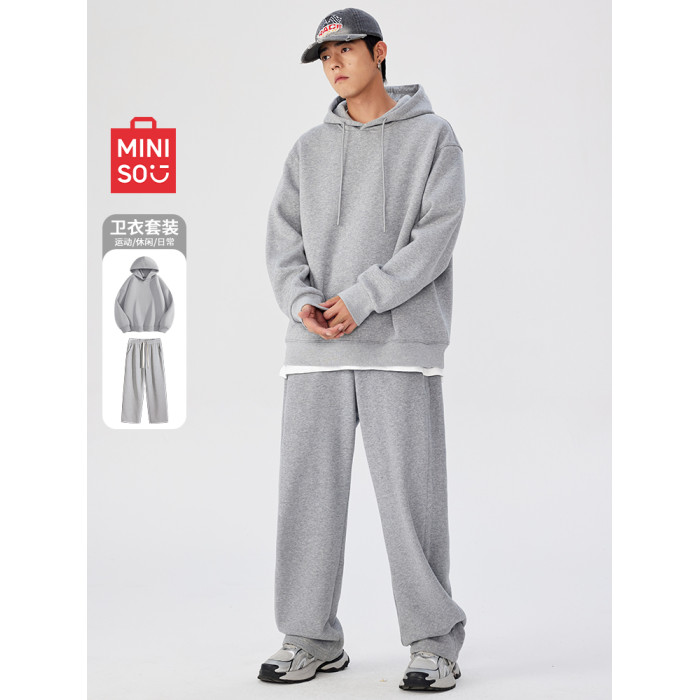 名創優品連帽衛衣男2026新款春季男款運動套裝春秋灰色男士外套A