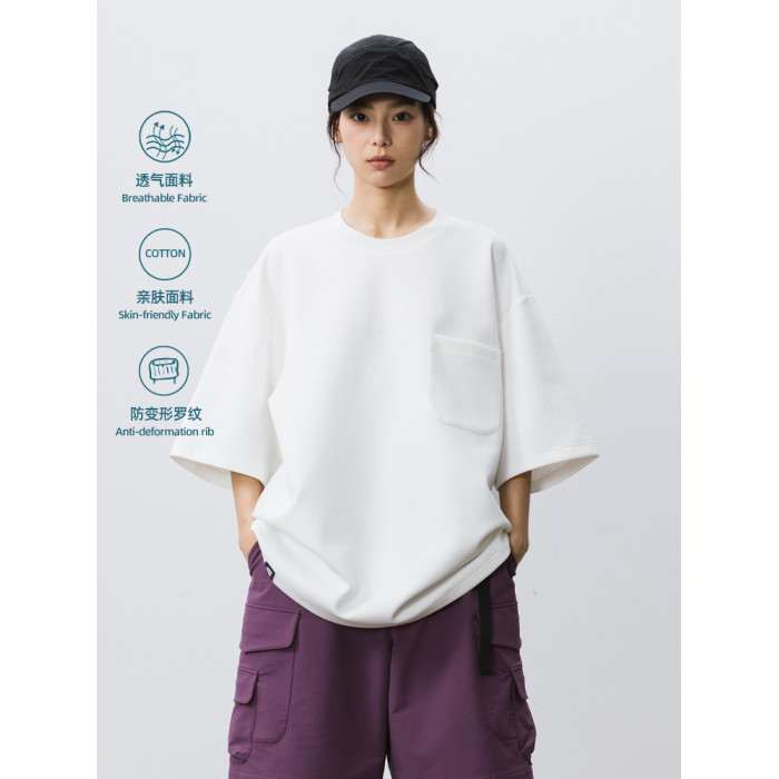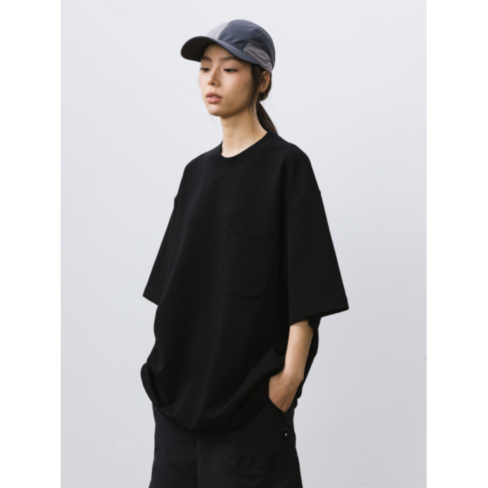 BOHRHOO24SS寬松百搭基礎口袋素色tee260g空氣層打底短袖T恤男女