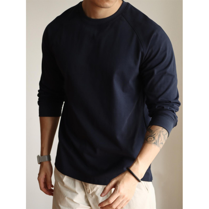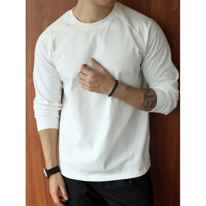 YUXIAN美式重磅300克純棉雙紗長袖插肩袖T恤純色圓領男士春夏四季