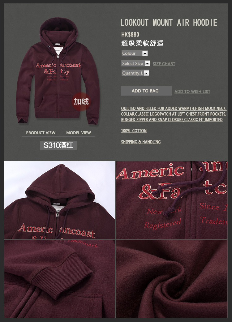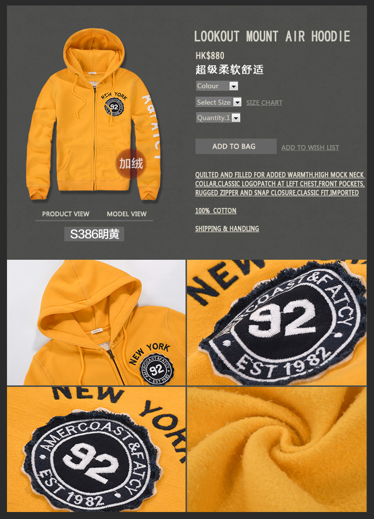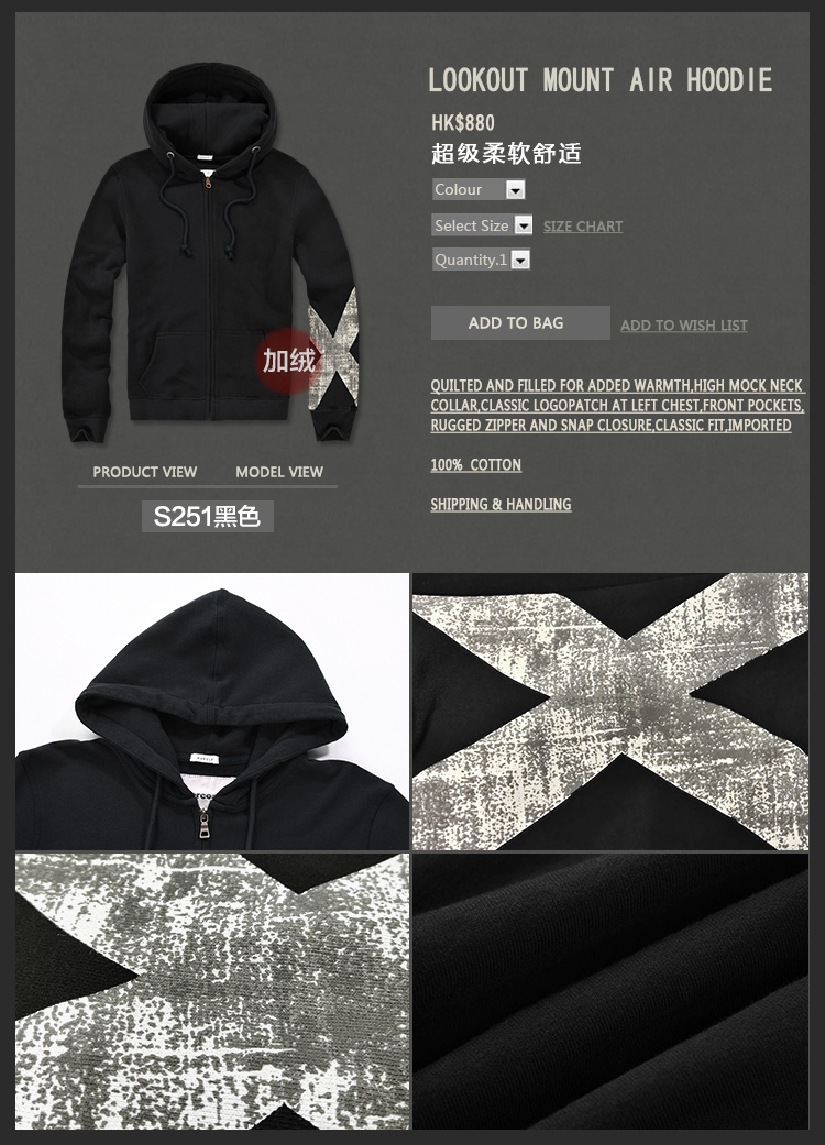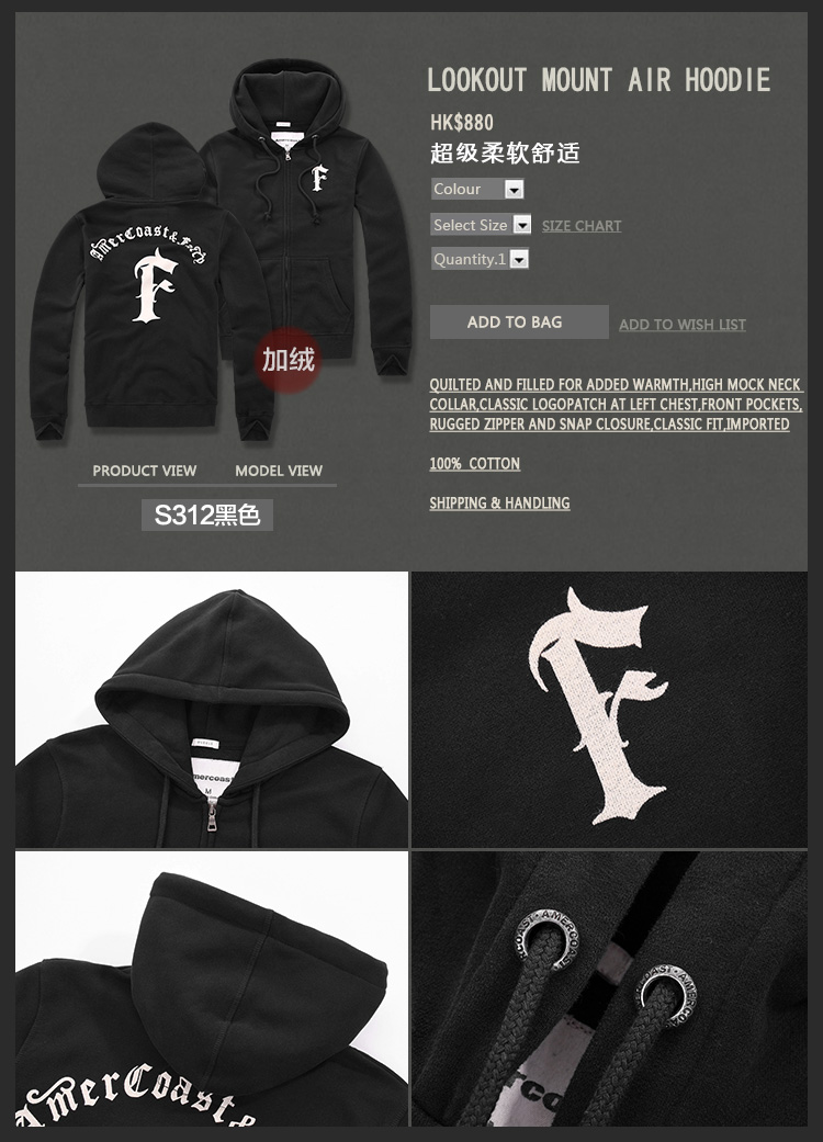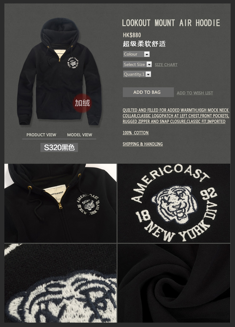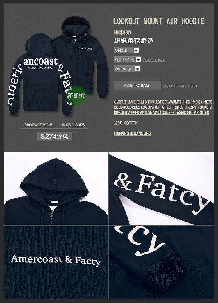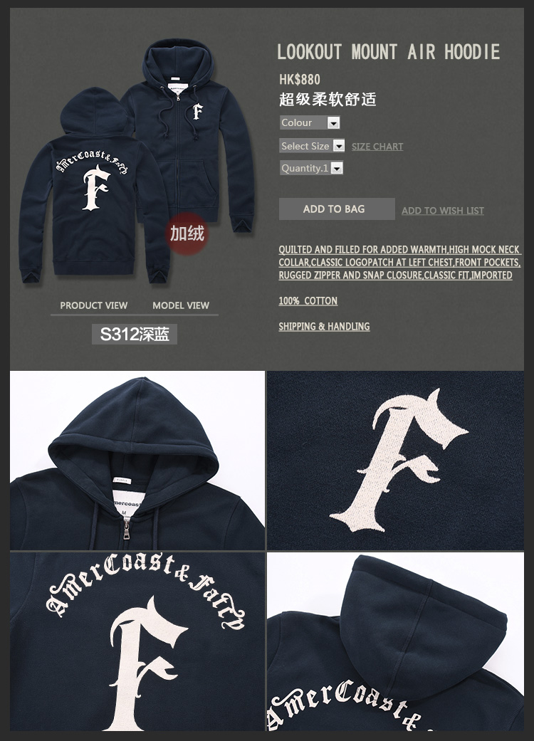 美洲海岸af衛衣男裝新款秋冬開衫拉鍊帽衫加厚加絨純棉連帽外套