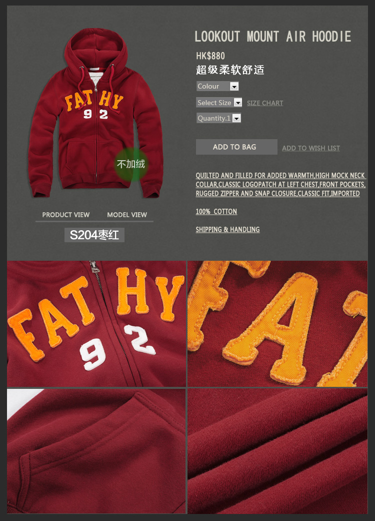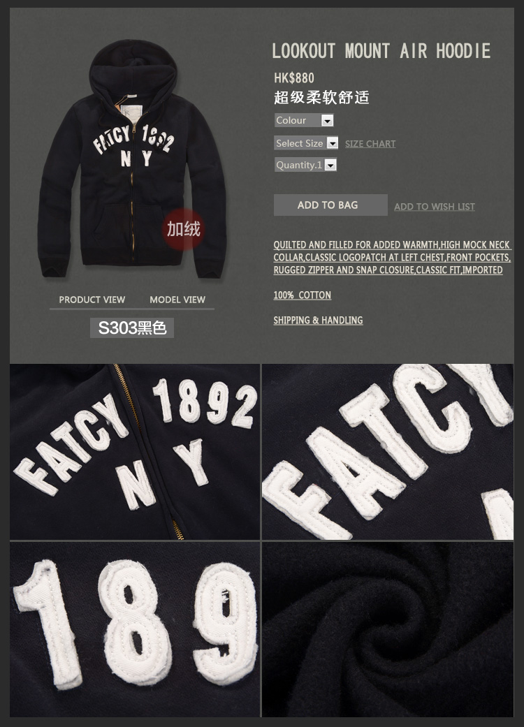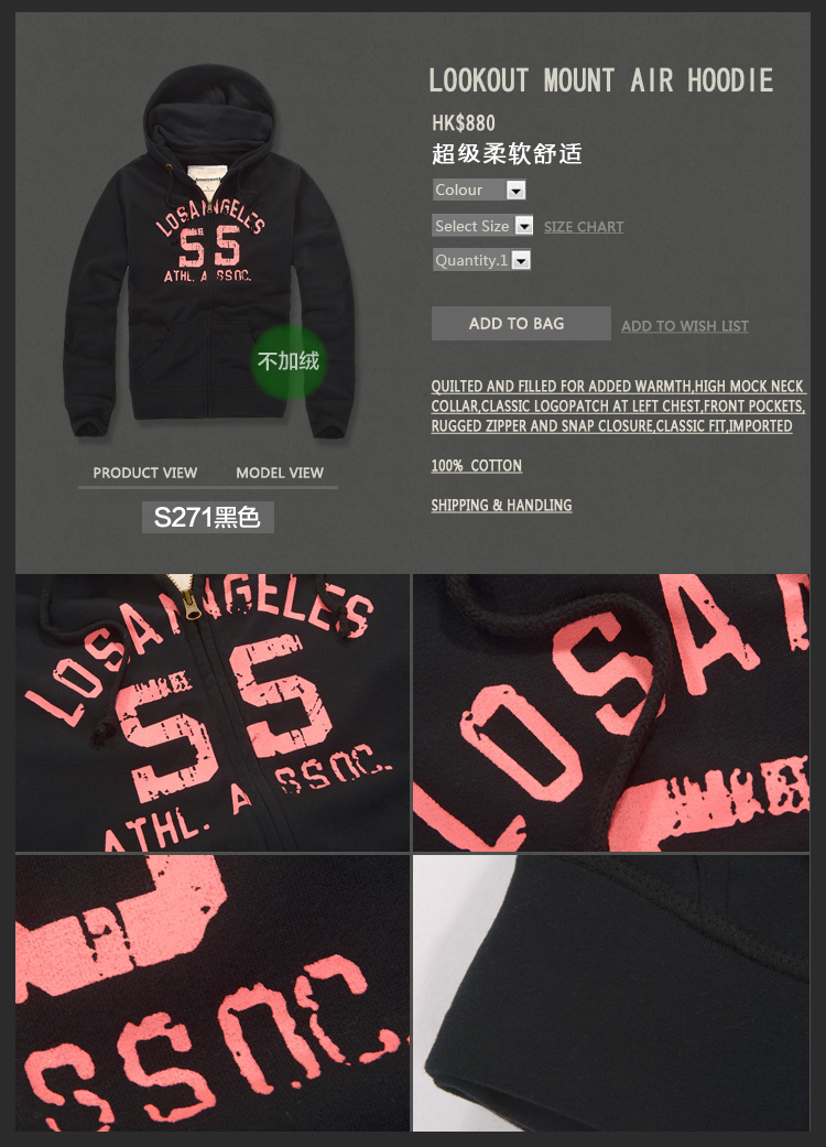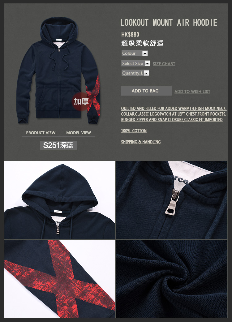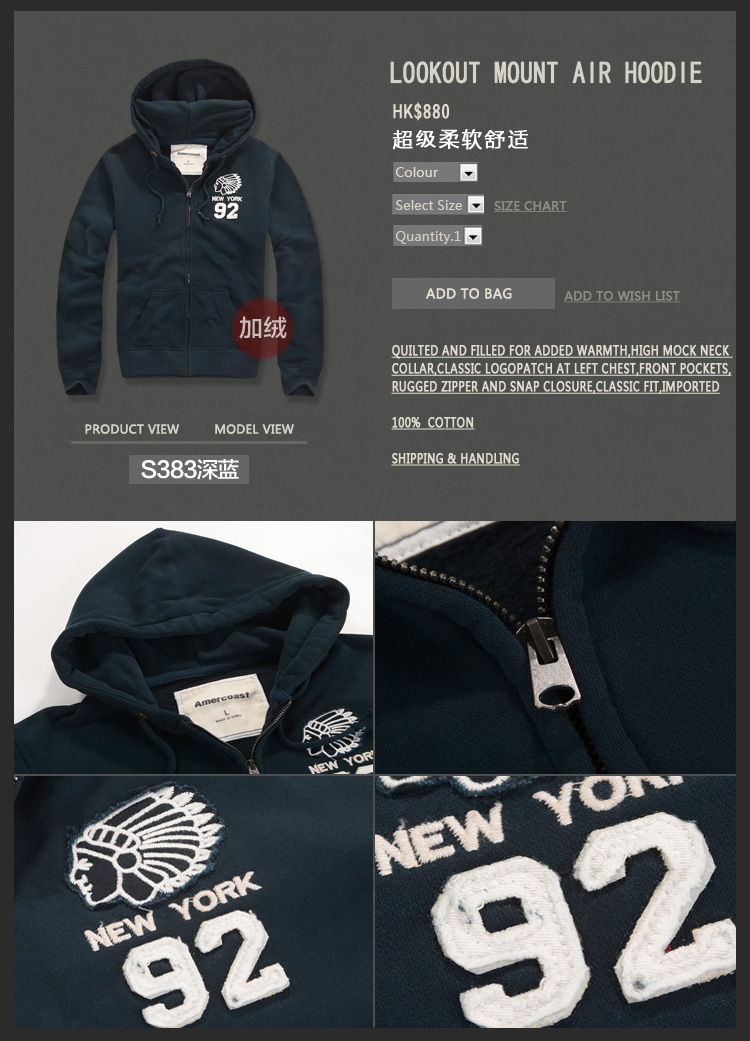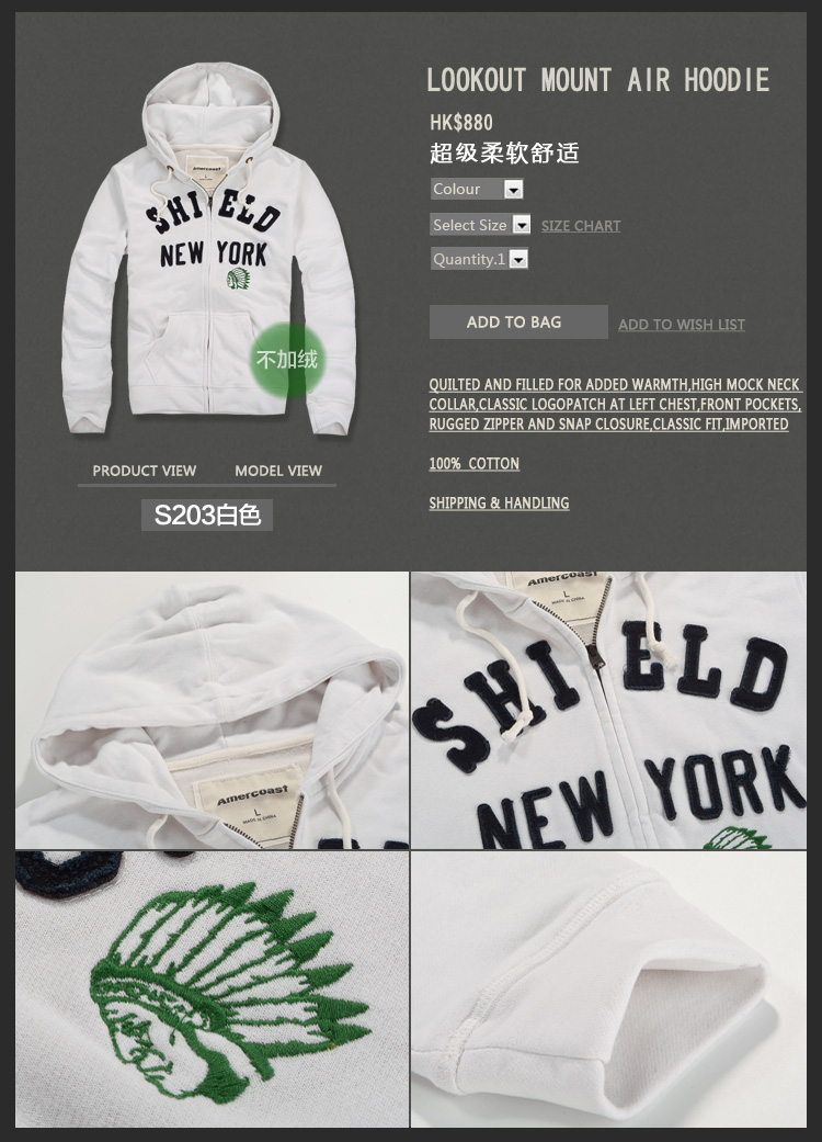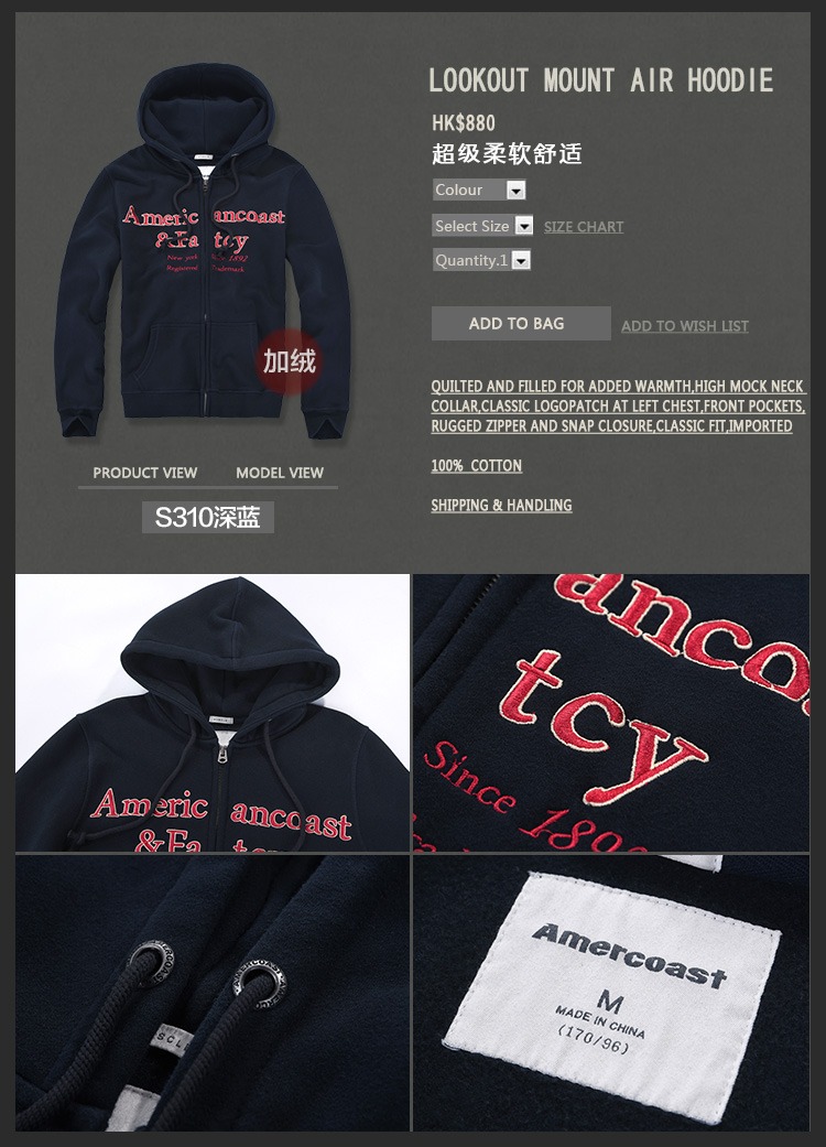 美洲海岸af衛衣男裝新款秋冬開衫拉鍊帽衫加厚加絨純棉連帽外套