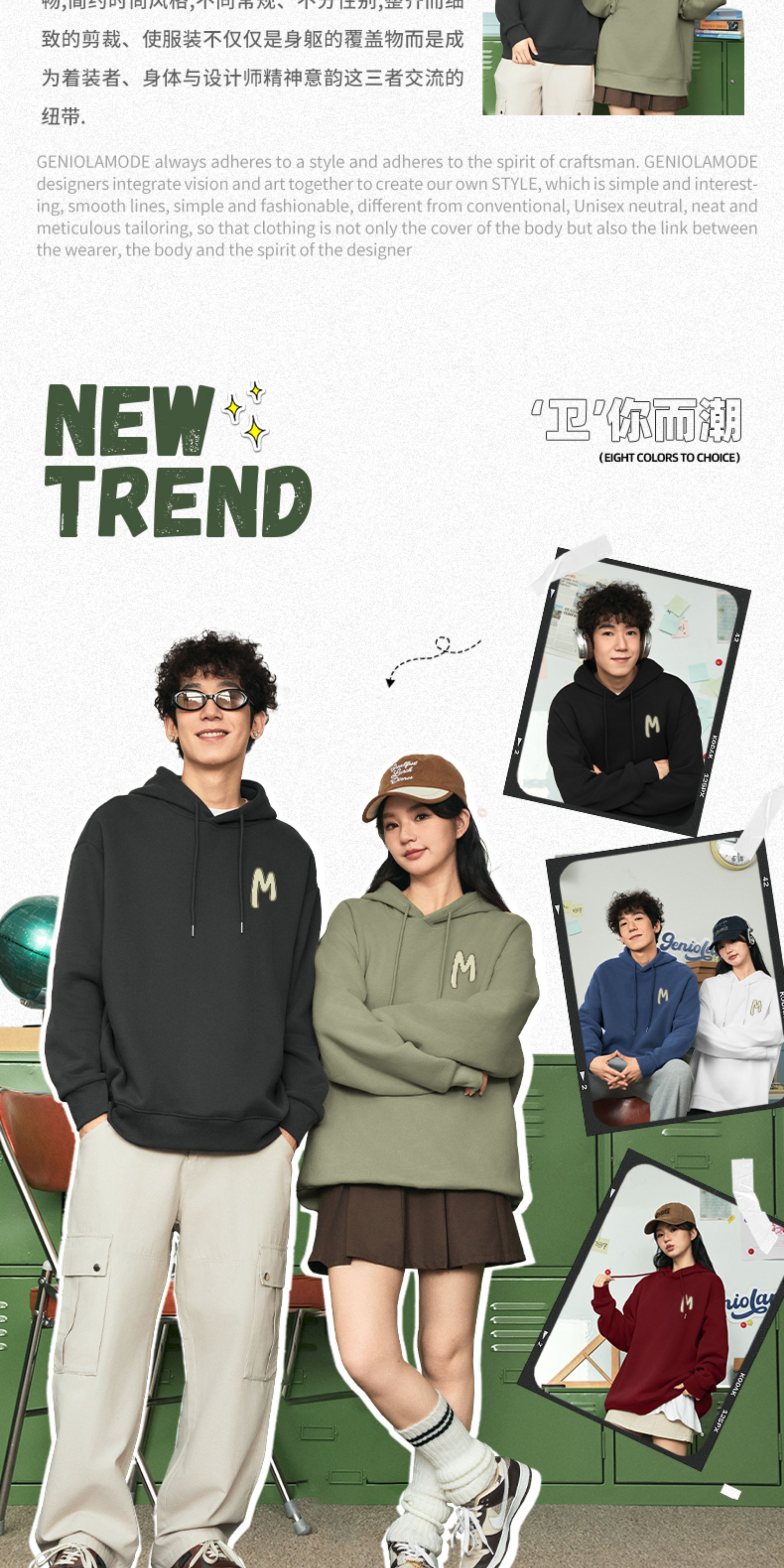 GENIOLAMODE美式衛衣男款冬季棕櫚綠潮牌外套加絨青少年連帽衫男