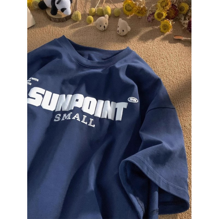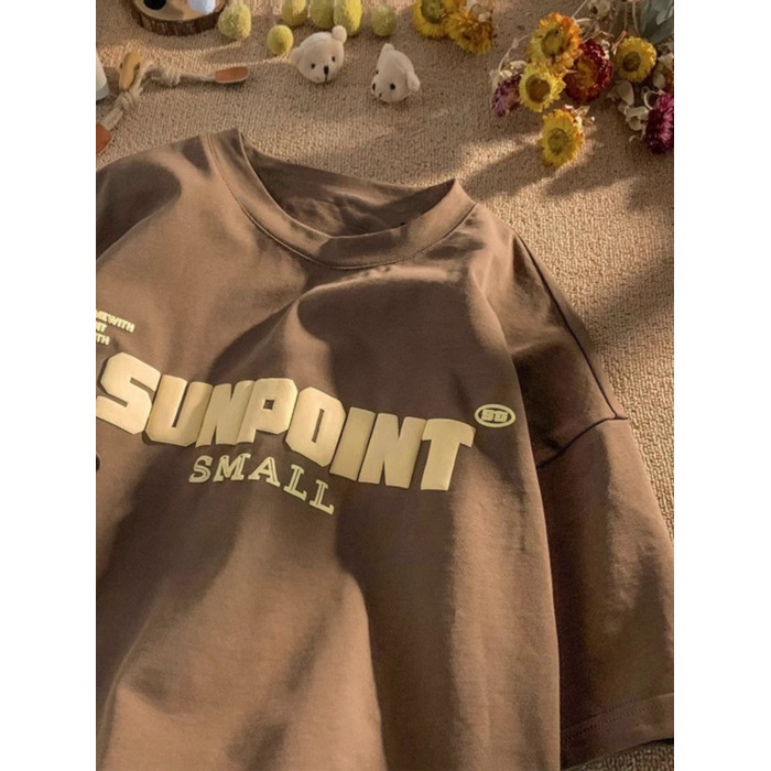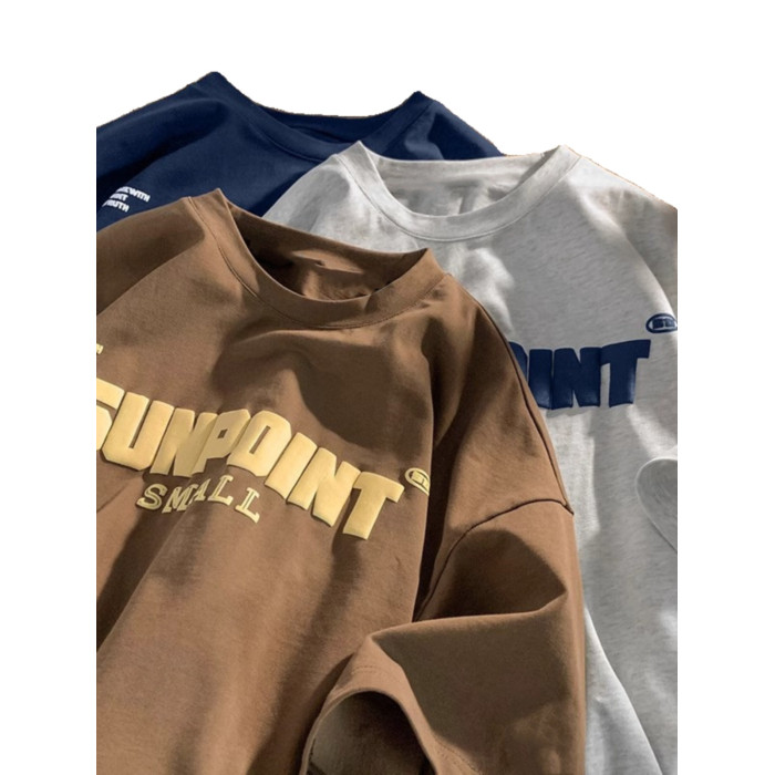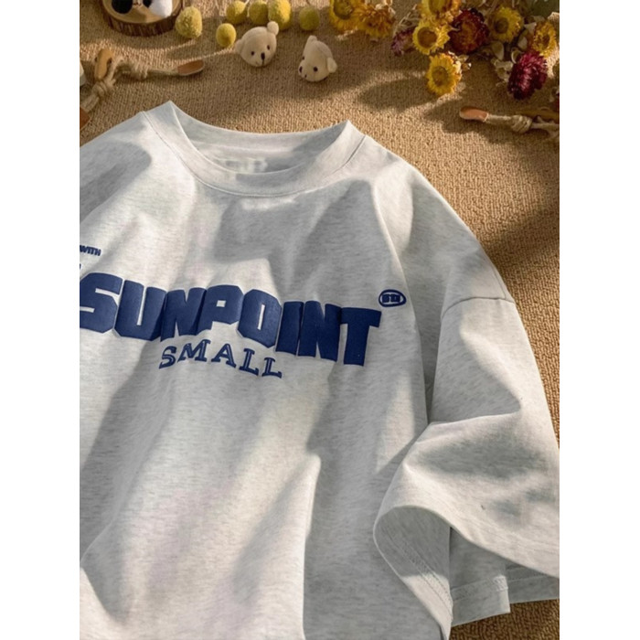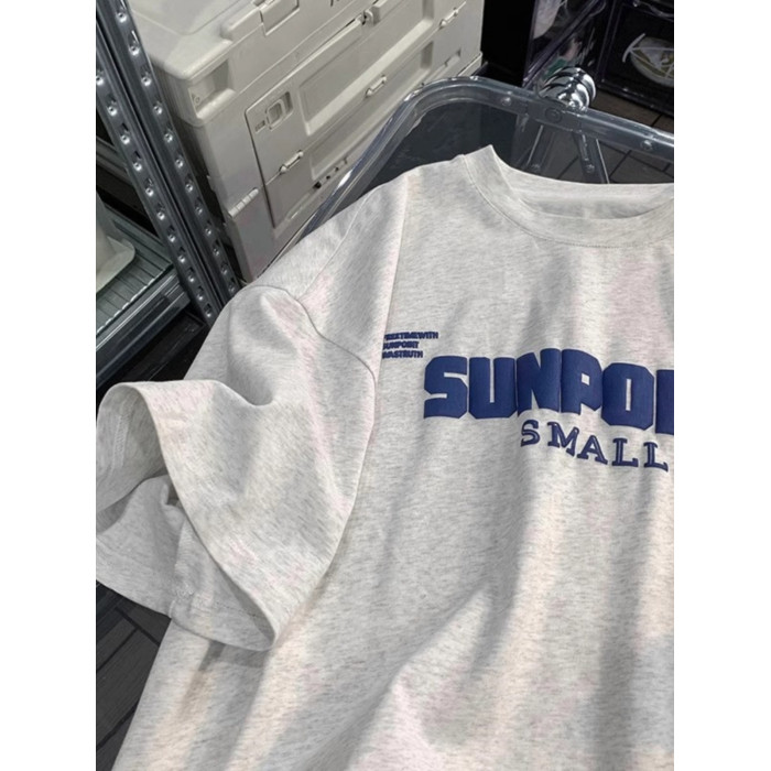 重磅純棉美式復古字母白花灰短袖T恤男生夏季潮流潮牌寬松上衣服
