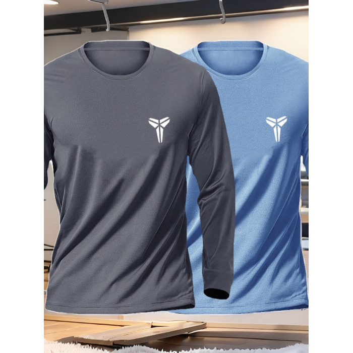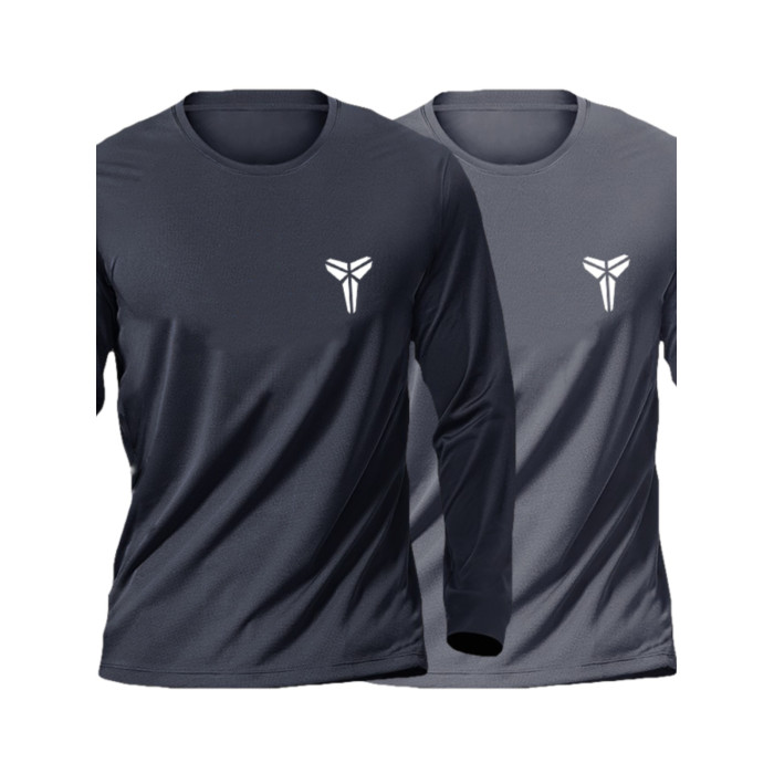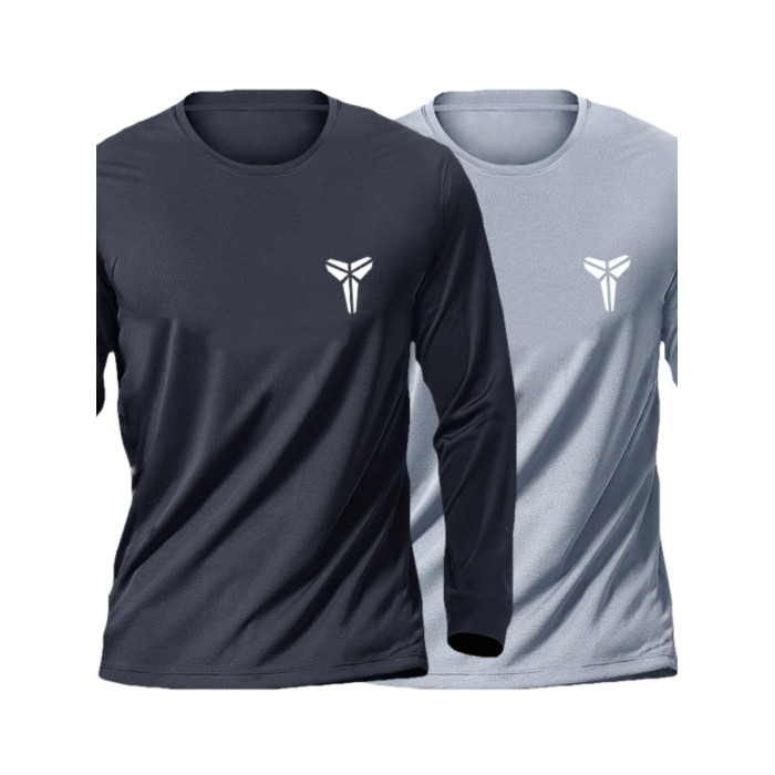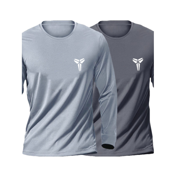 四季大碼冰絲網眼男士速乾純色長袖圓領運動跑步服T恤健身訓練服