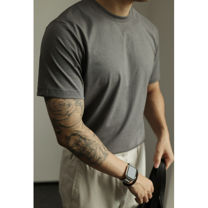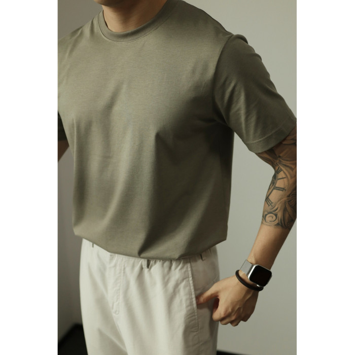 YUXIAN餘閒60支液氨短袖基礎春夏薄款輕熟商務T恤出純色柔順男士