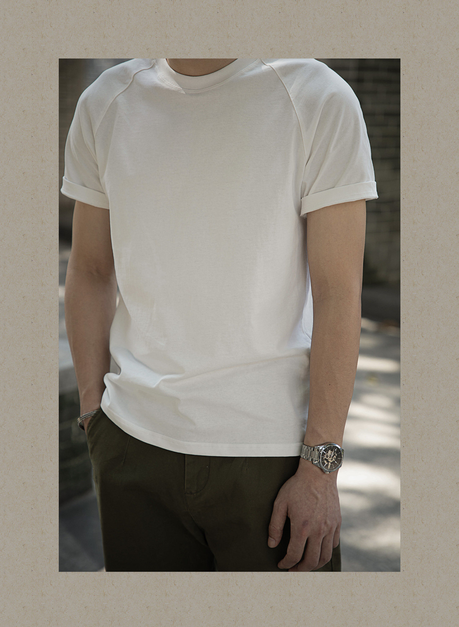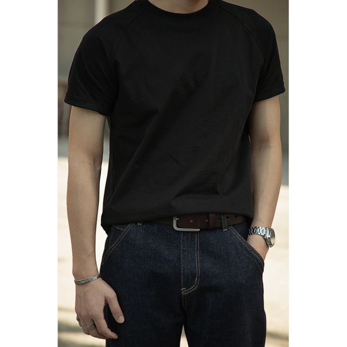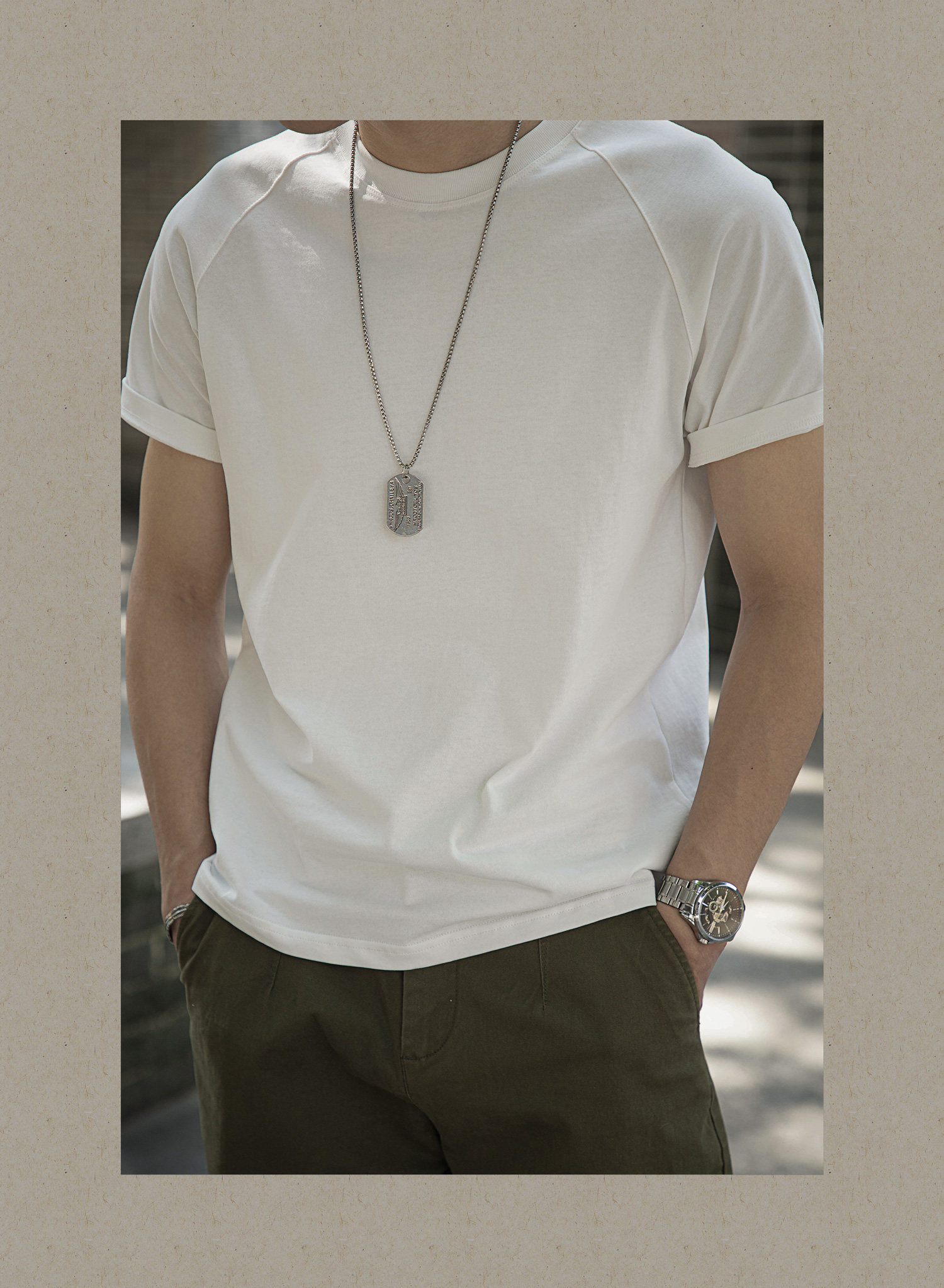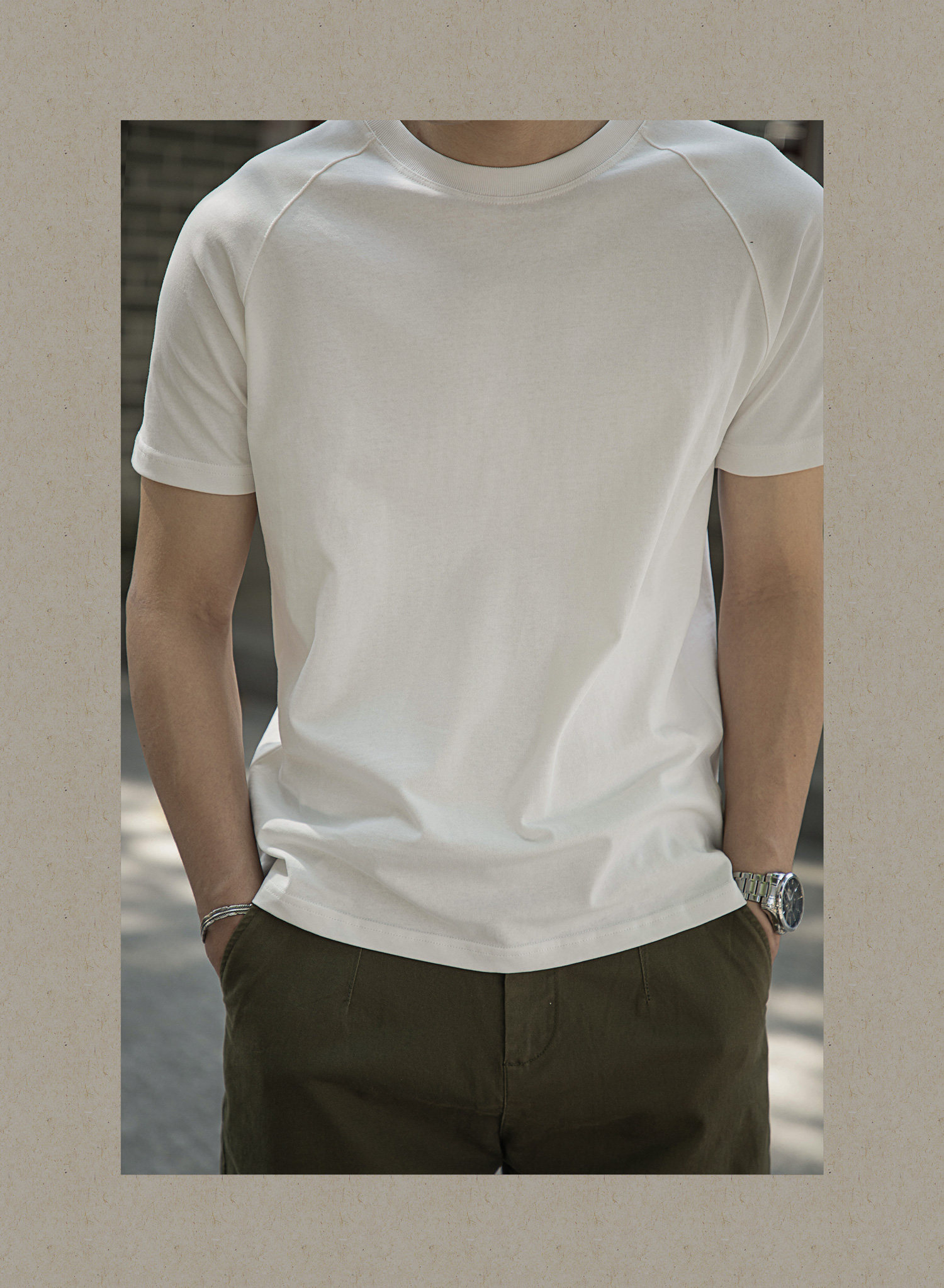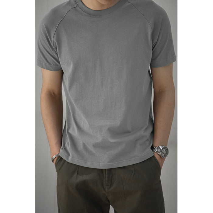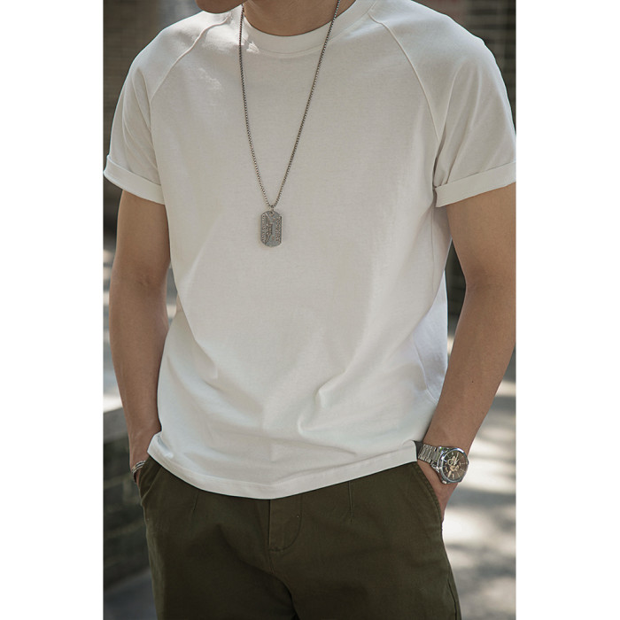 唔刃美式復古230g插肩袖T恤短袖夏季男雙紗純棉三本針雙層小領口