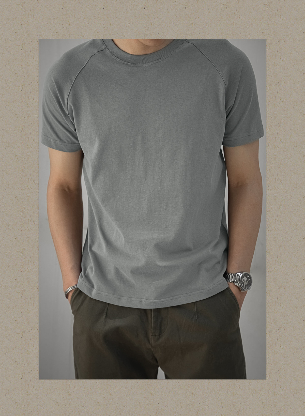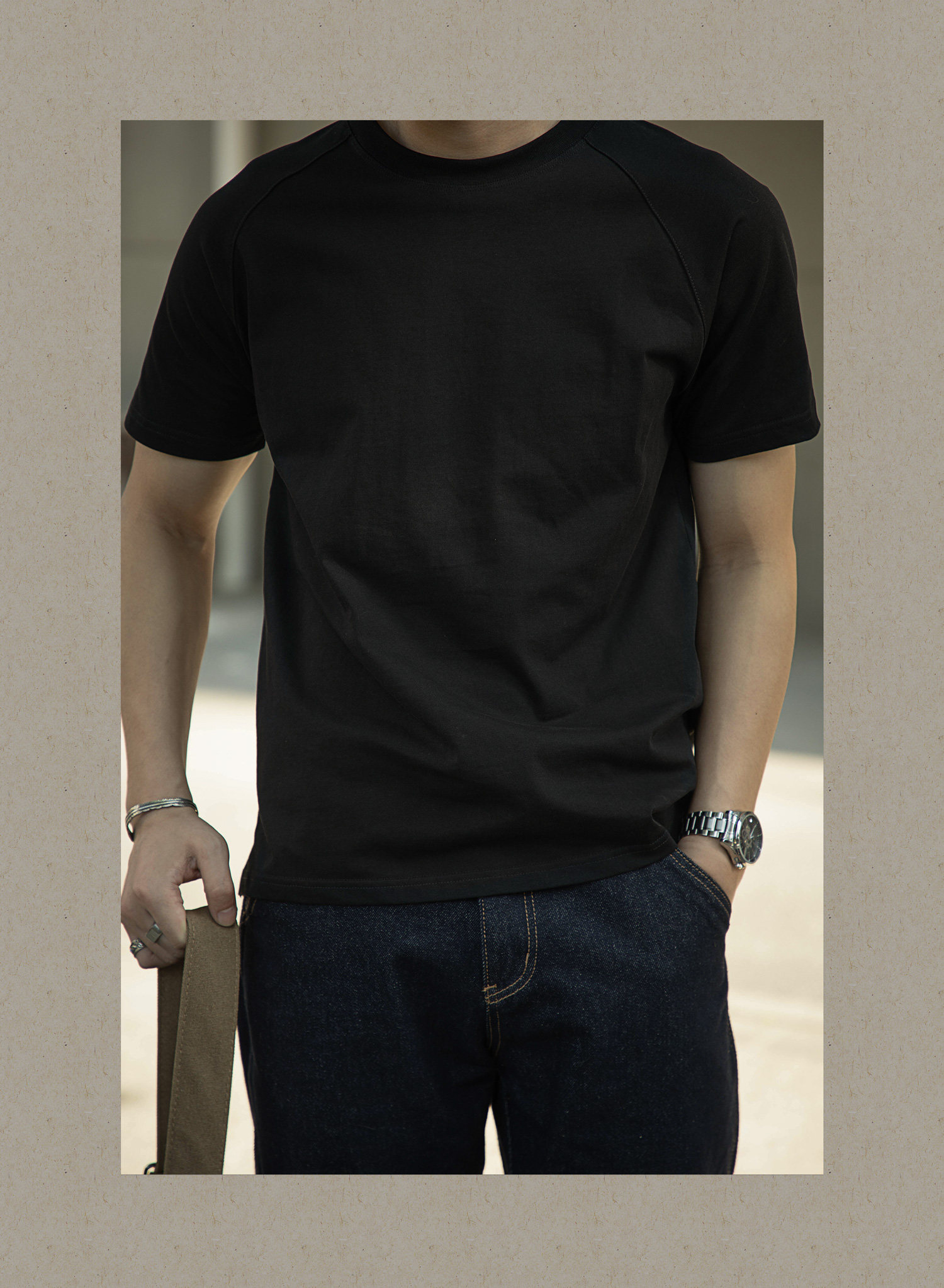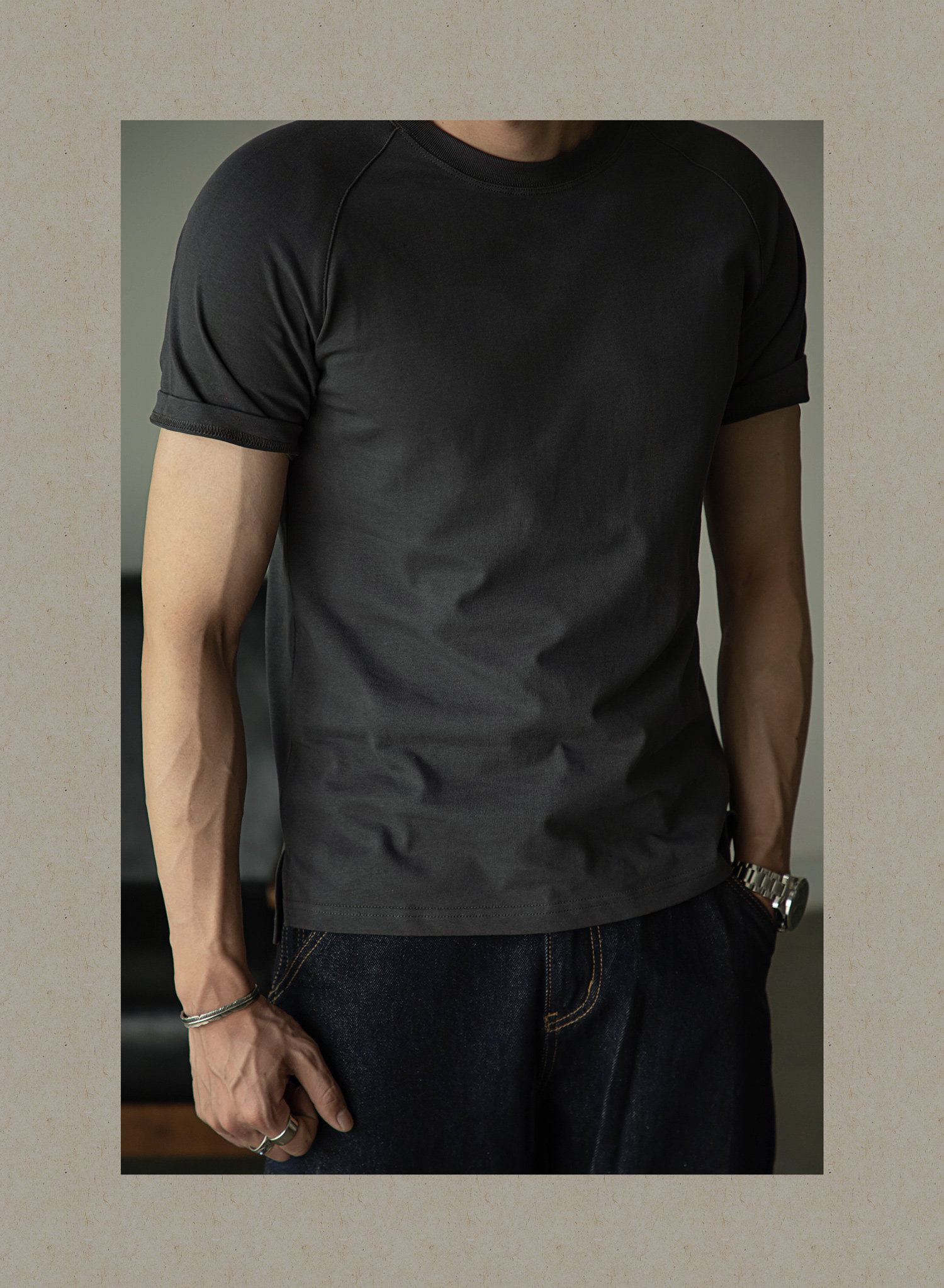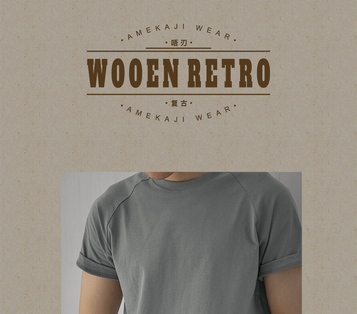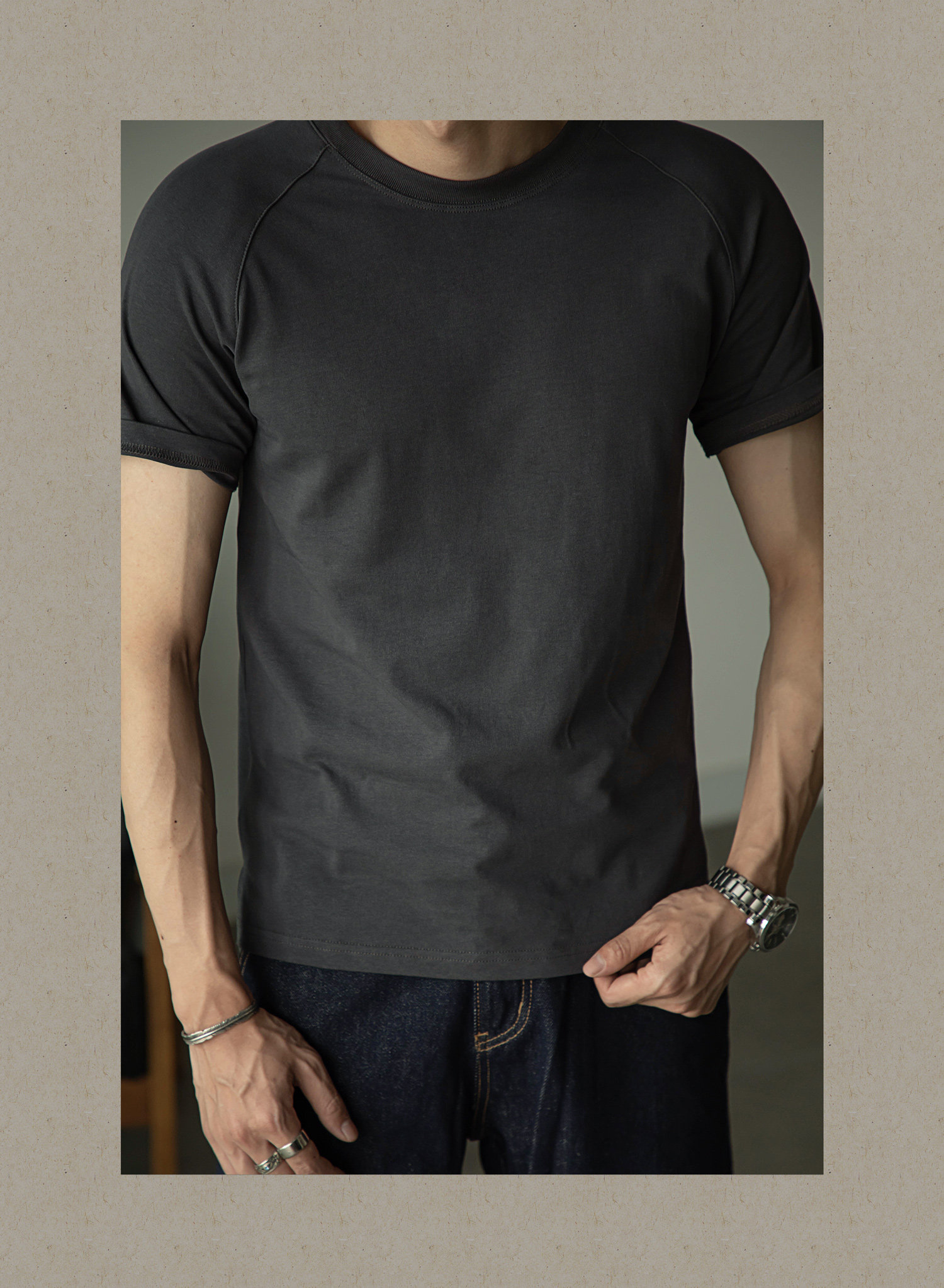 唔刃美式復古230g插肩袖T恤短袖夏季男雙紗純棉三本針雙層小領口