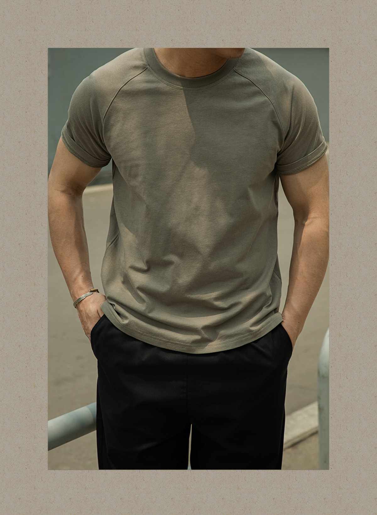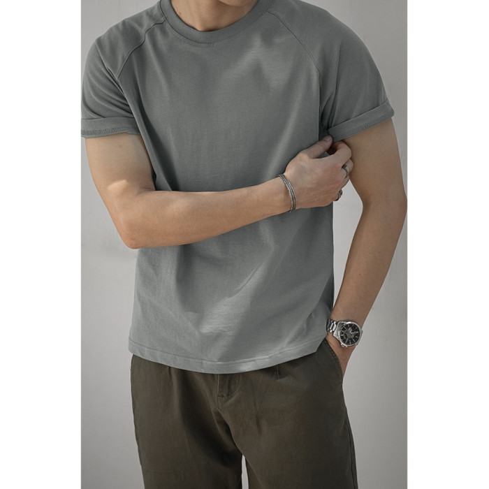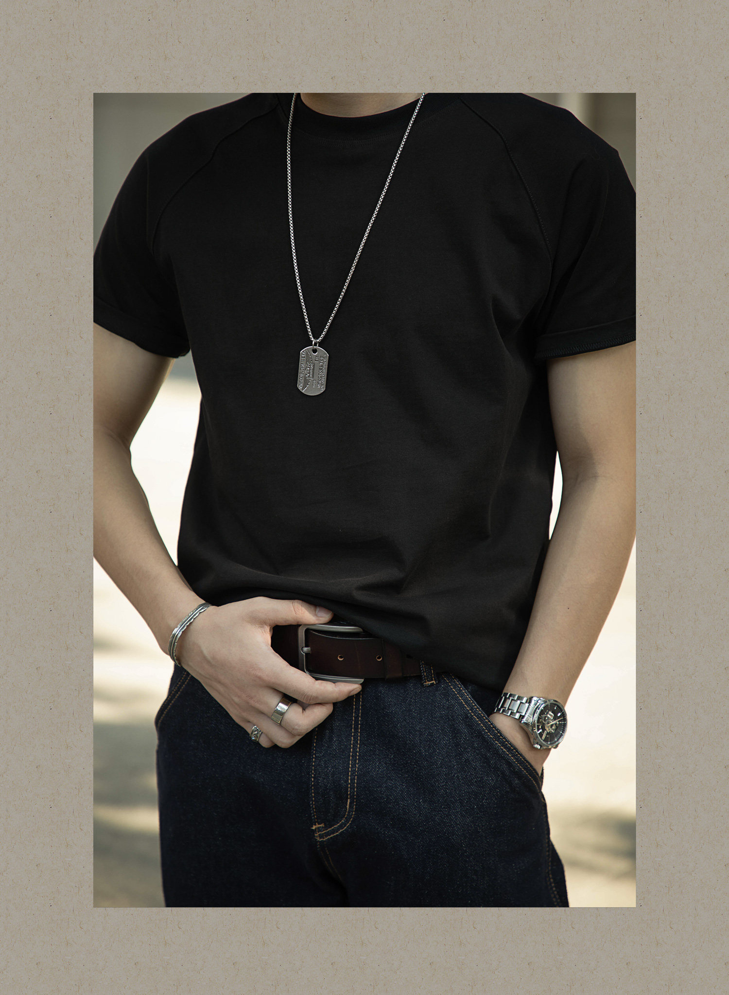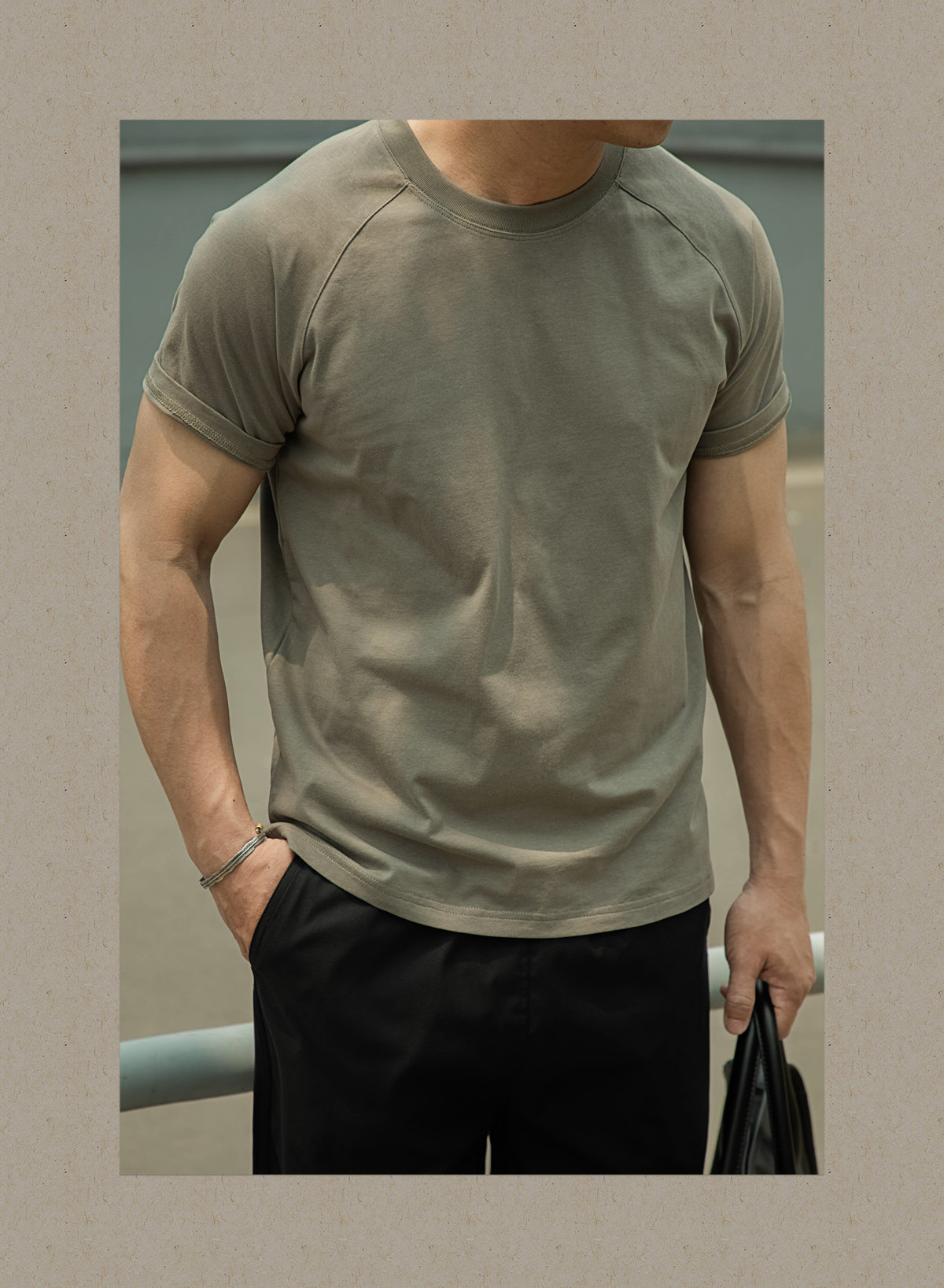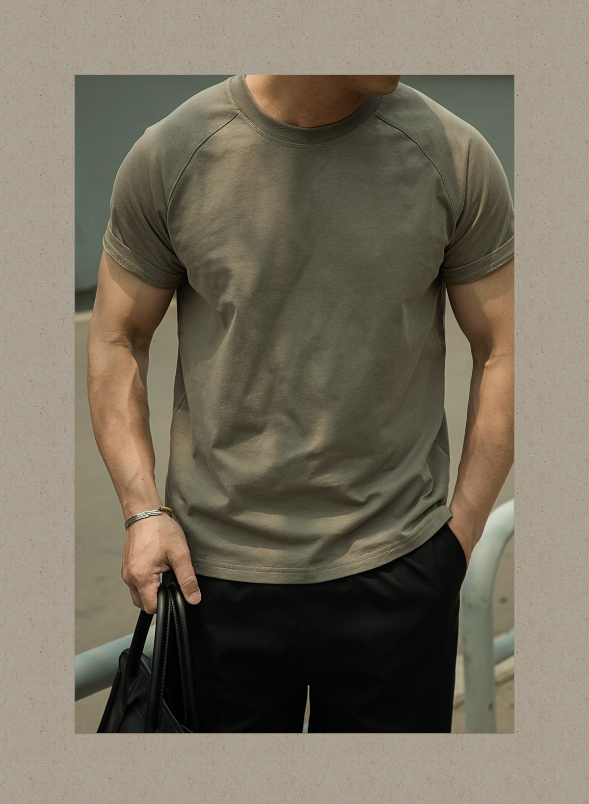 唔刃美式復古230g插肩袖T恤短袖夏季男雙紗純棉三本針雙層小領口