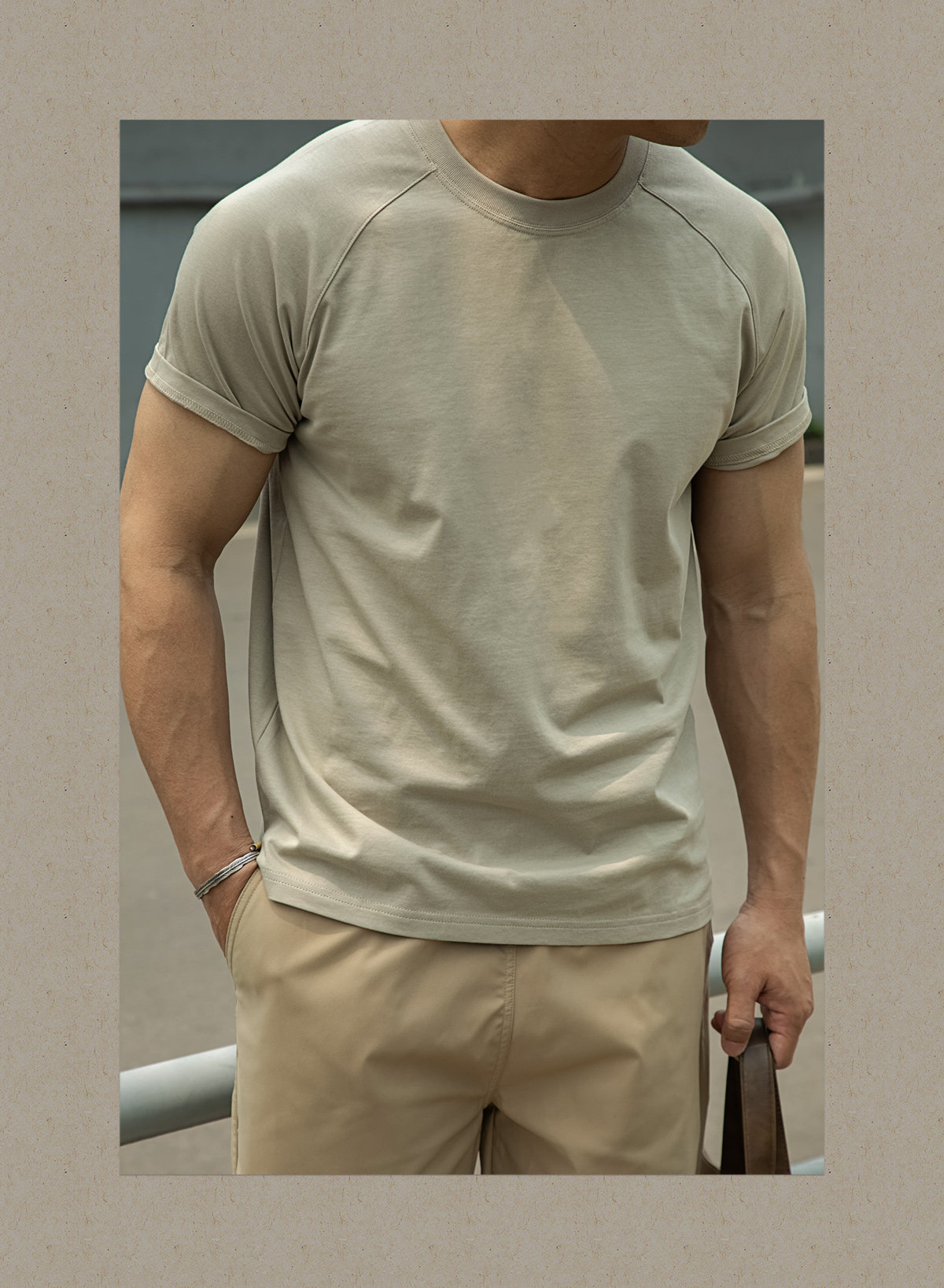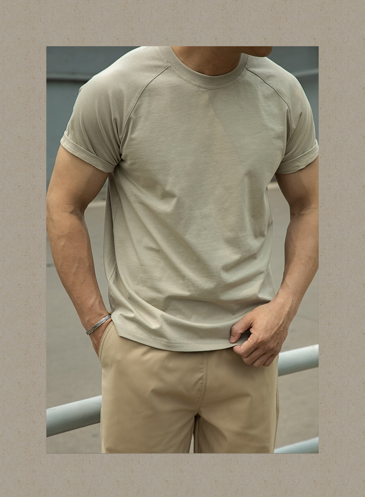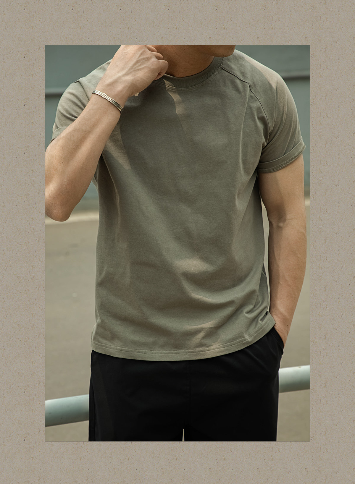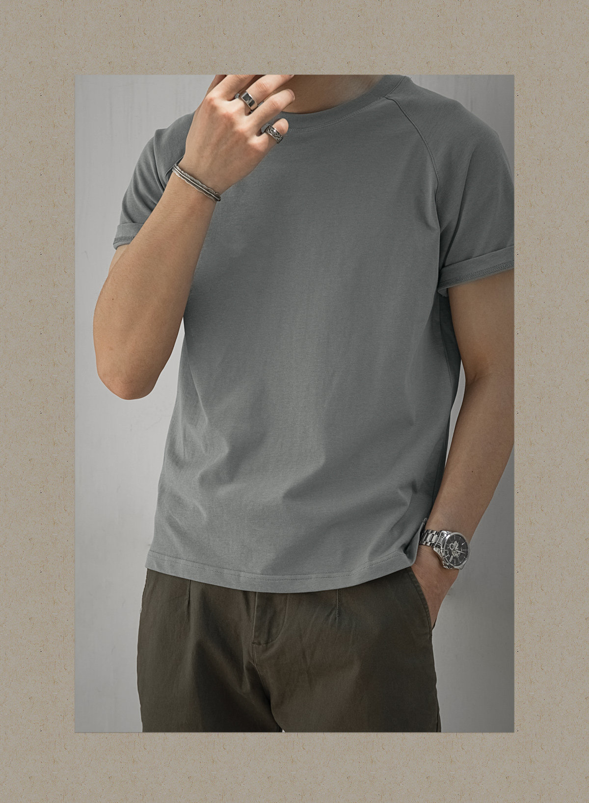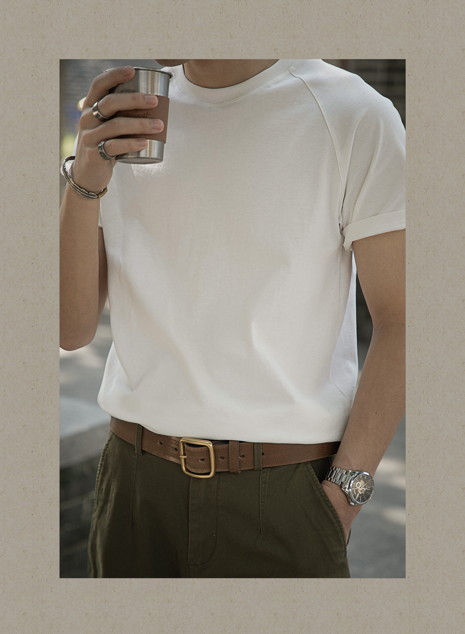 唔刃美式復古230g插肩袖T恤短袖夏季男雙紗純棉三本針雙層小領口