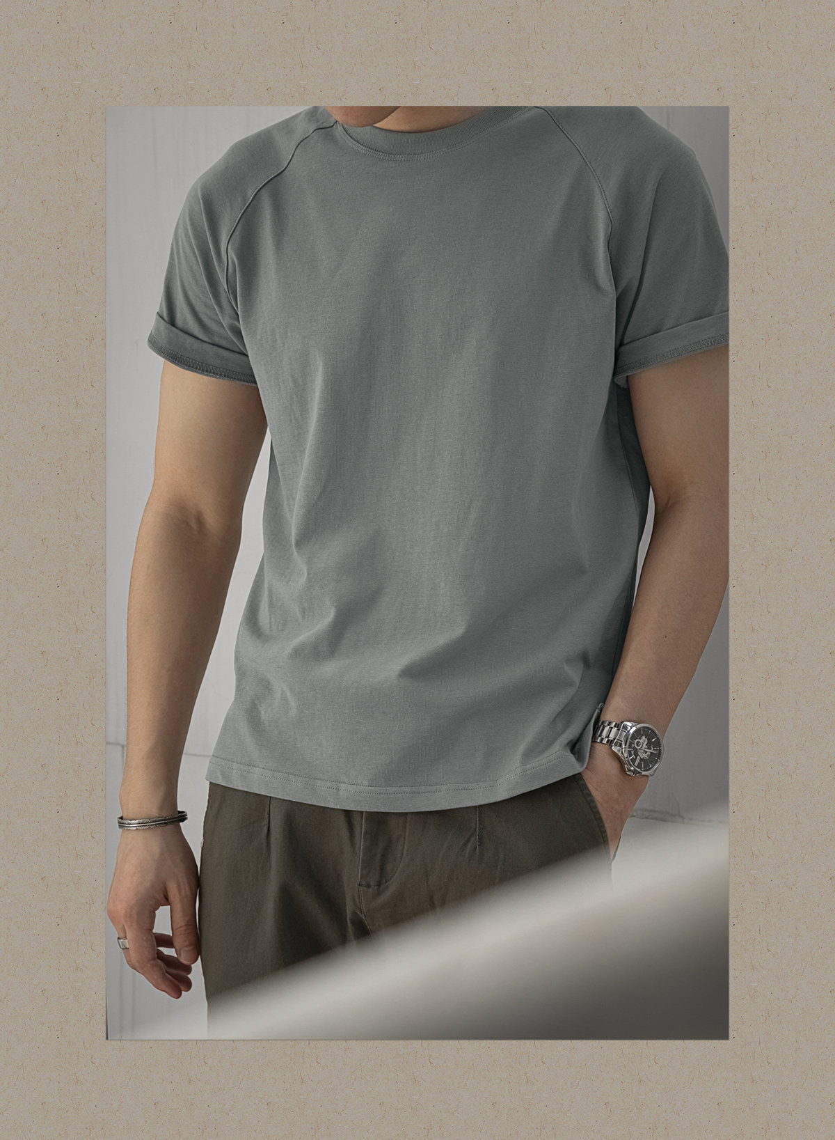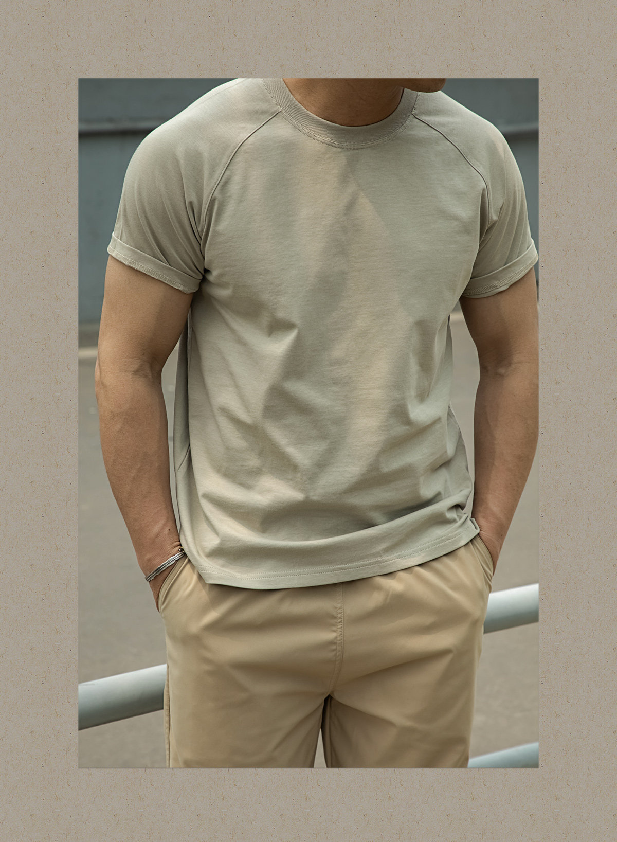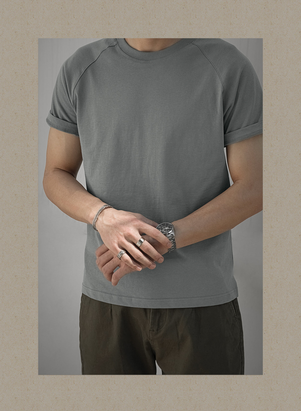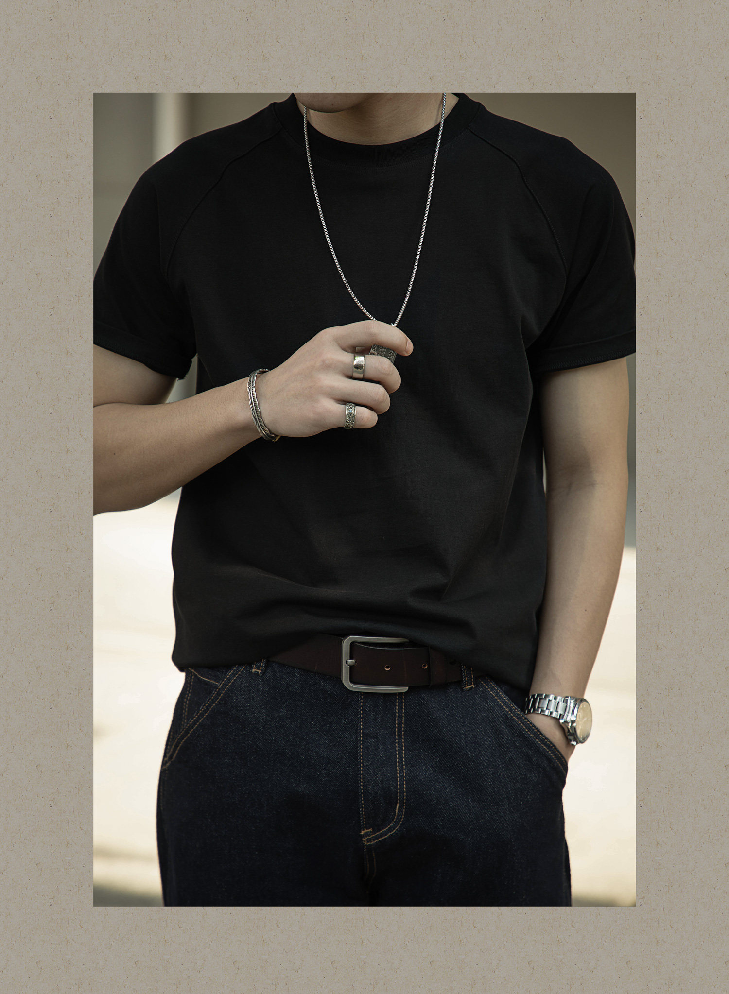 唔刃美式復古230g插肩袖T恤短袖夏季男雙紗純棉三本針雙層小領口