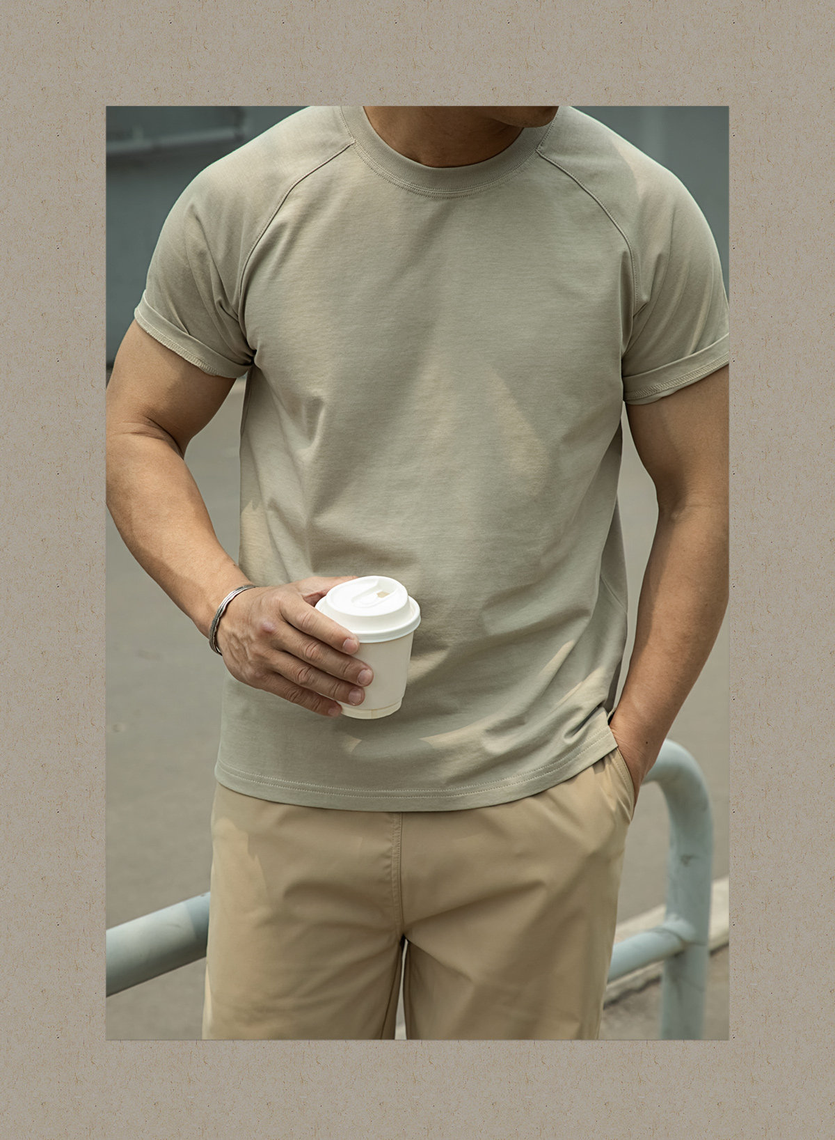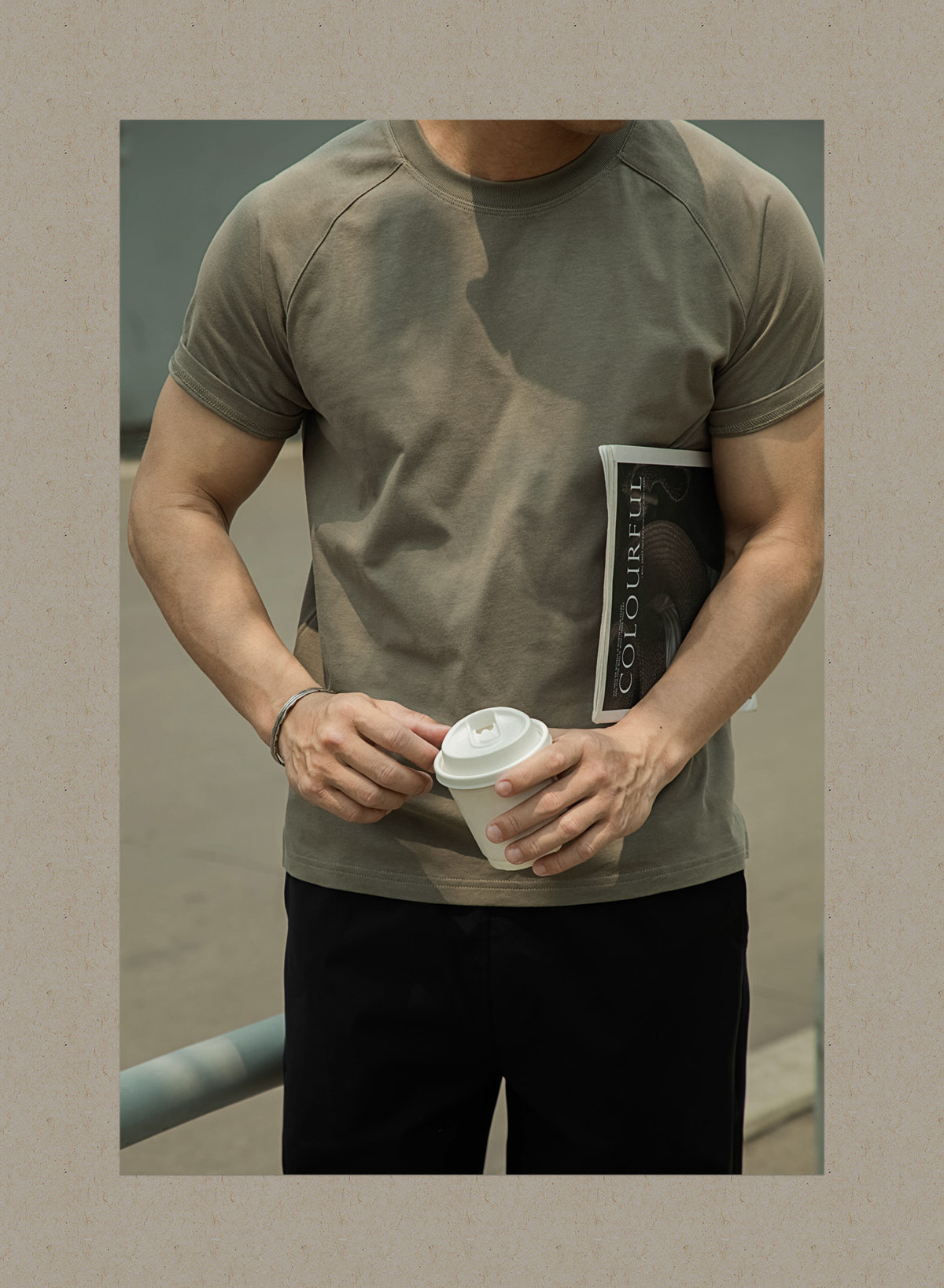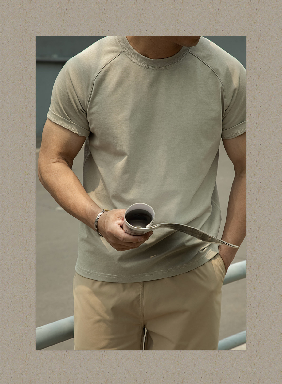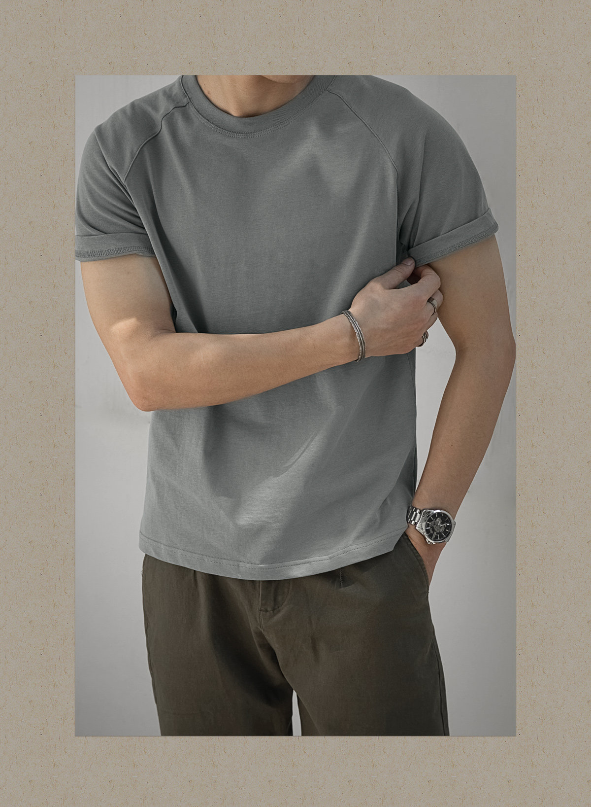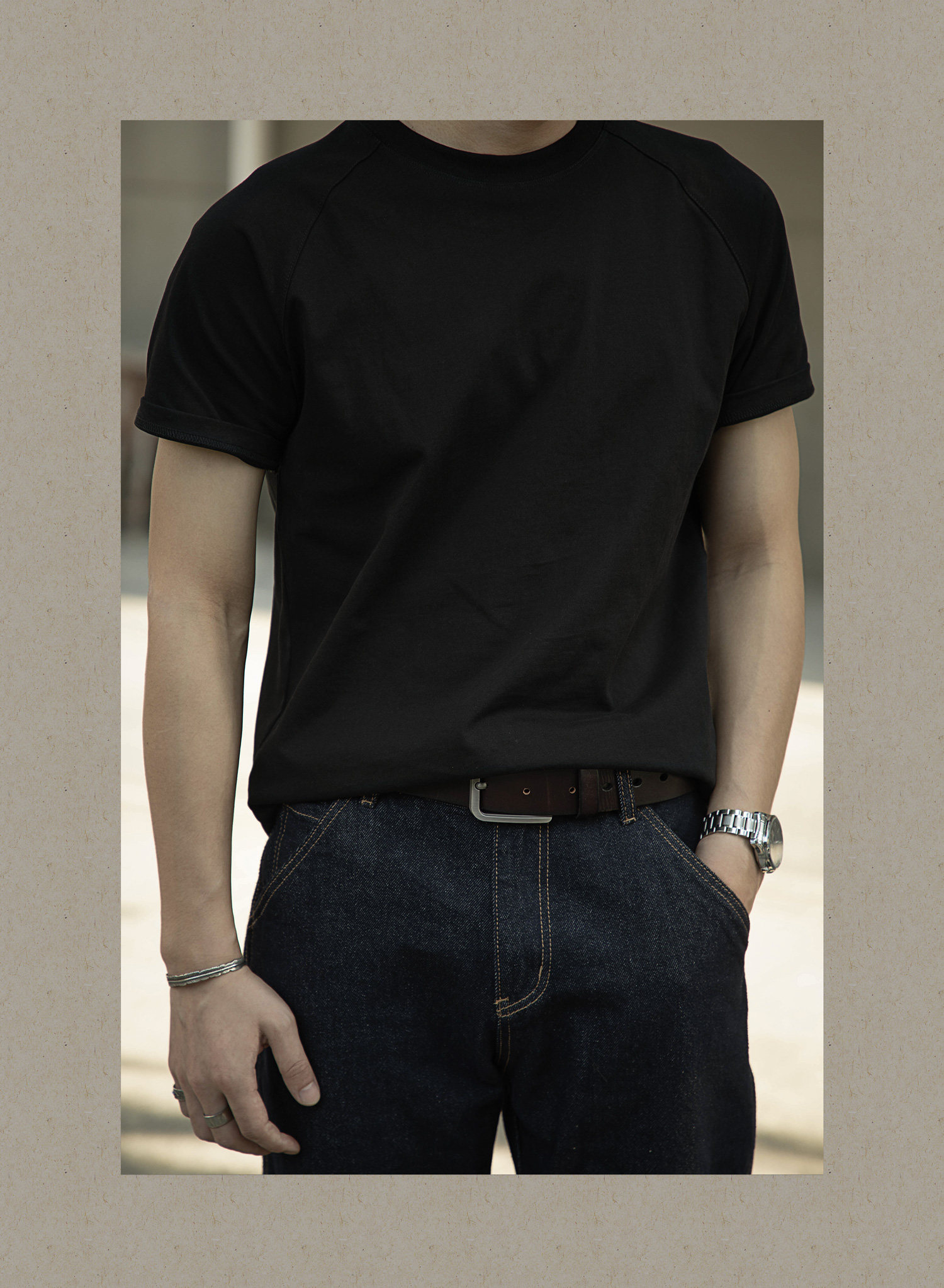 唔刃美式復古230g插肩袖T恤短袖夏季男雙紗純棉三本針雙層小領口