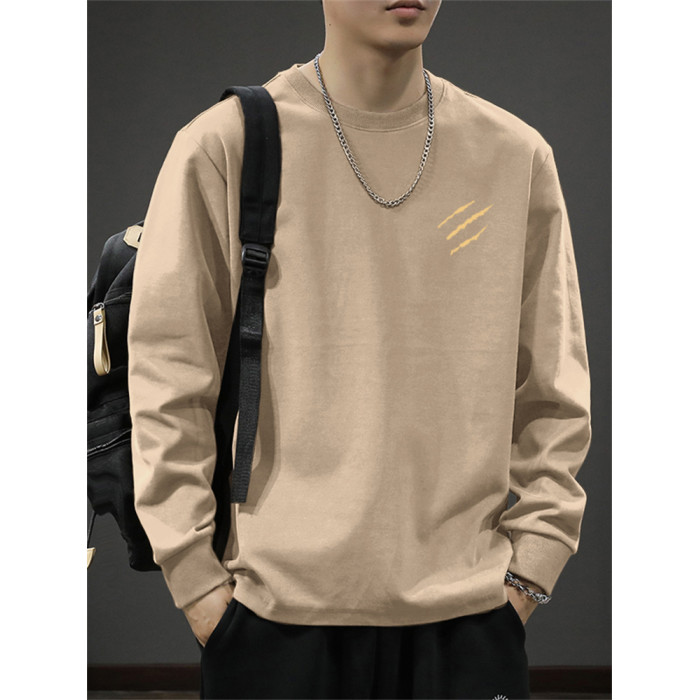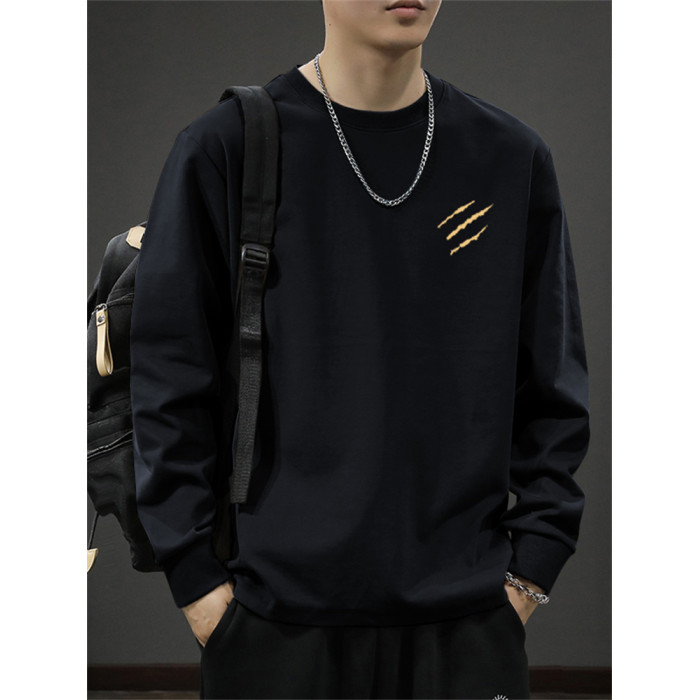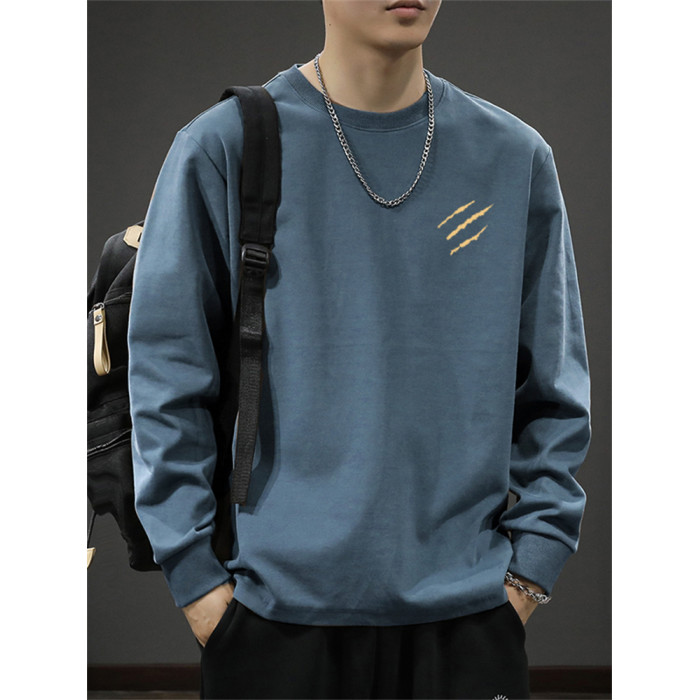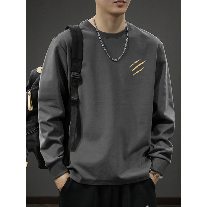 秋季純棉2025新款260克重磅長袖T恤男士潮流束口潮流打底衫上衣服