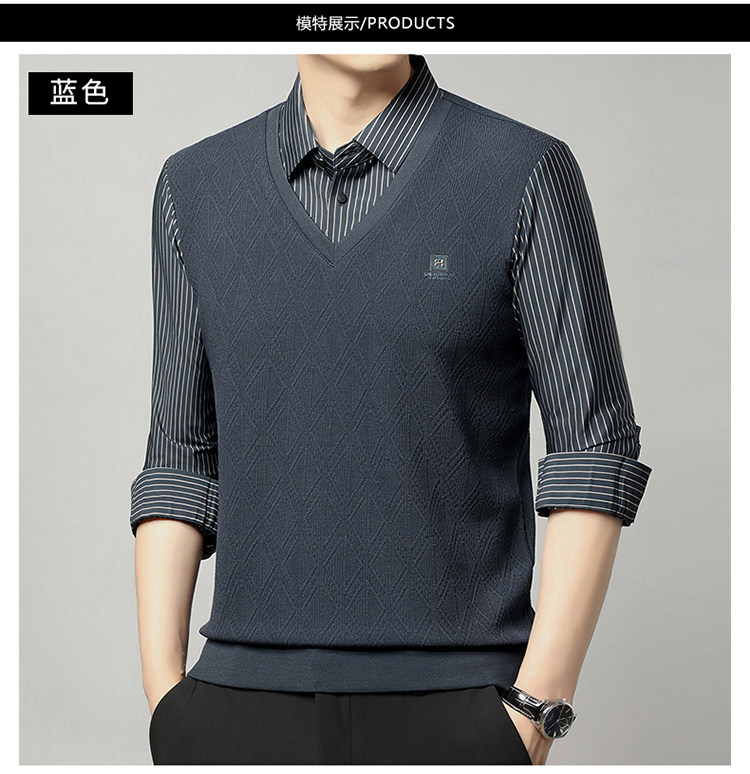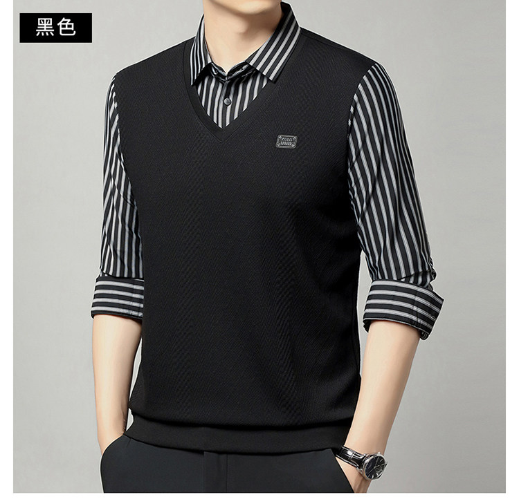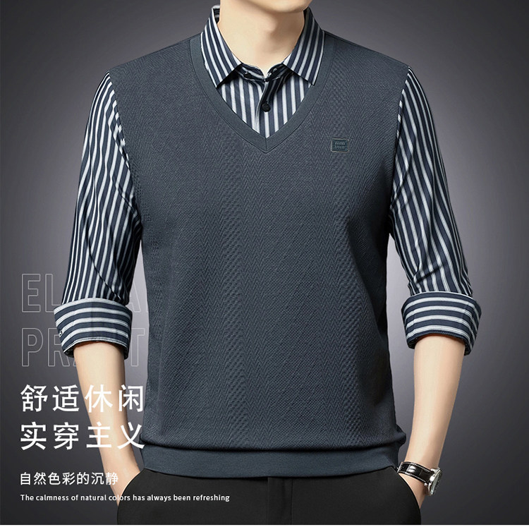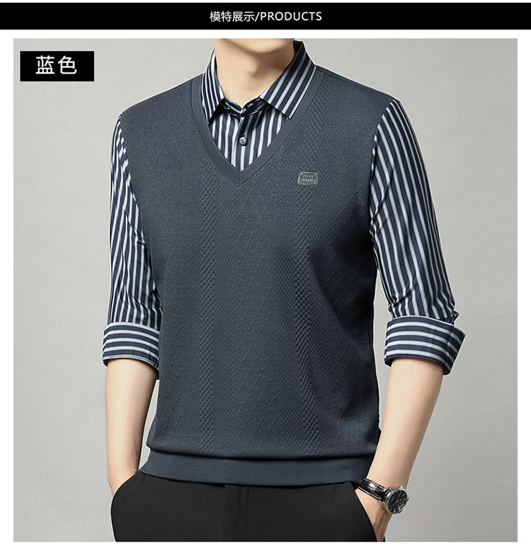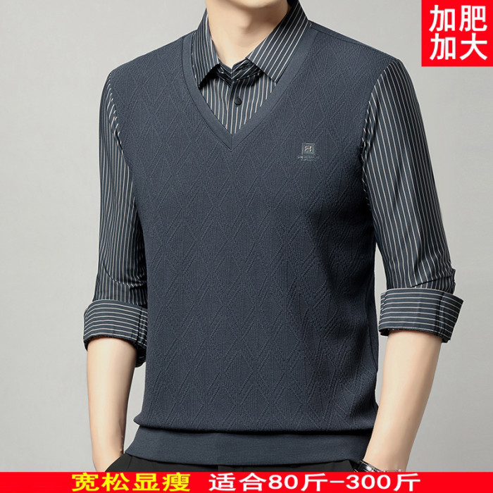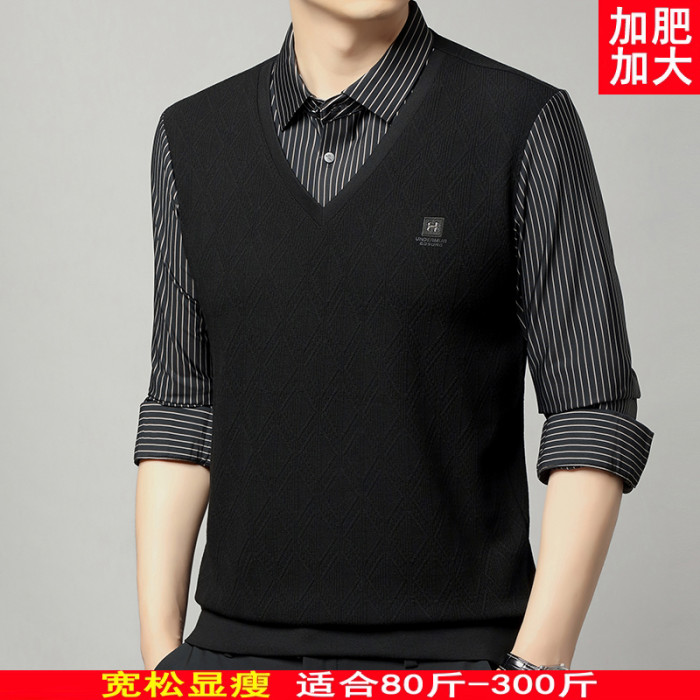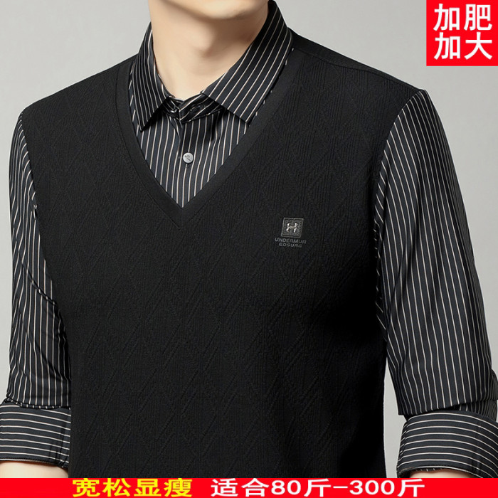 秋季男士長袖t恤肥佬胖子中年加肥加大碼羊毛假二件打底衫爸爸裝