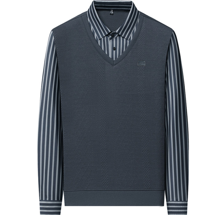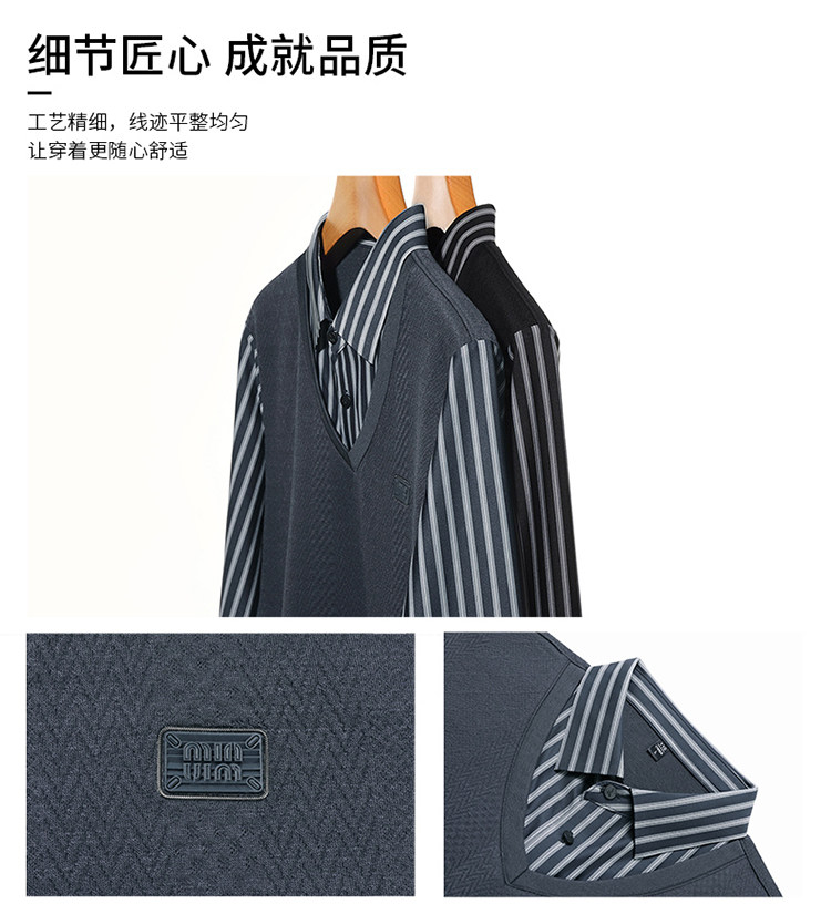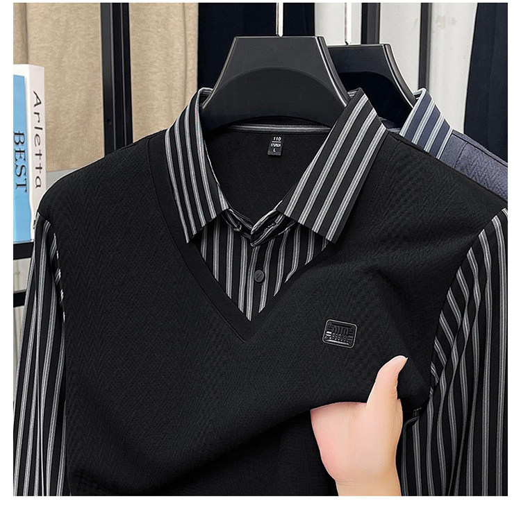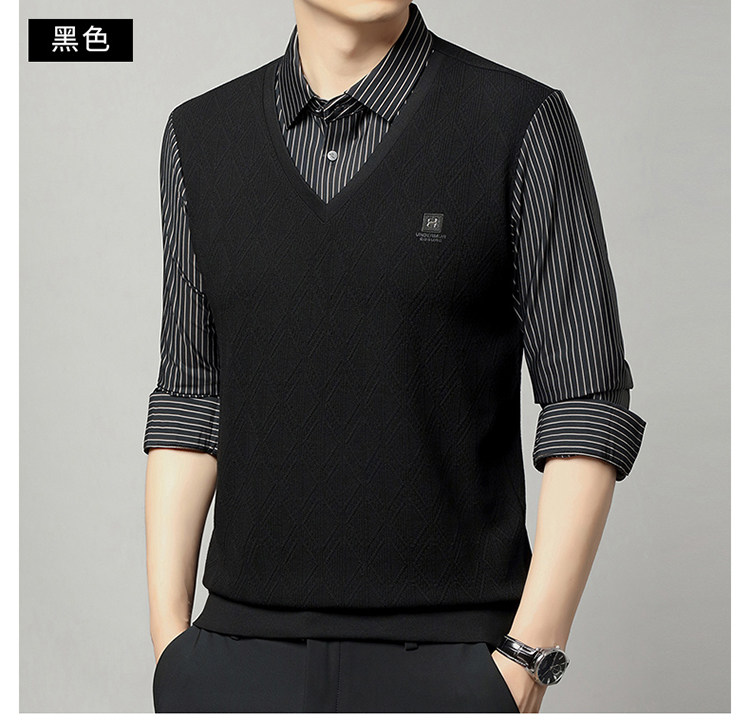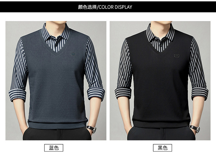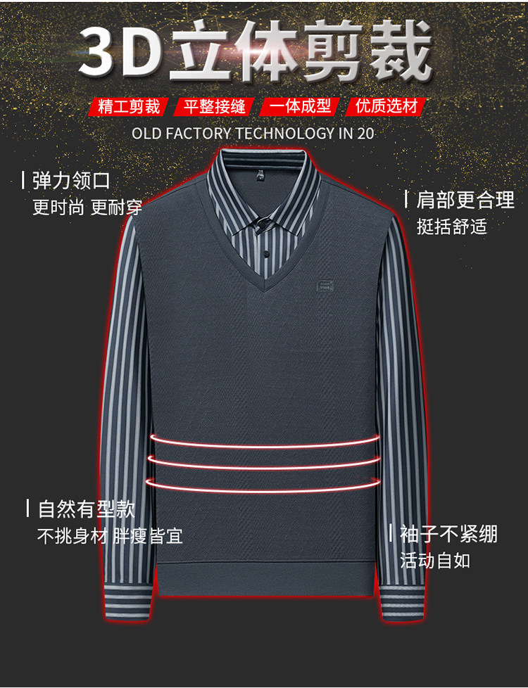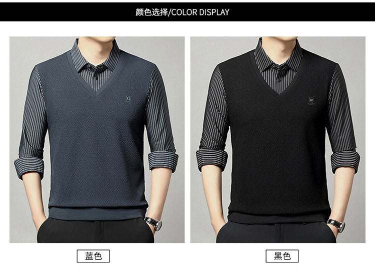 秋季男士長袖t恤肥佬胖子中年加肥加大碼羊毛假二件打底衫爸爸裝
