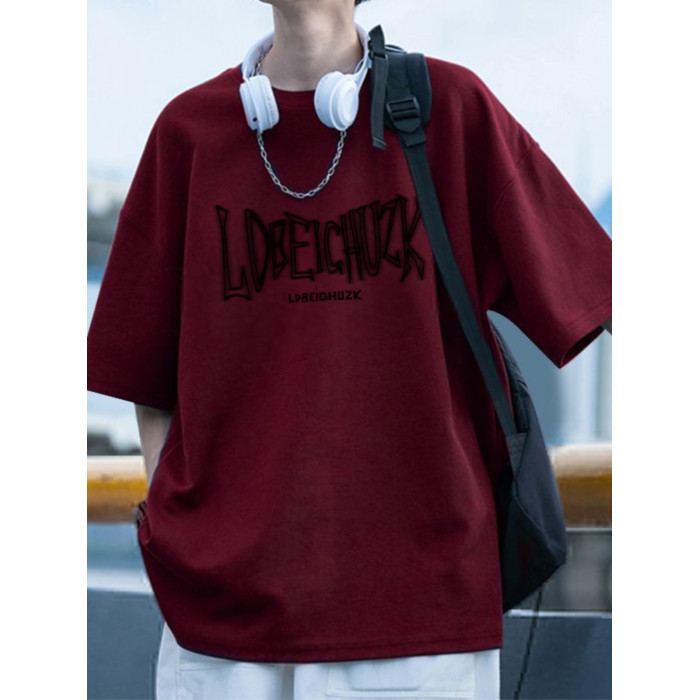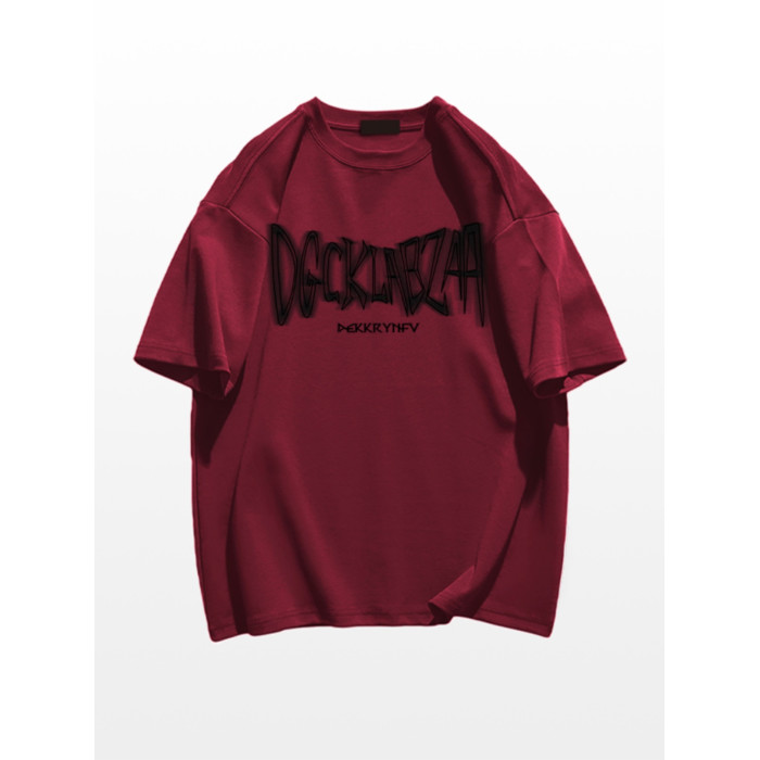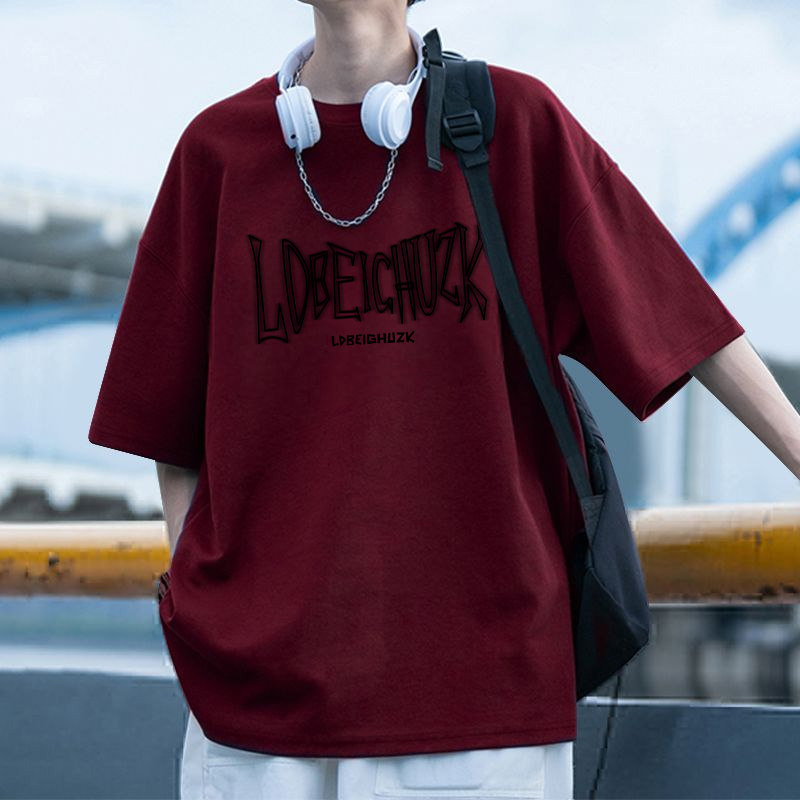 酒紅色重磅220g純棉短袖t恤男夏季2025新款美式休閒高街體恤寬松