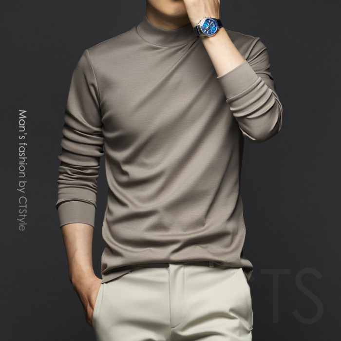 秋冬季男士中半高領長袖T恤加厚打底衫衛衣2025男裝秋衣秋裝上衣