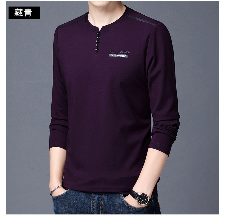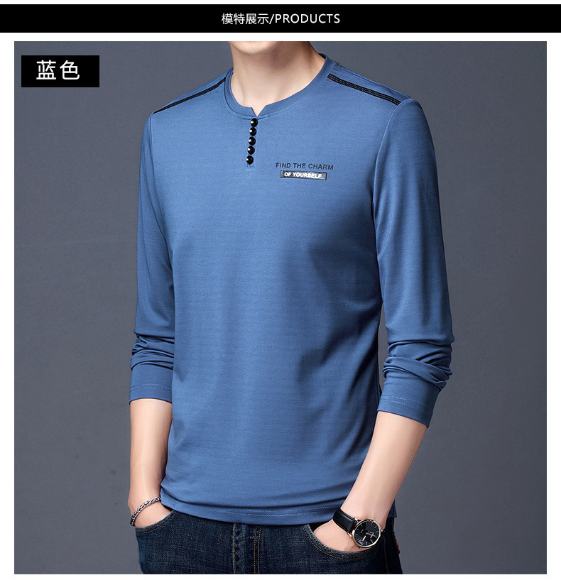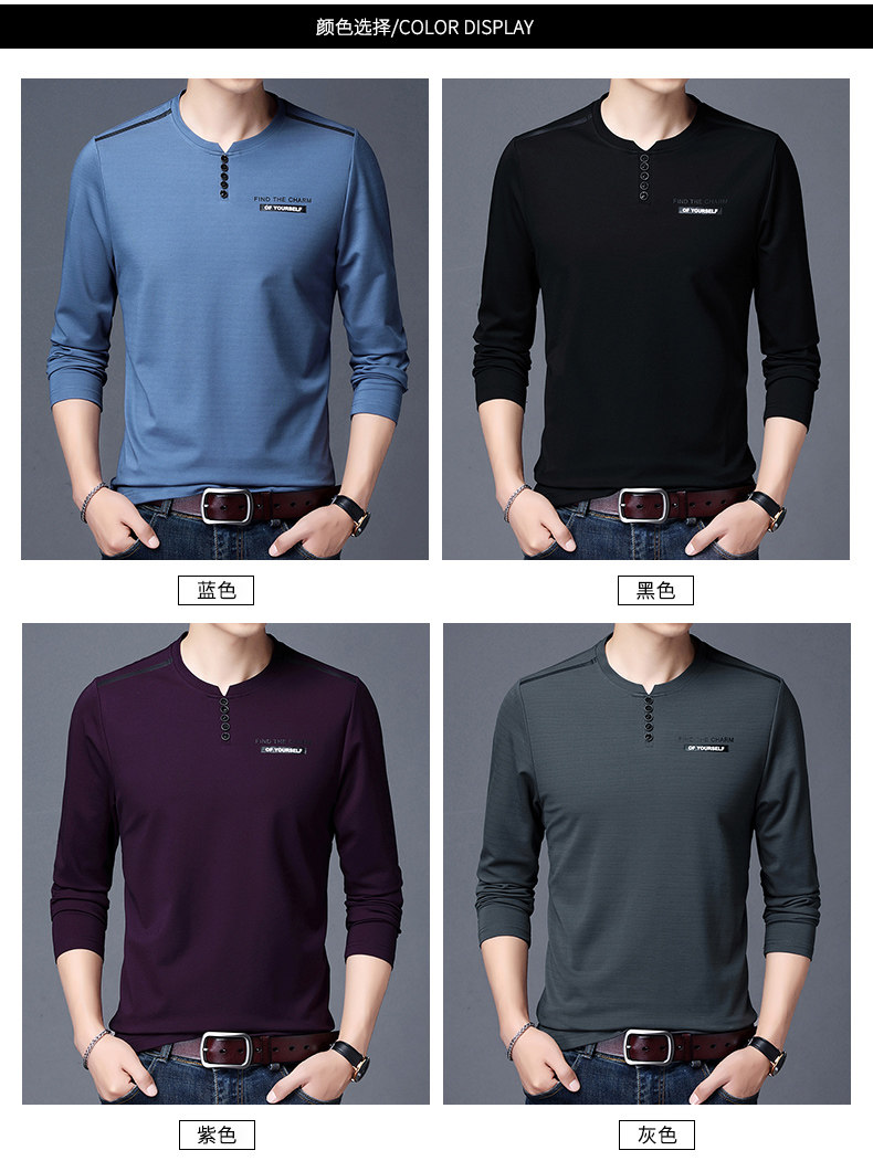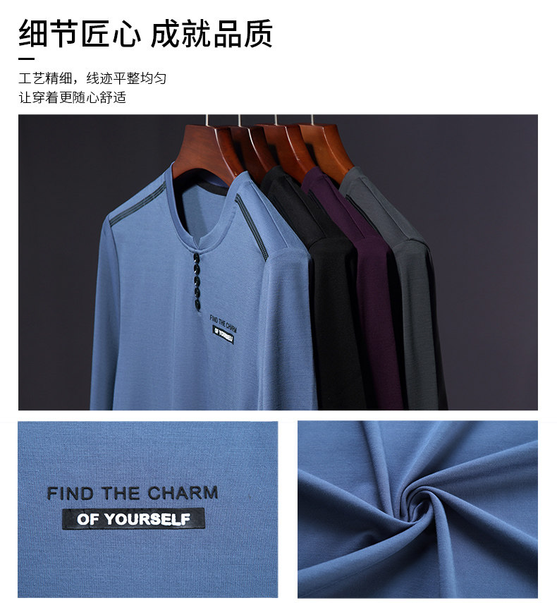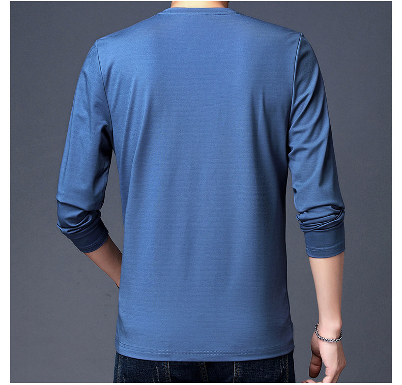 加肥加大碼長袖T恤男士寬松中年絲光棉秋季薄款衛衣圓領純色上衣
