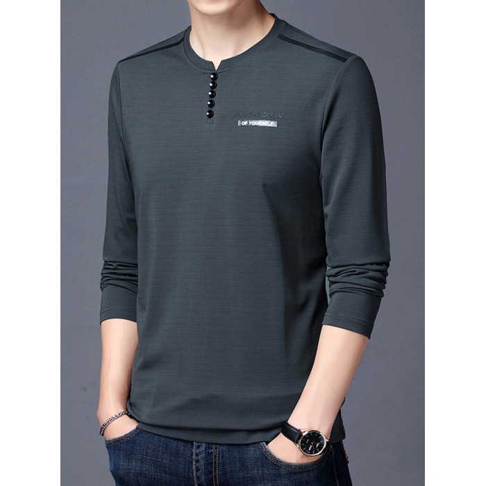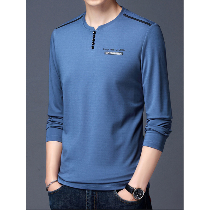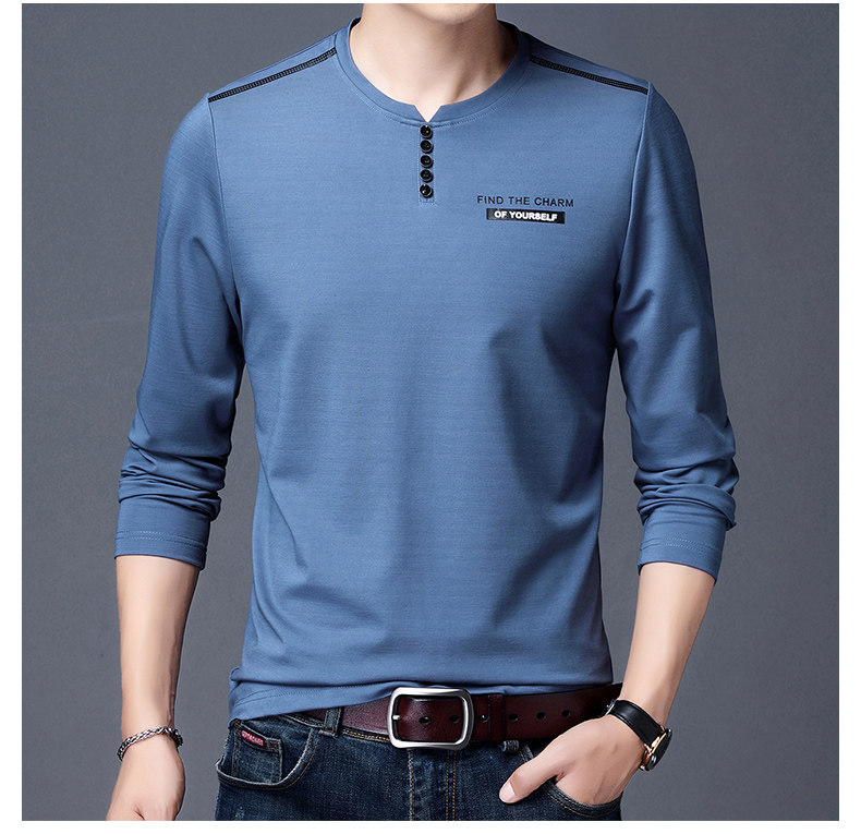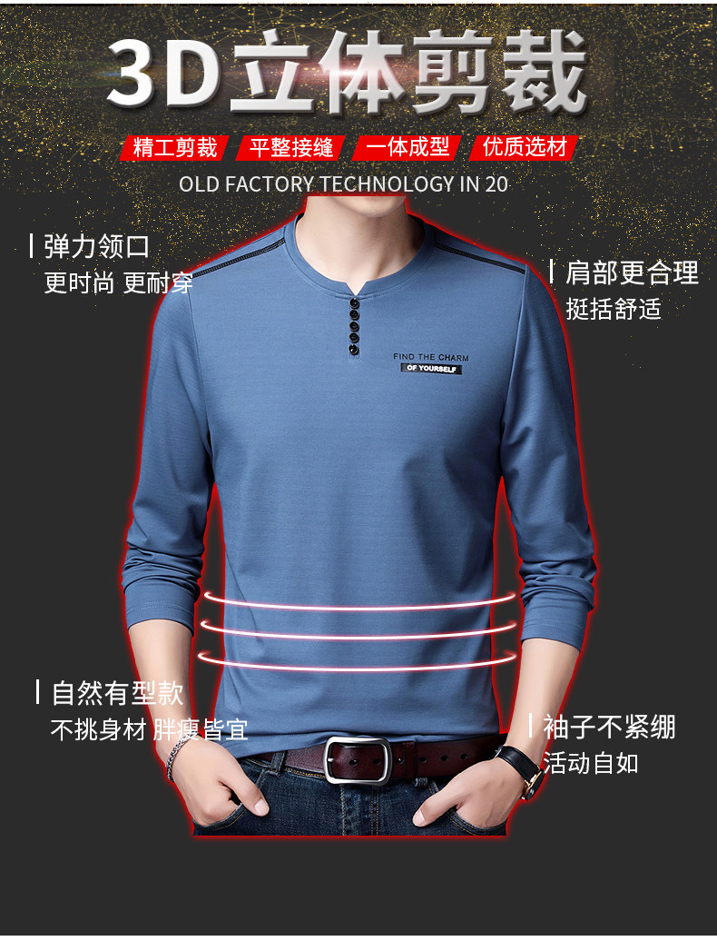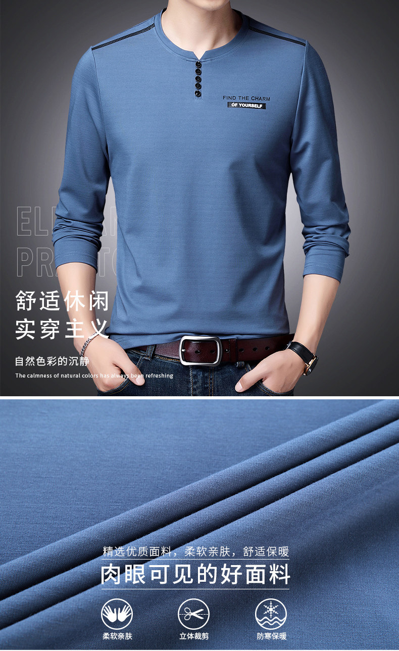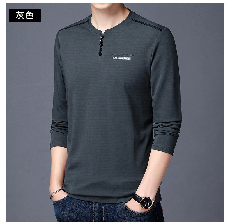 加肥加大碼長袖T恤男士寬松中年絲光棉秋季薄款衛衣圓領純色上衣