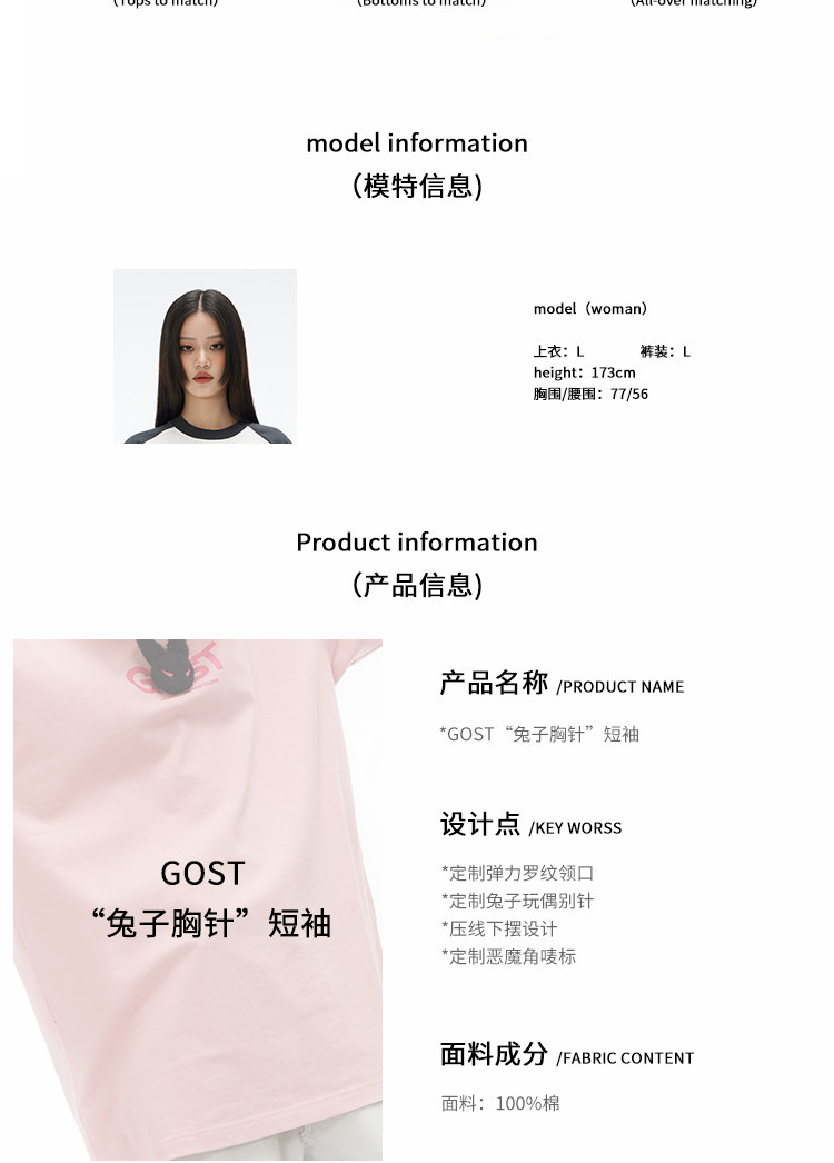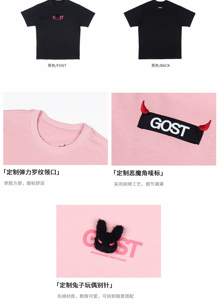 GOST 24SS“兔子胸針”短袖多巴胺配色T恤男女同款簡約百搭新款夏