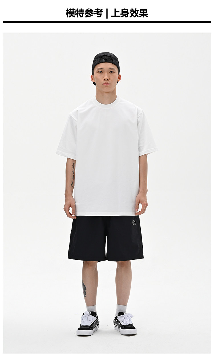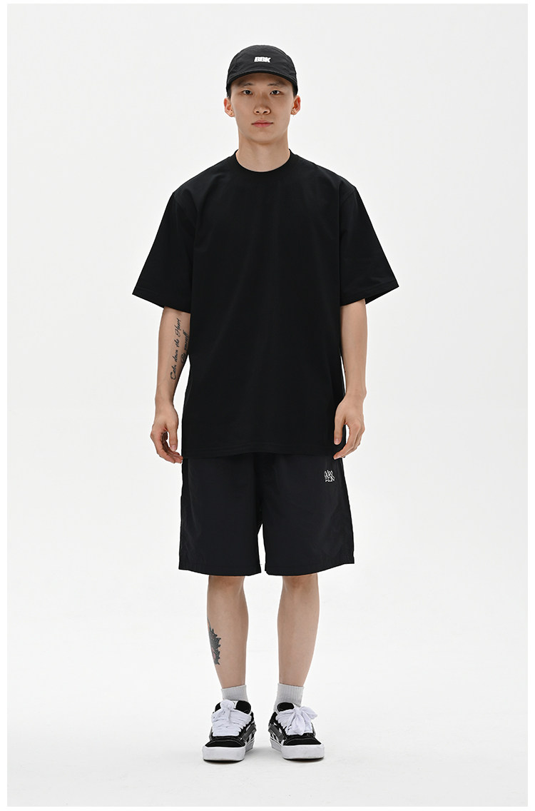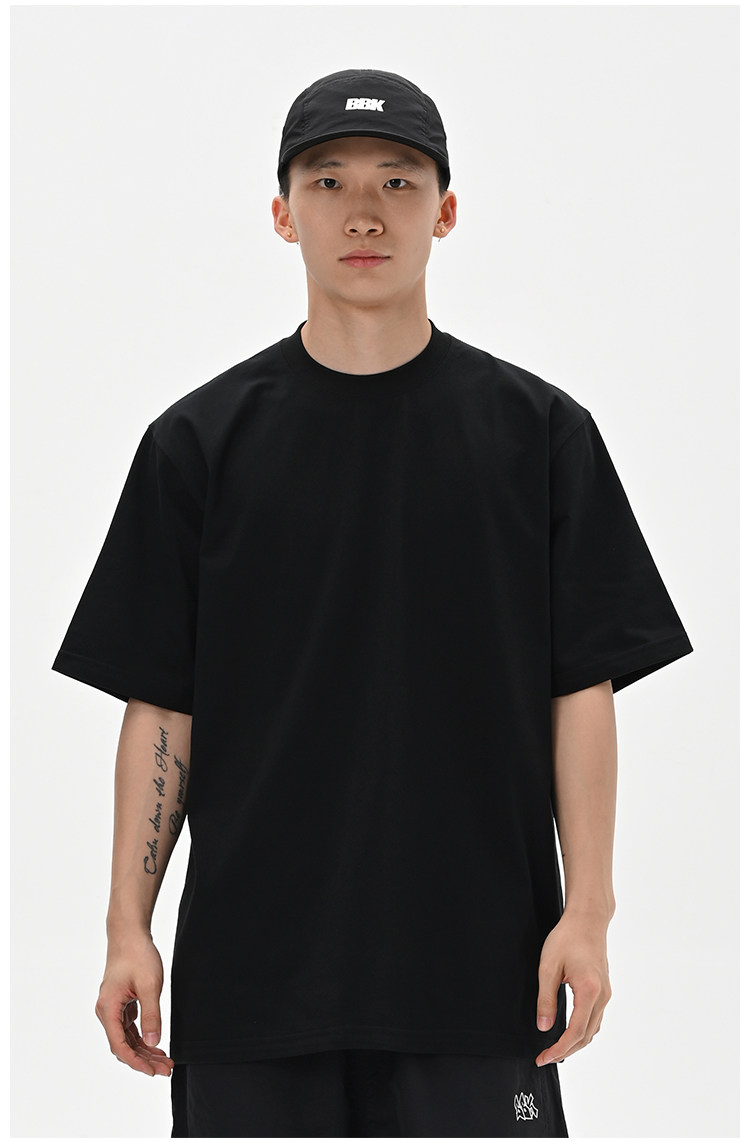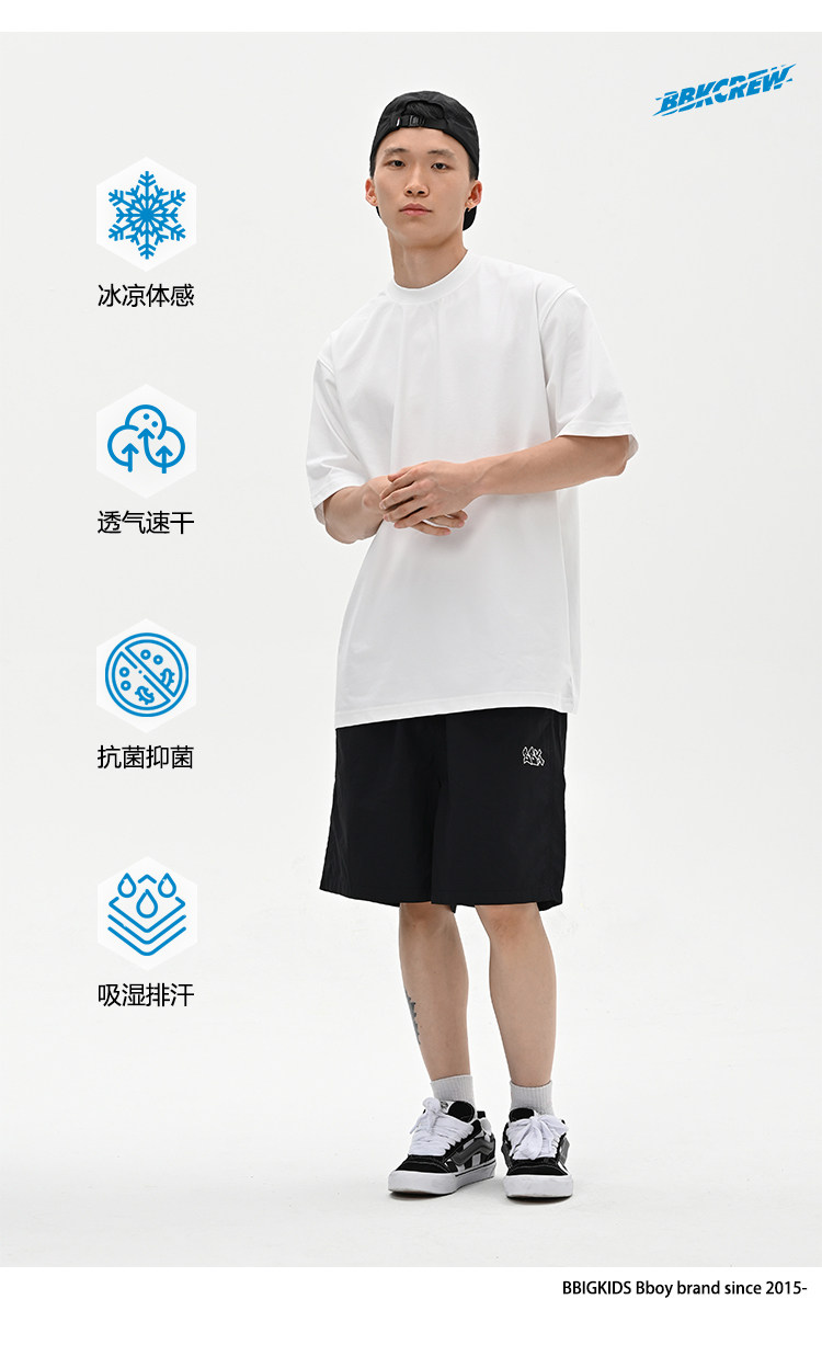 BBK 230g涼感索羅娜 純色T恤BBOY寬松淨色小領口打底短袖街舞滑板