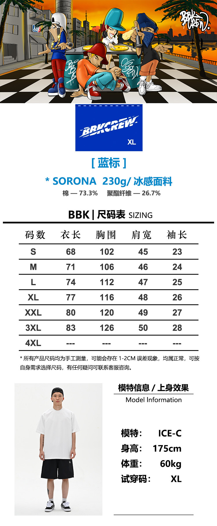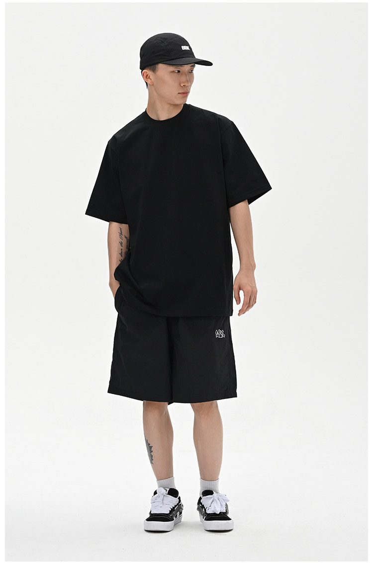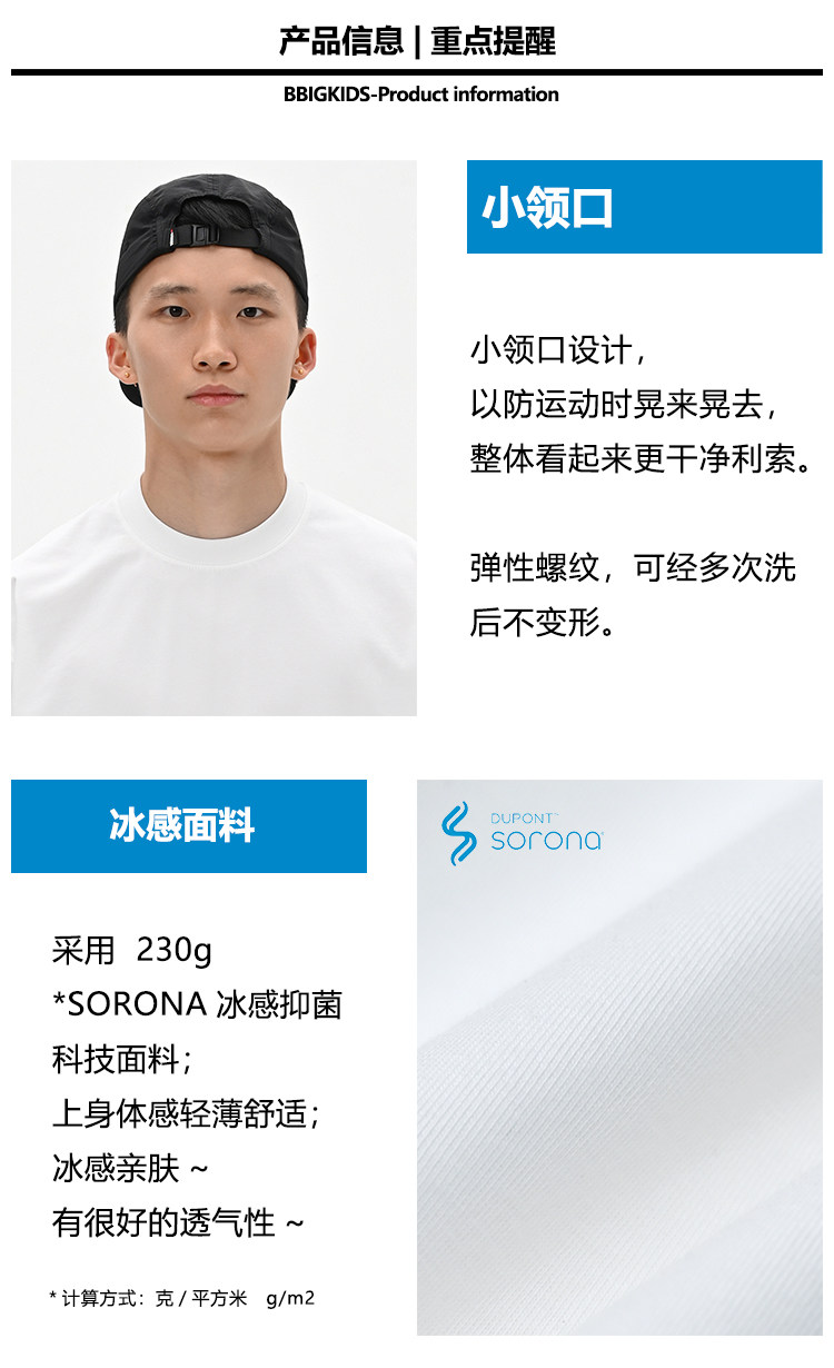 BBK 230g涼感索羅娜 純色T恤BBOY寬松淨色小領口打底短袖街舞滑板