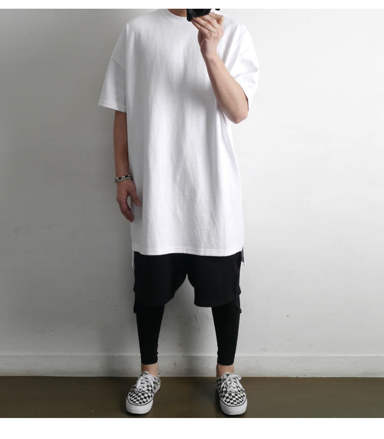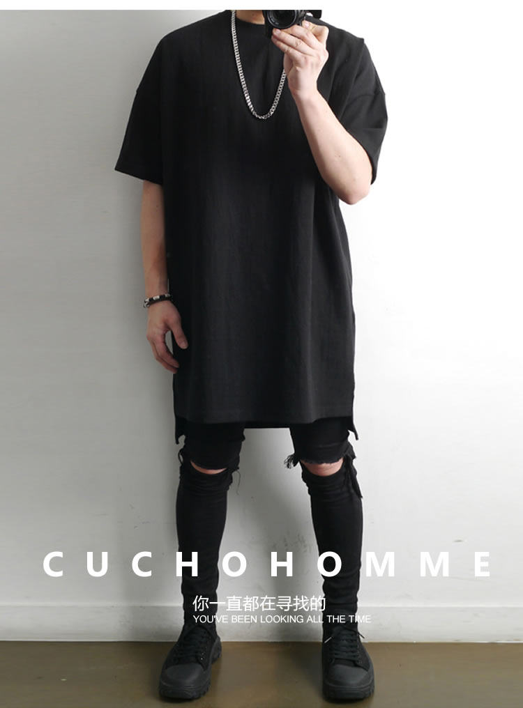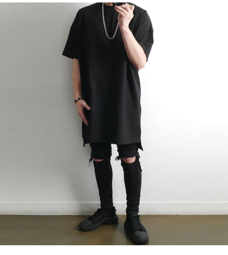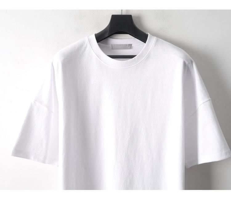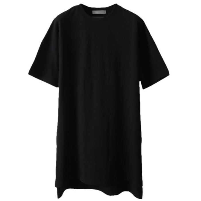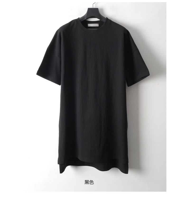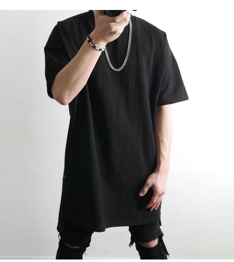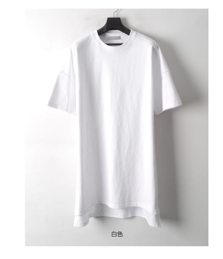 230克重磅純棉短袖t恤男夏季潮牌寬松中袖純色長款打底半袖側開叉