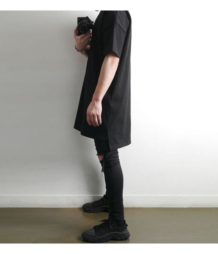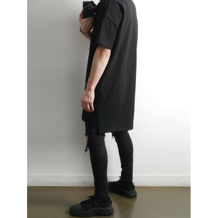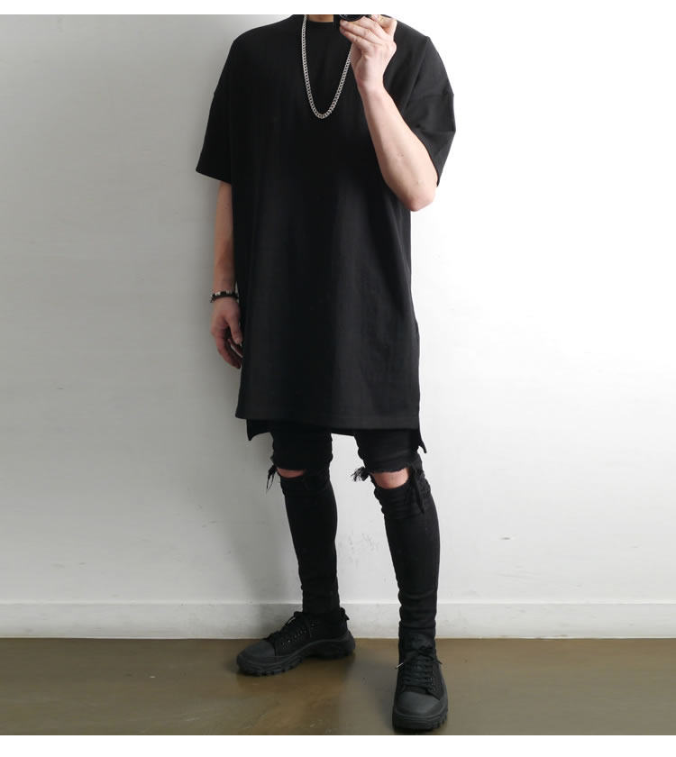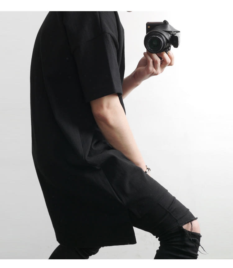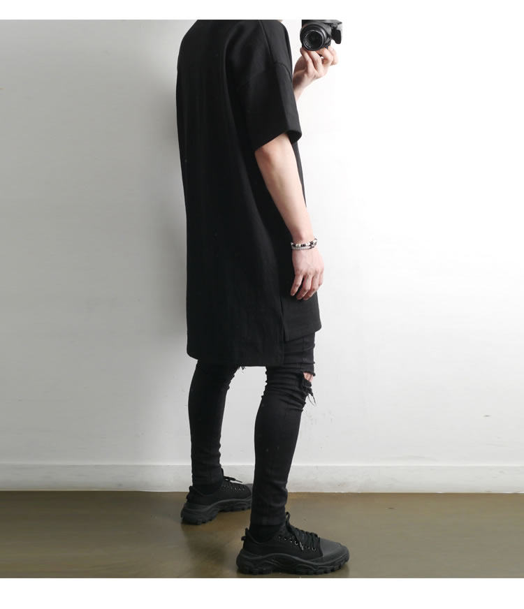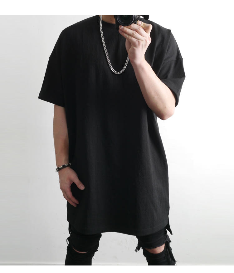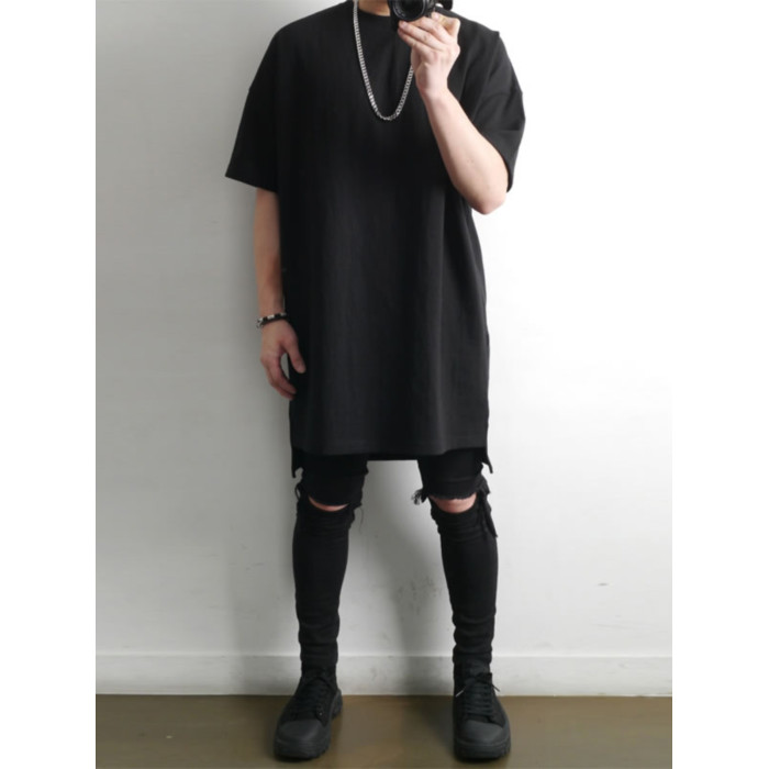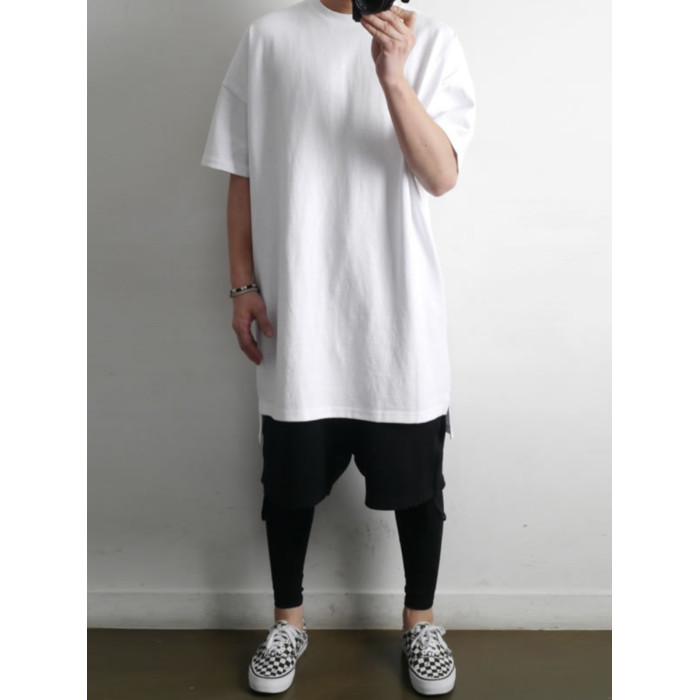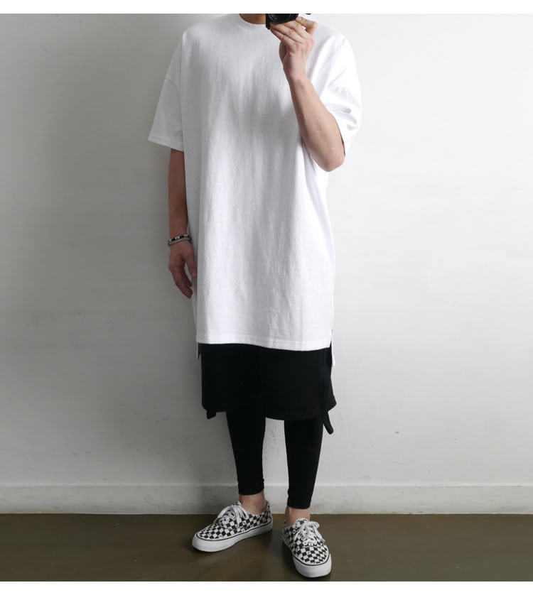 230克重磅純棉短袖t恤男夏季潮牌寬松中袖純色長款打底半袖側開叉