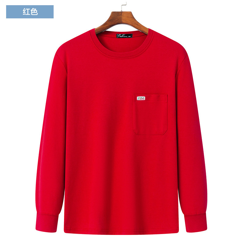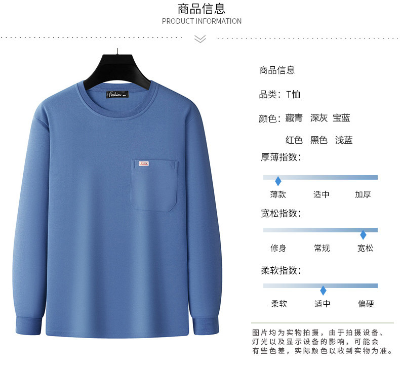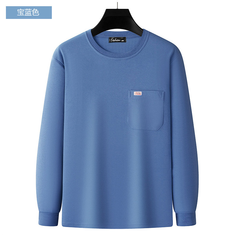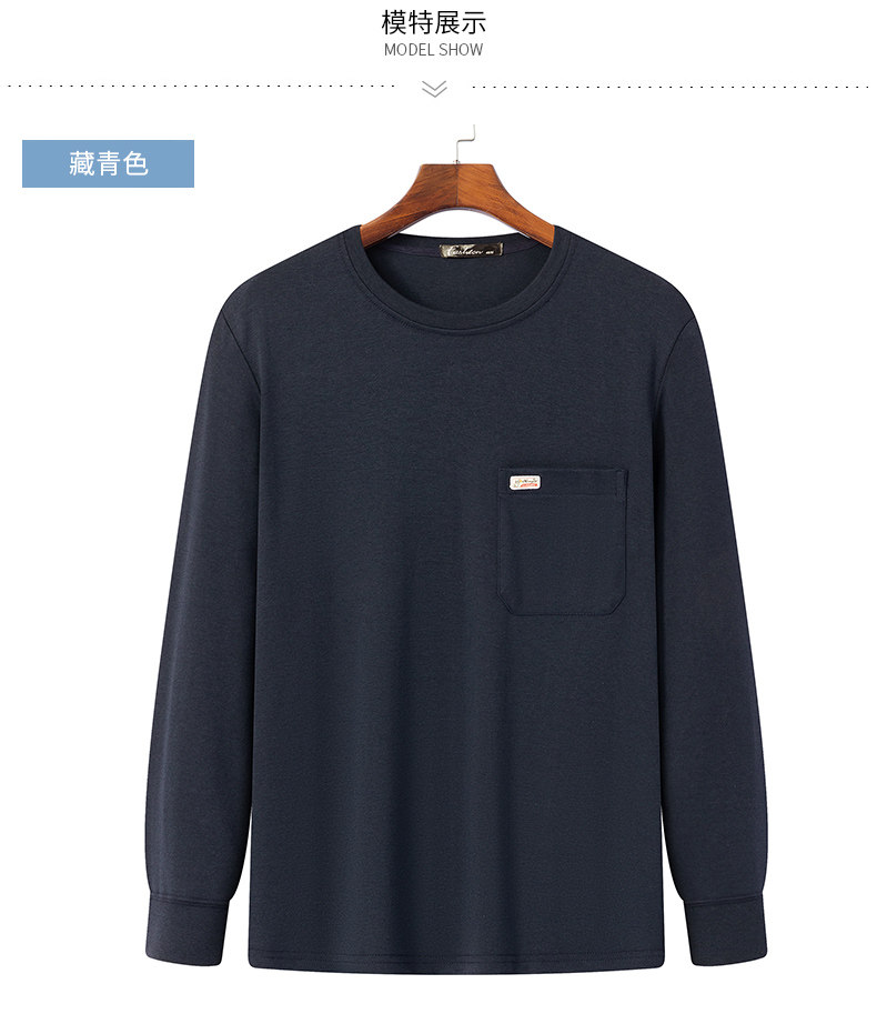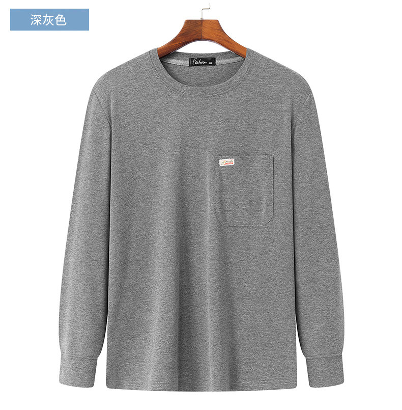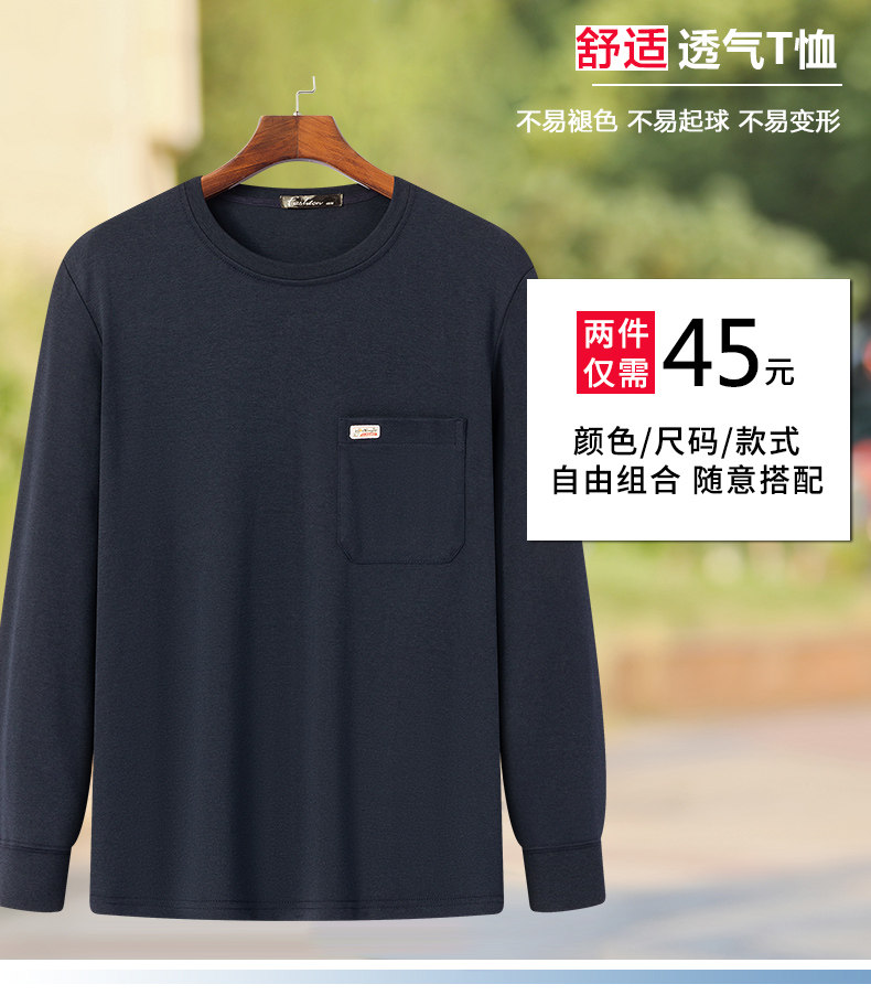 中老年父親圓領打底衫40-50嵗人男裝寬鬆長袖T恤上衣春秋季爸爸裝