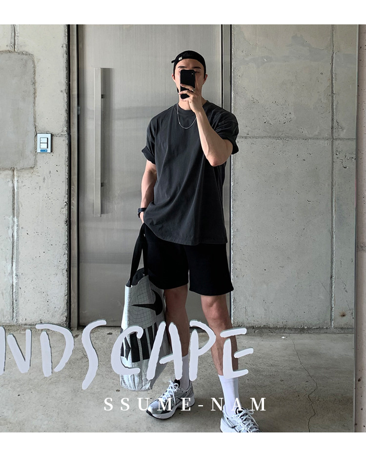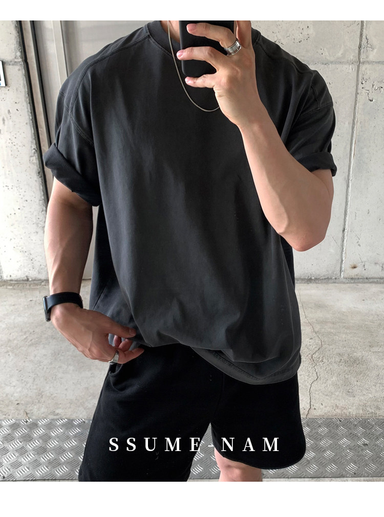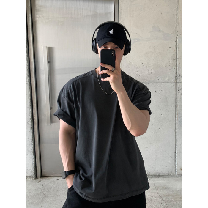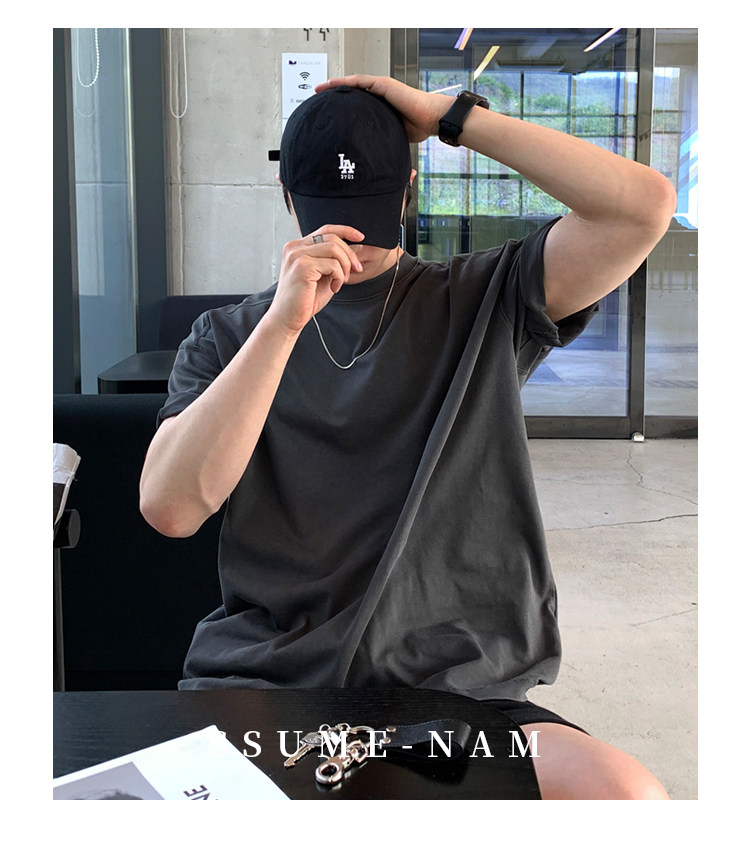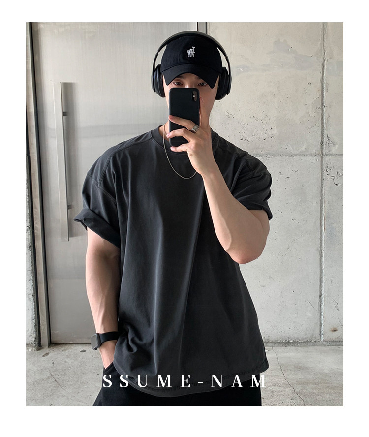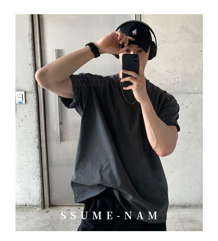 SSUMENAM「重磅 洗水 做舊」純棉300g短袖t恤男夏季韓系寬松半袖