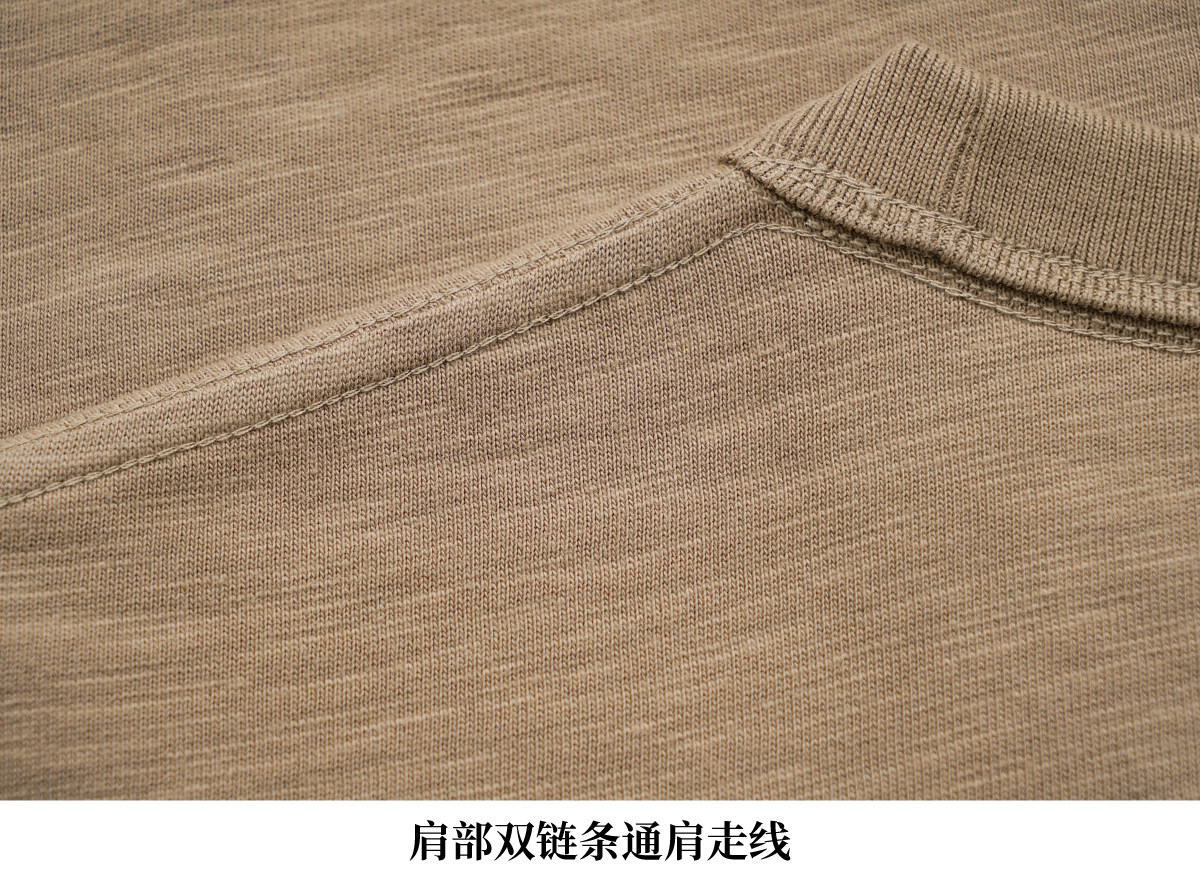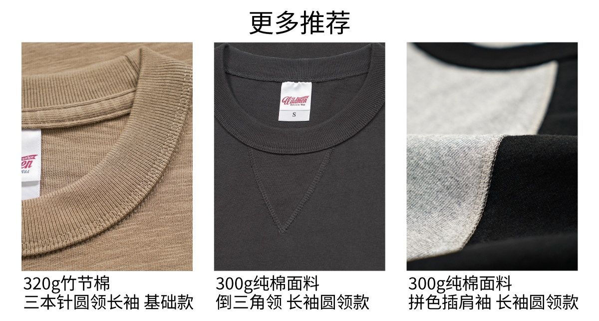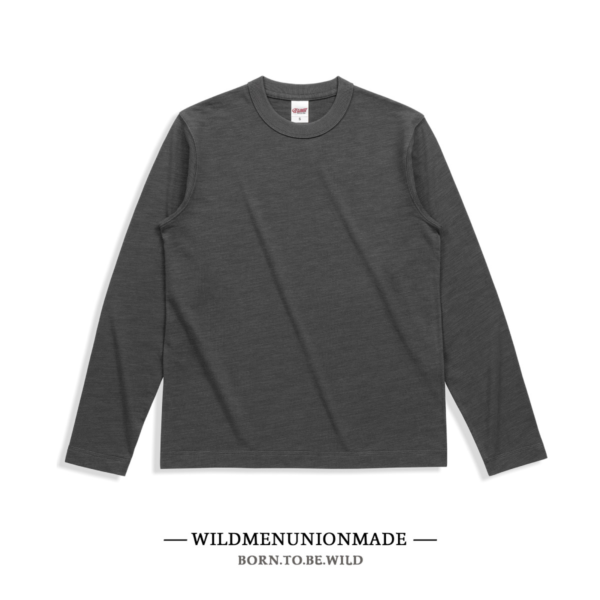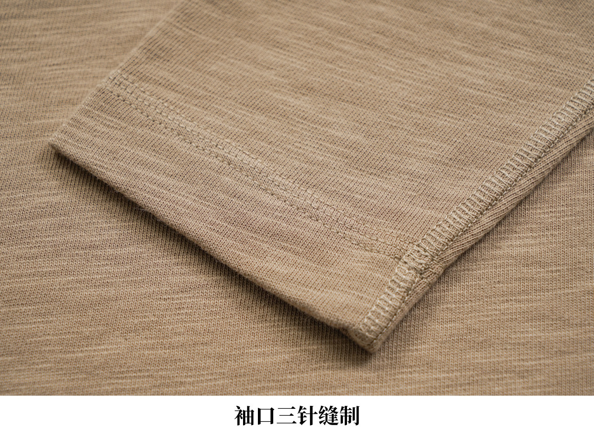 320g 復古三本針重磅厚實竹節棉純棉純色圓領長袖T恤基礎款打底衫