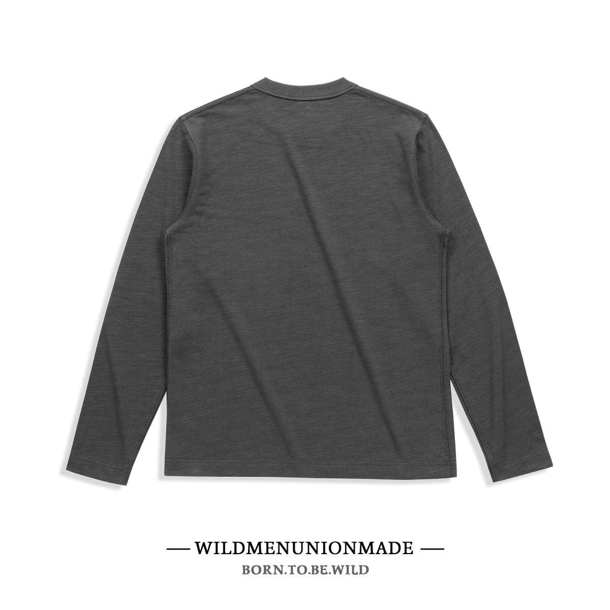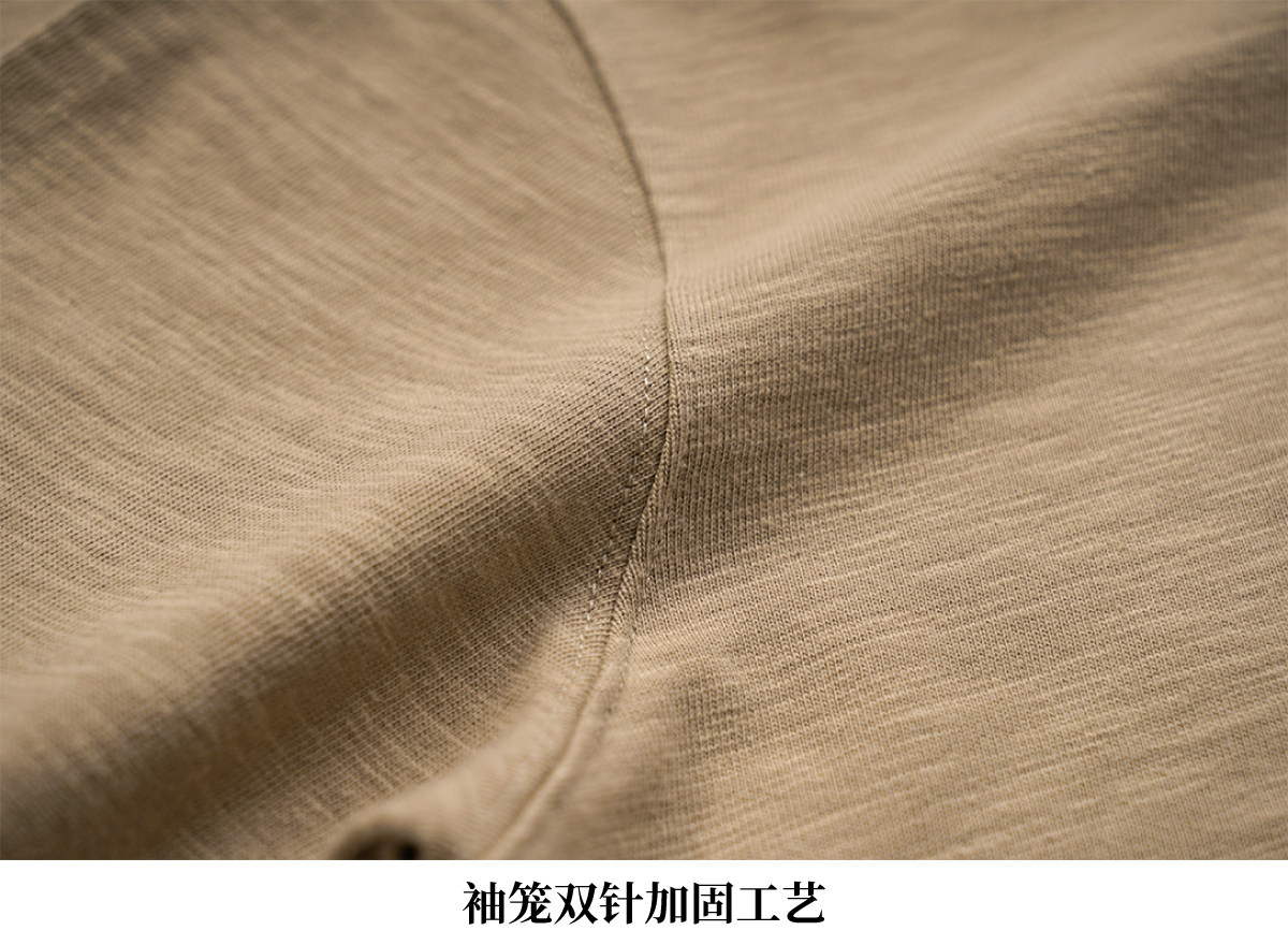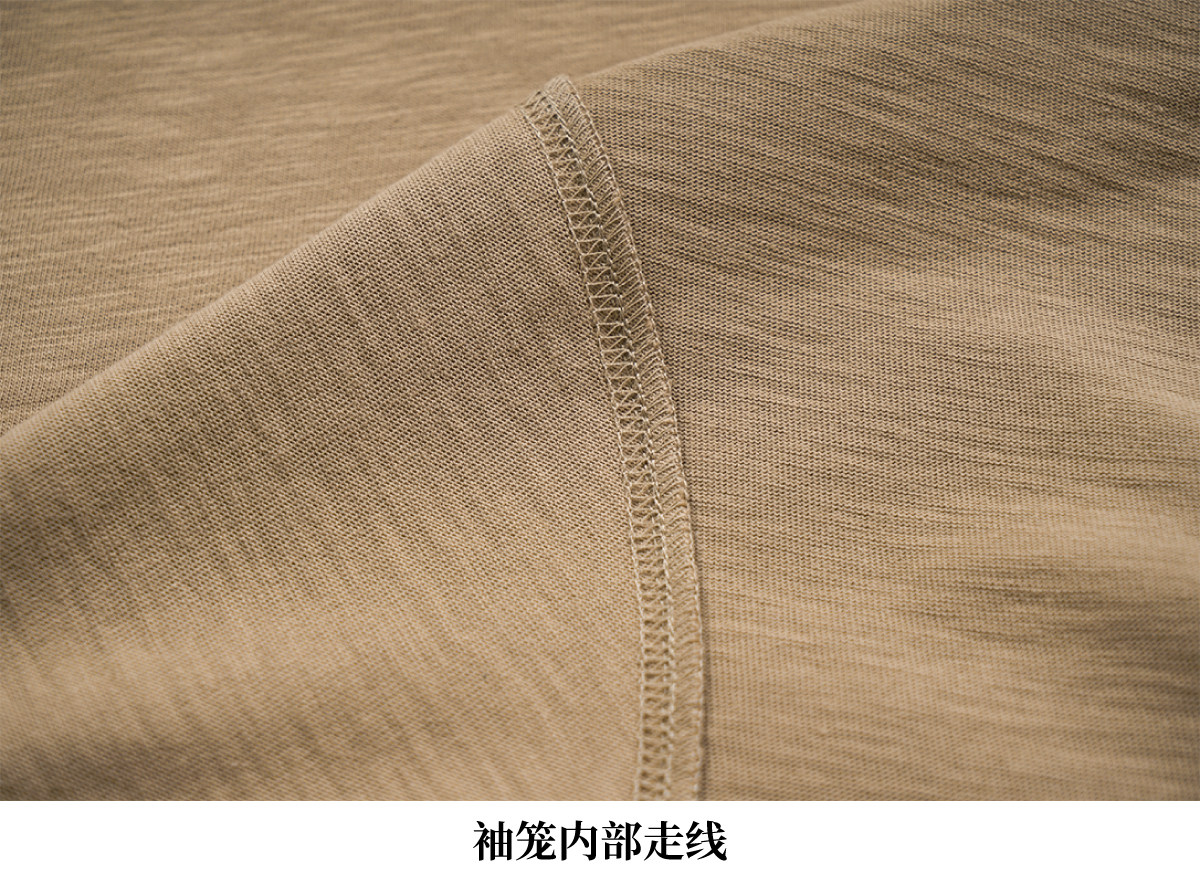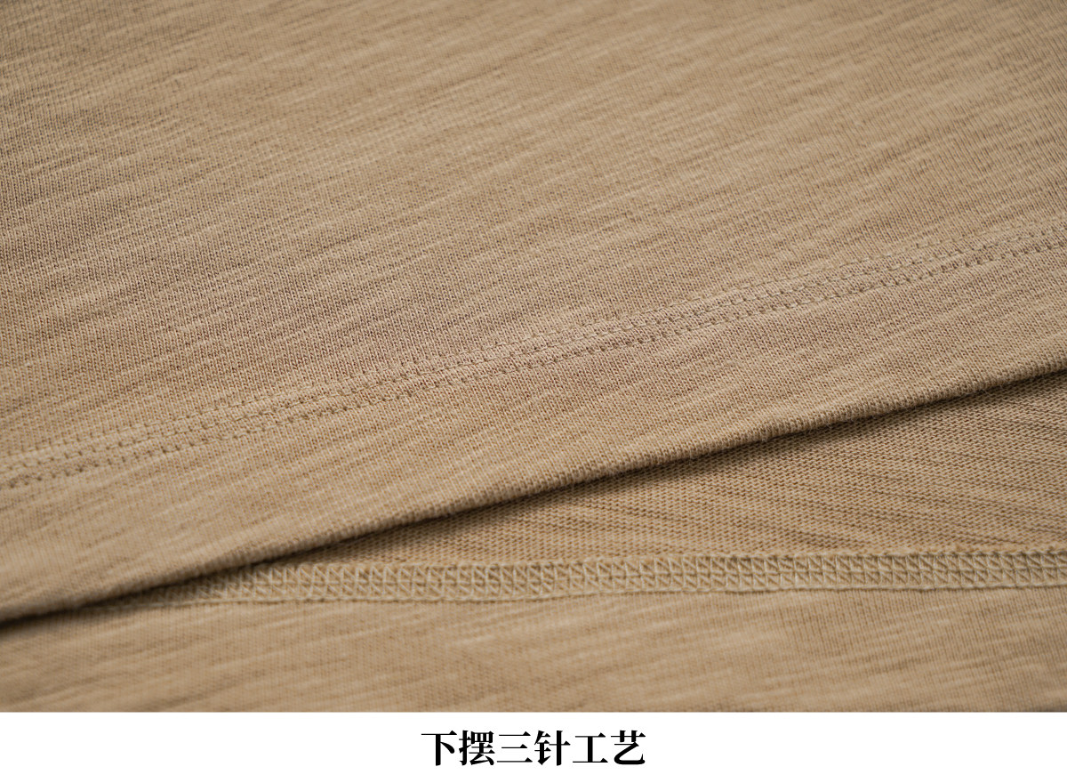 320g 復古三本針重磅厚實竹節棉純棉純色圓領長袖T恤基礎款打底衫