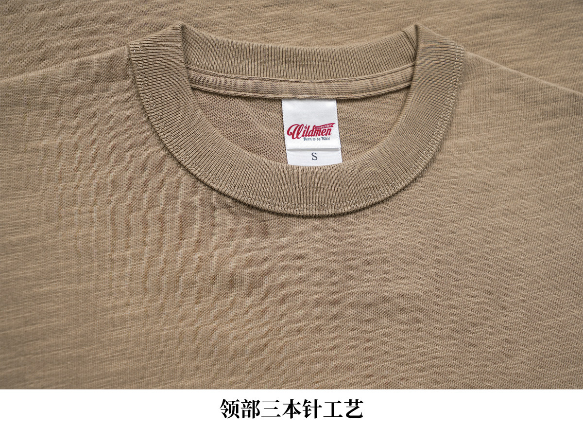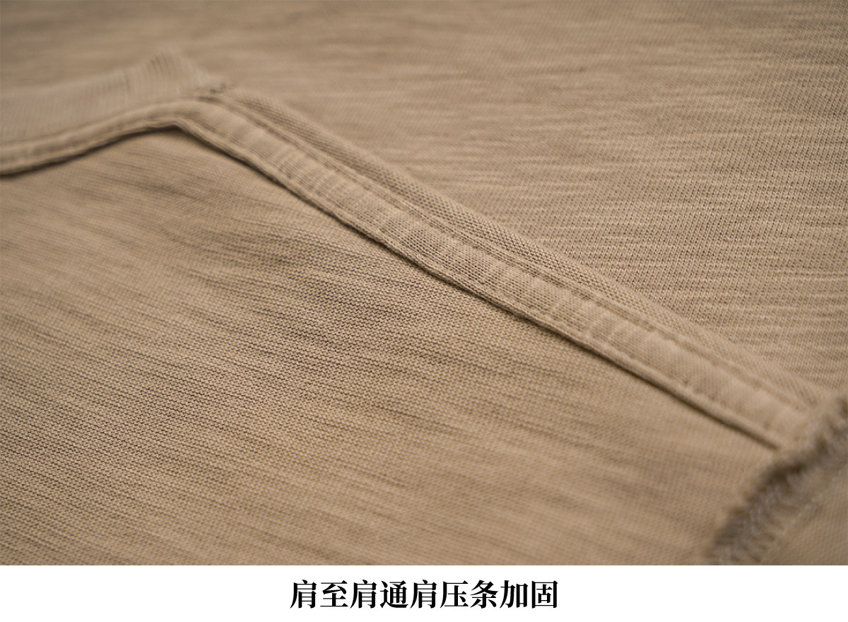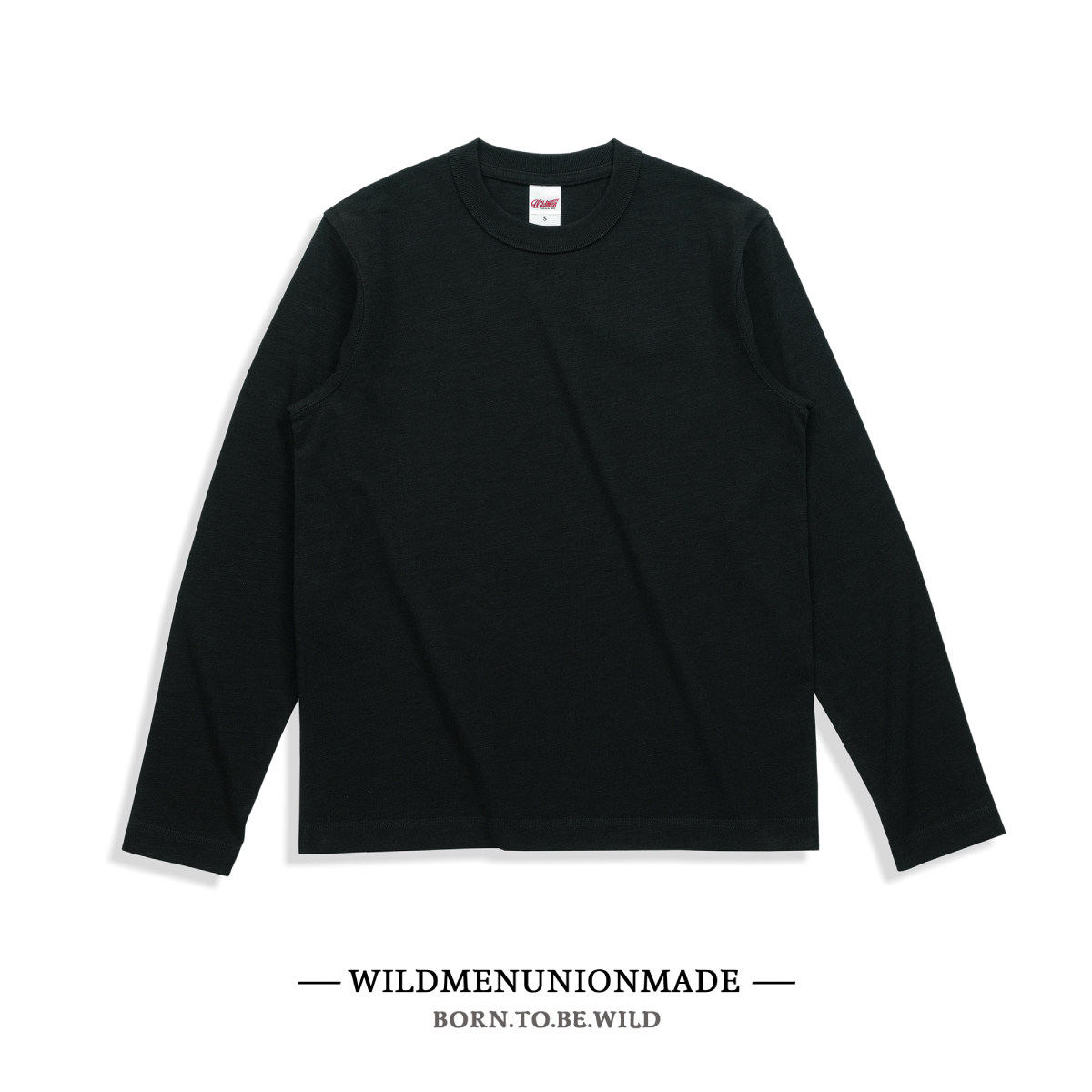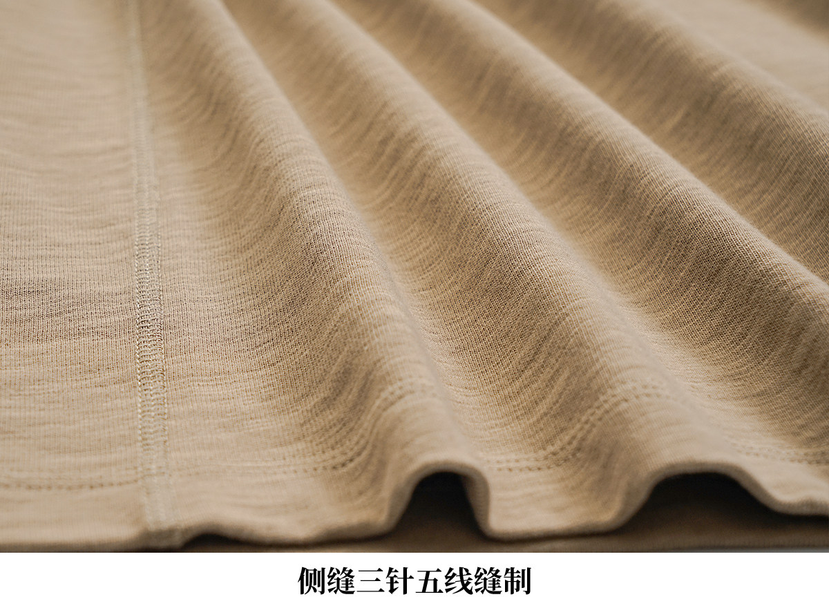 320g 復古三本針重磅厚實竹節棉純棉純色圓領長袖T恤基礎款打底衫
