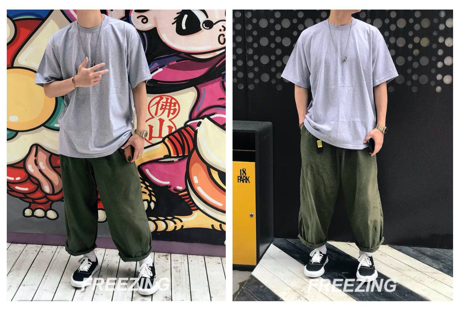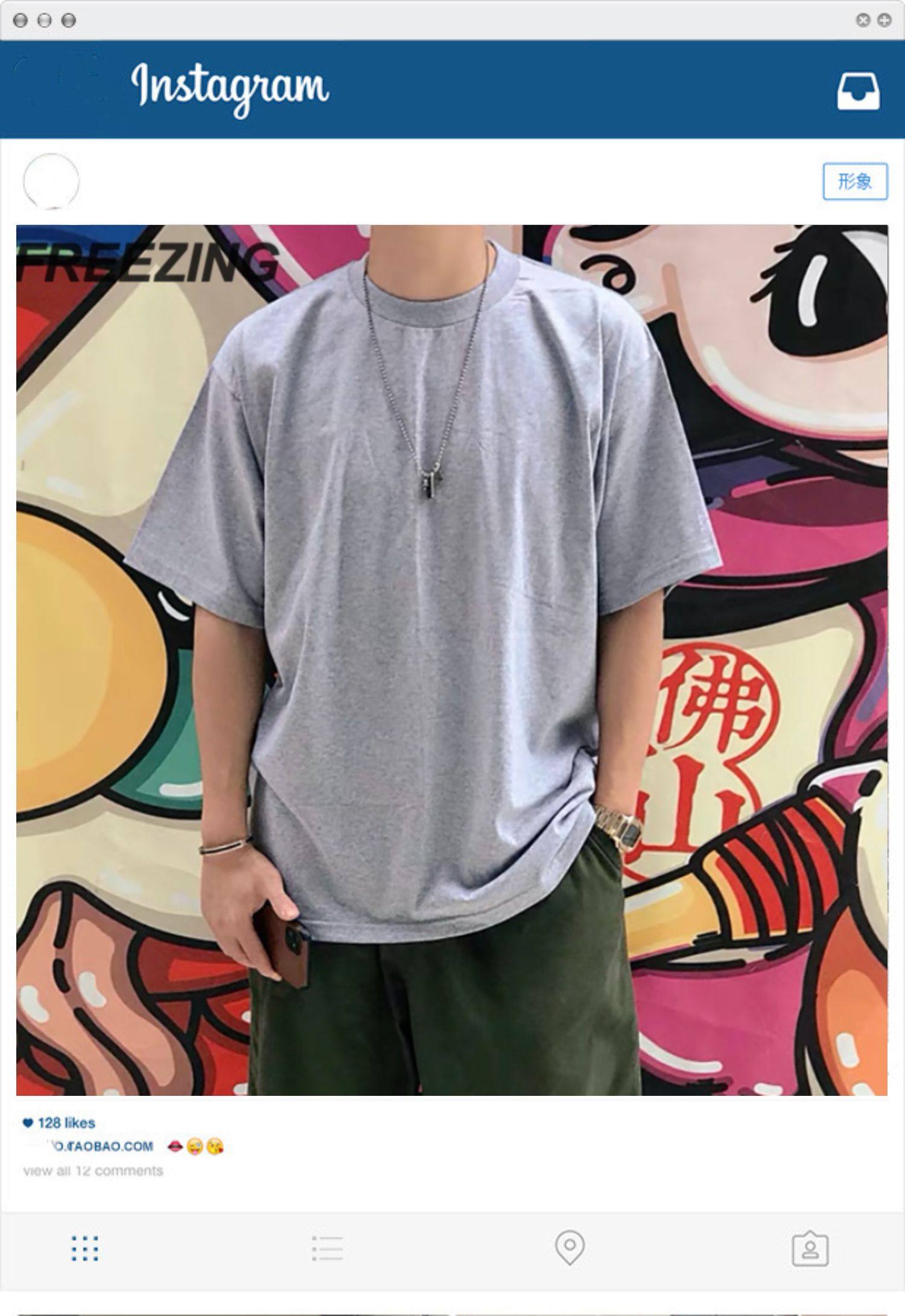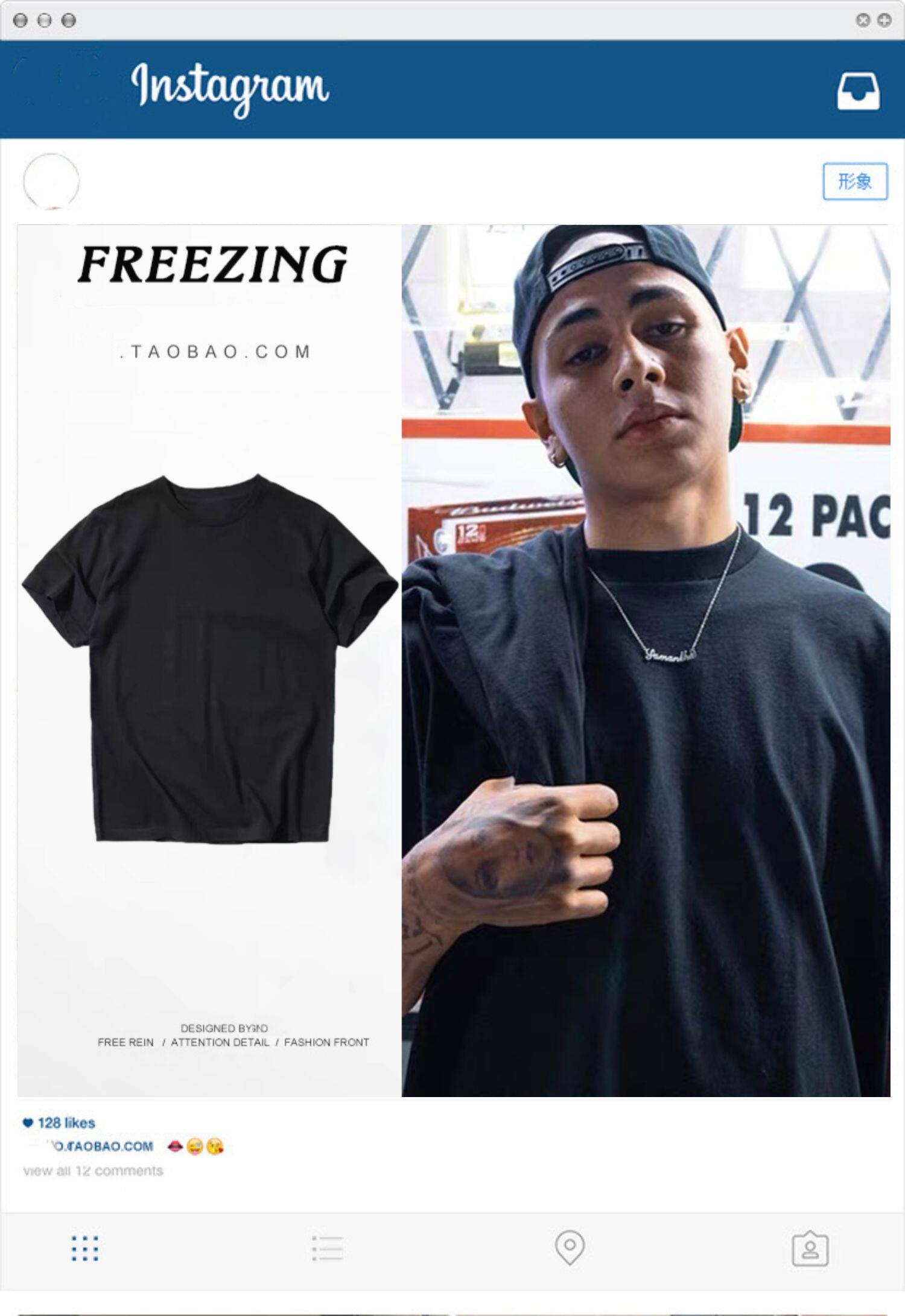 厚實小領口T恤黑色嘻哈寬松大版短袖不透素色半袖美式純棉oversiz