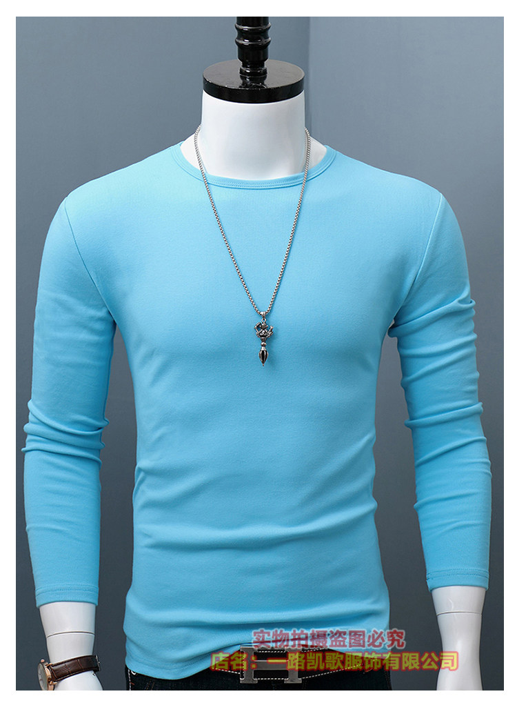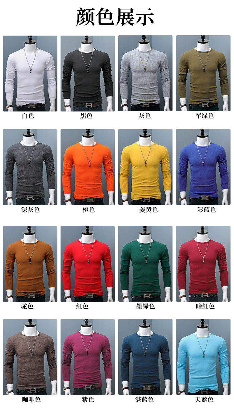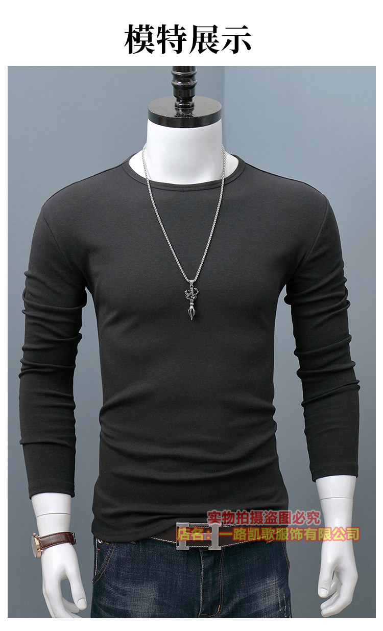 圓領長袖打底衫男士棉質秋冬季大碼修身純色透氣簡約大碼t恤上衣