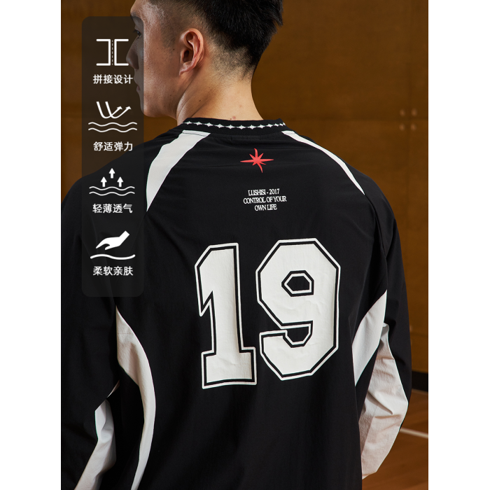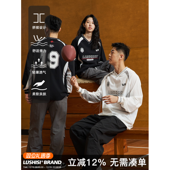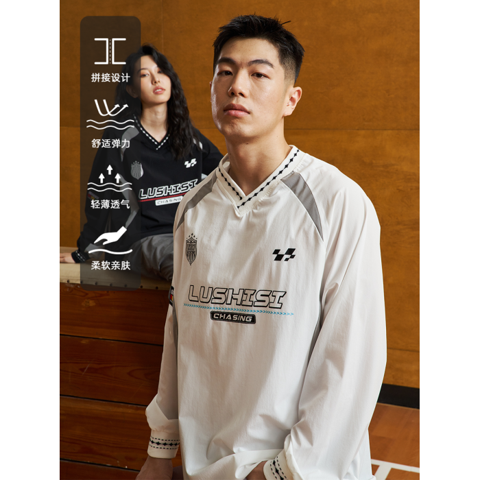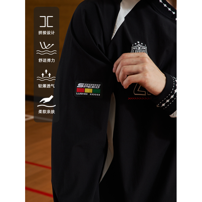 LUSHISI「拼接設計」復古運動休閒衛衣長袖T恤追逐未來V領賽車服