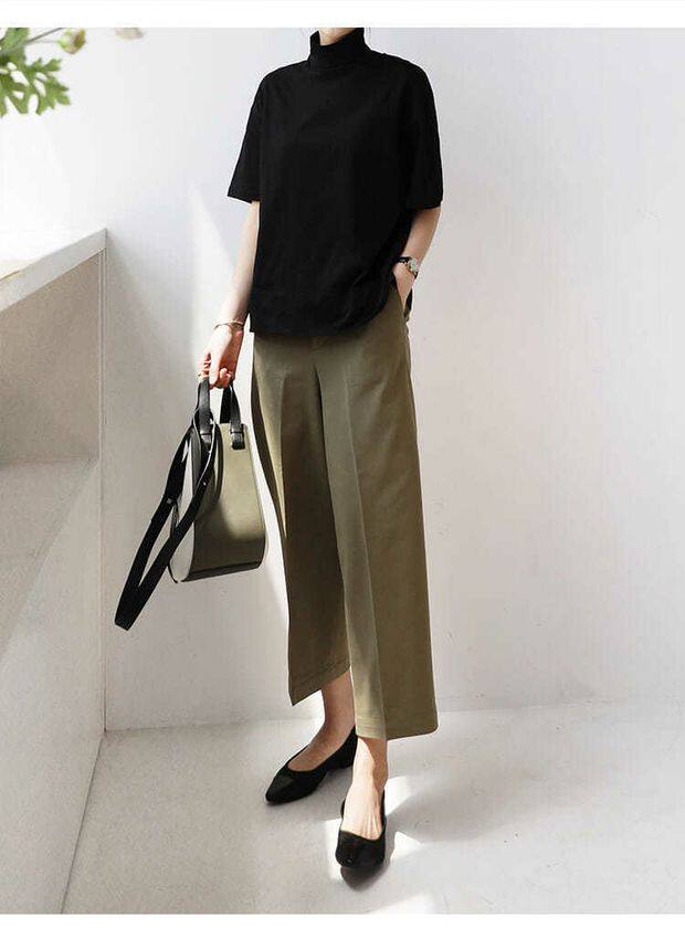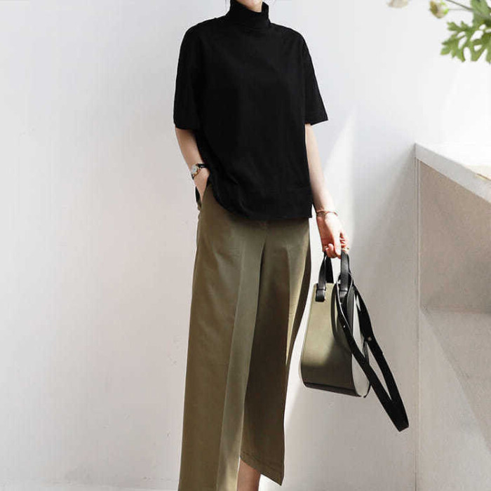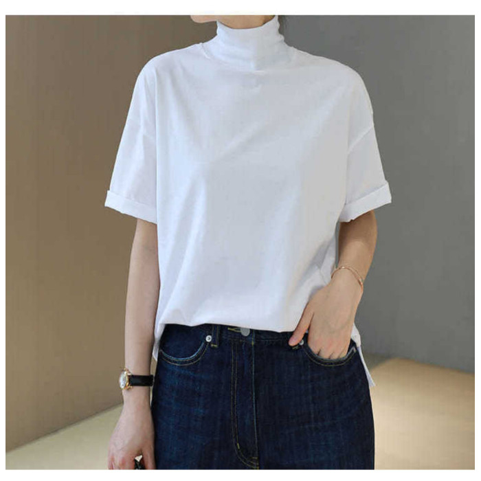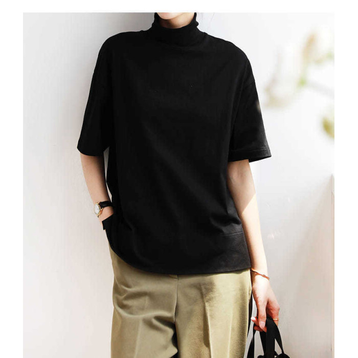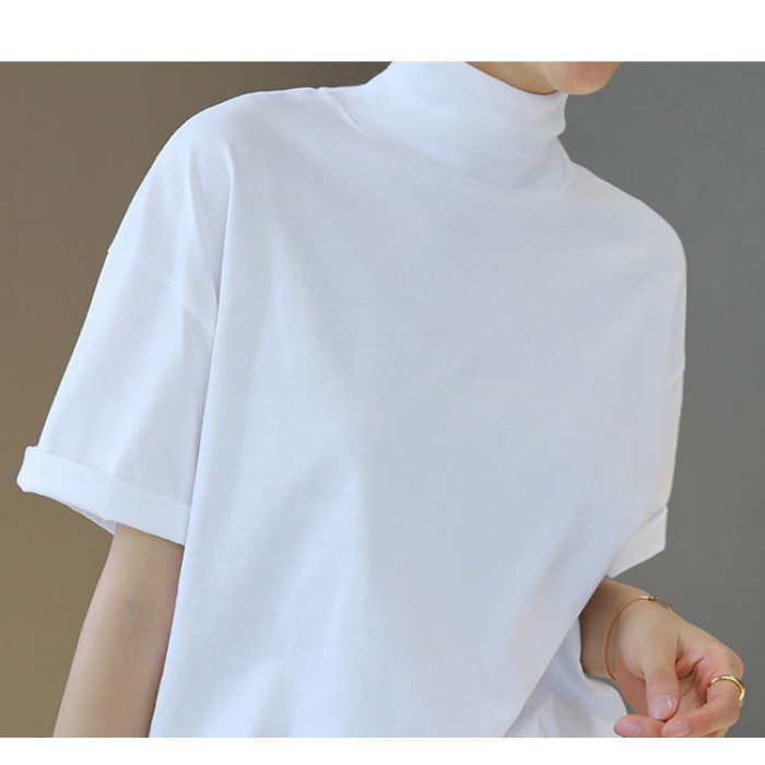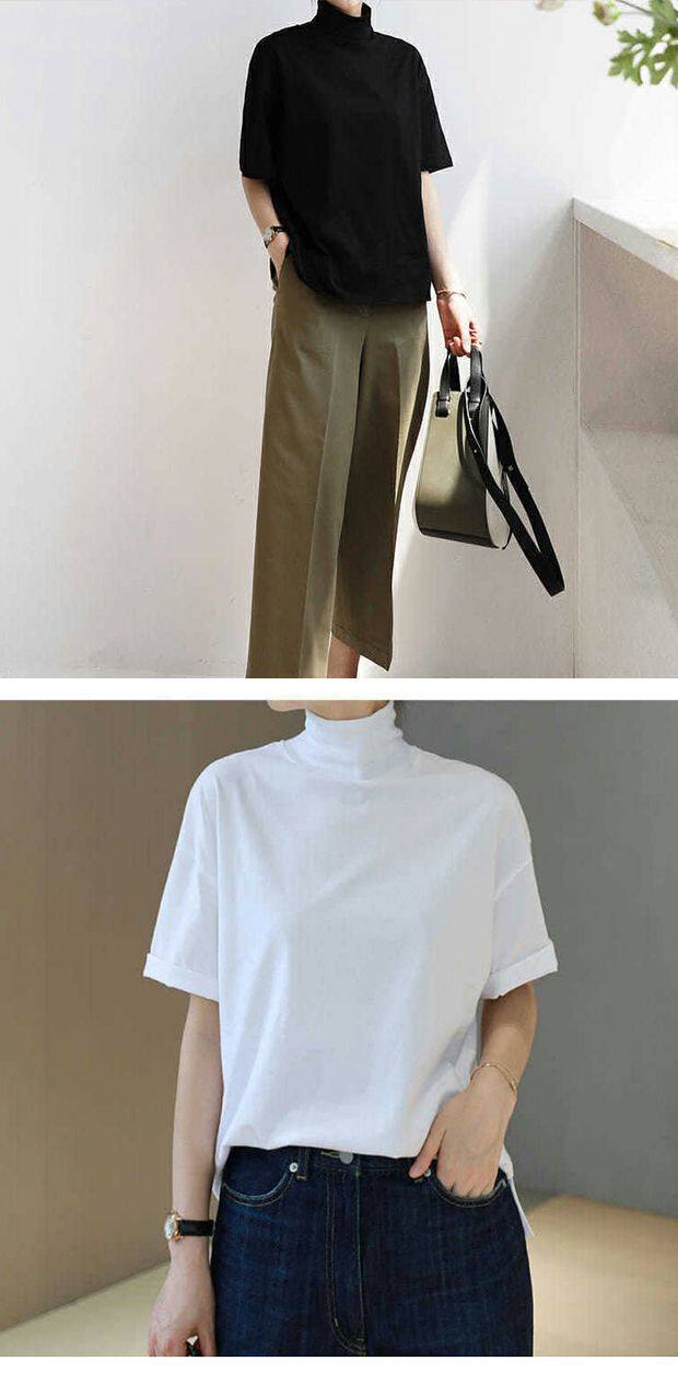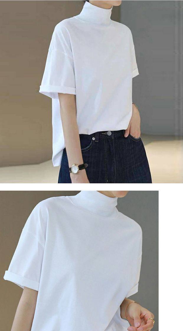小衆設計感半高領t恤文藝範男女寬松短袖ins洋氣中領體恤親膚舒適
