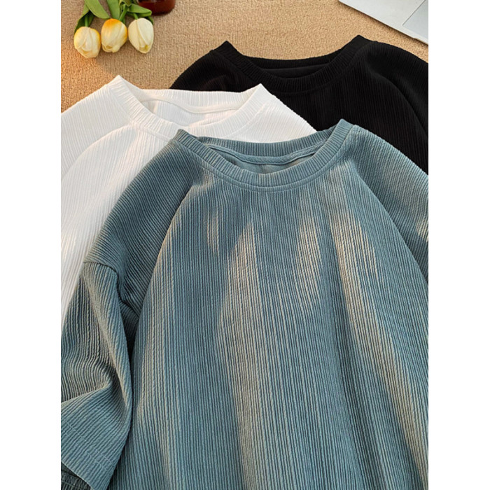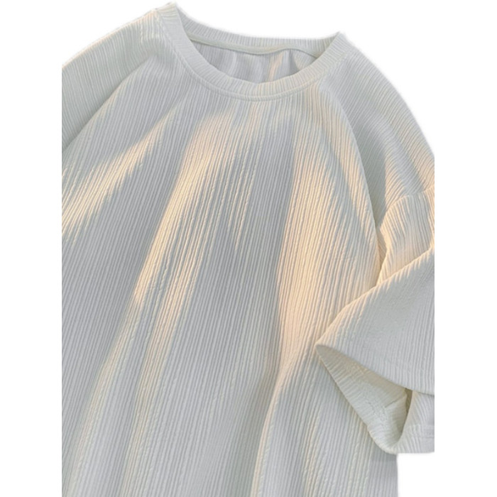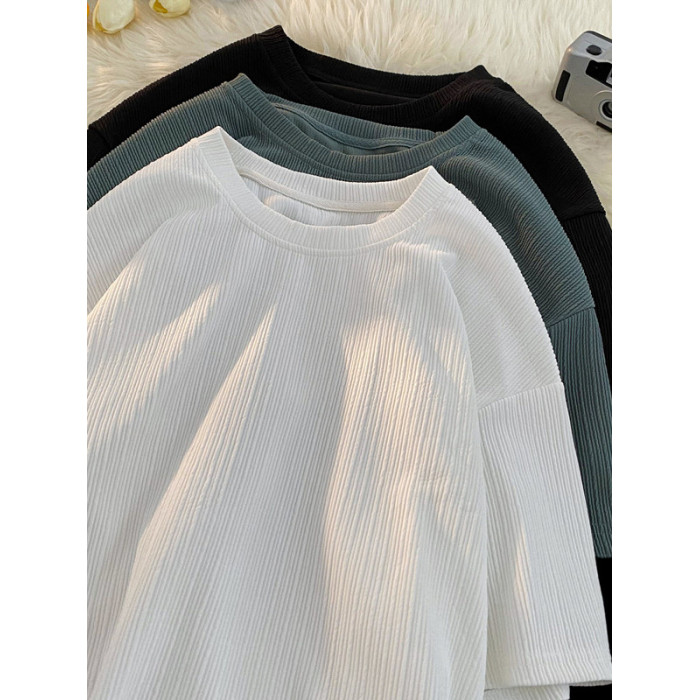 冰絲涼感T恤男士短袖夏季潮流寬松純色打底衫ins韓版情侶半袖體恤