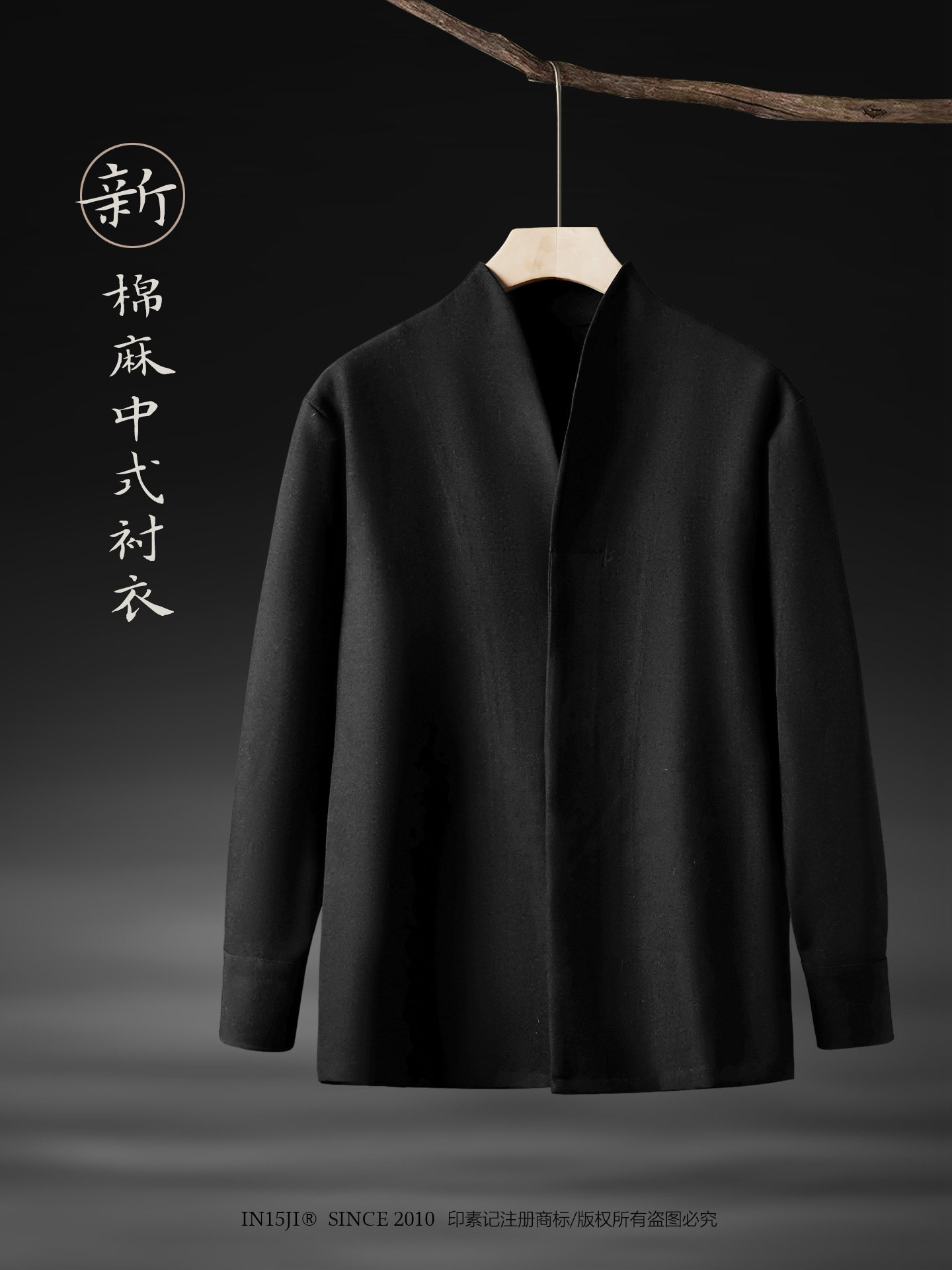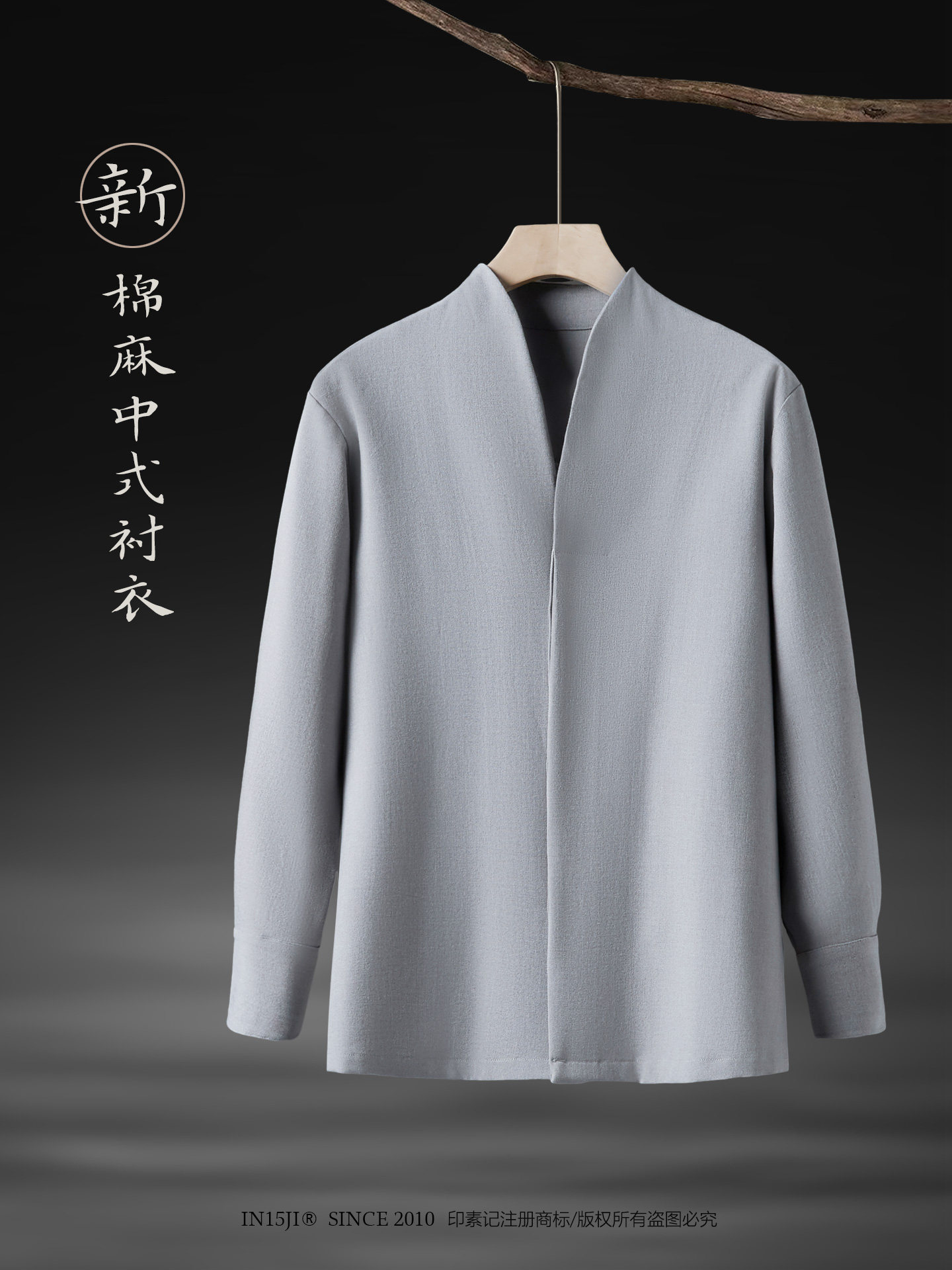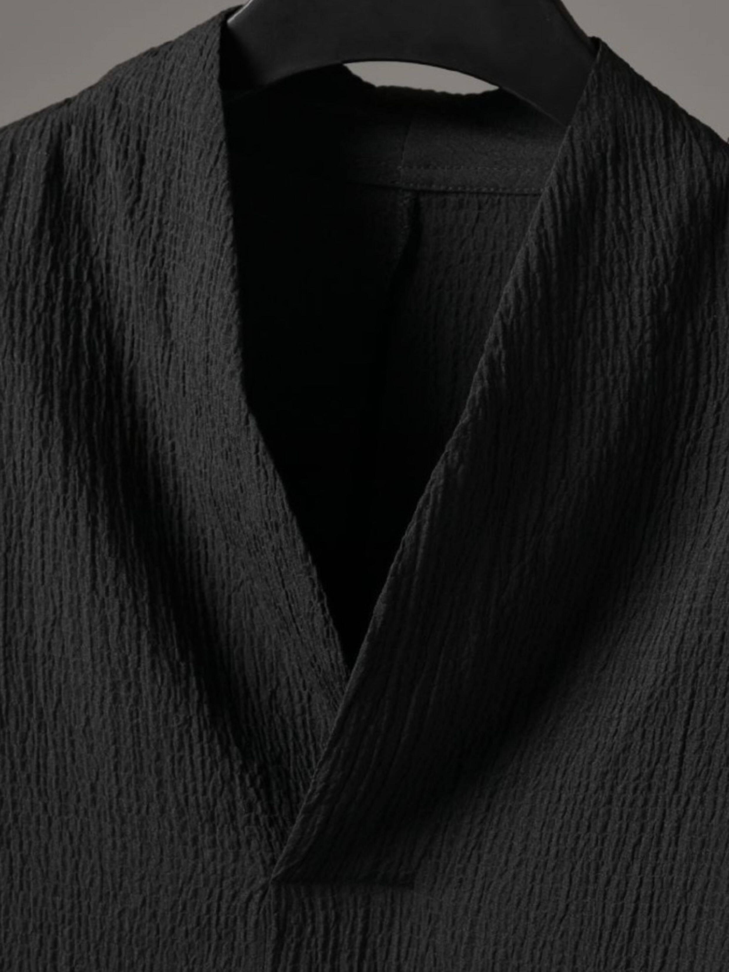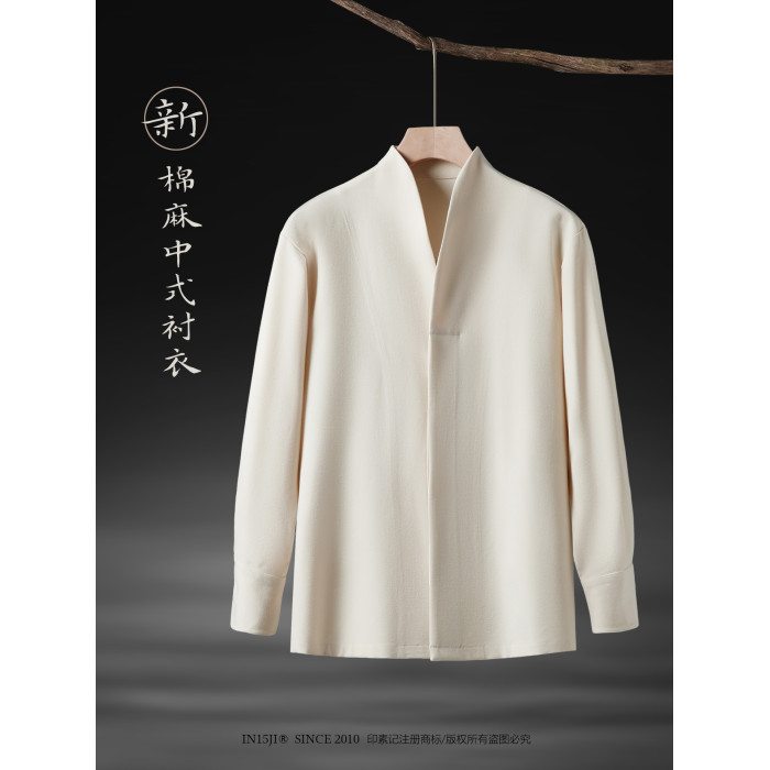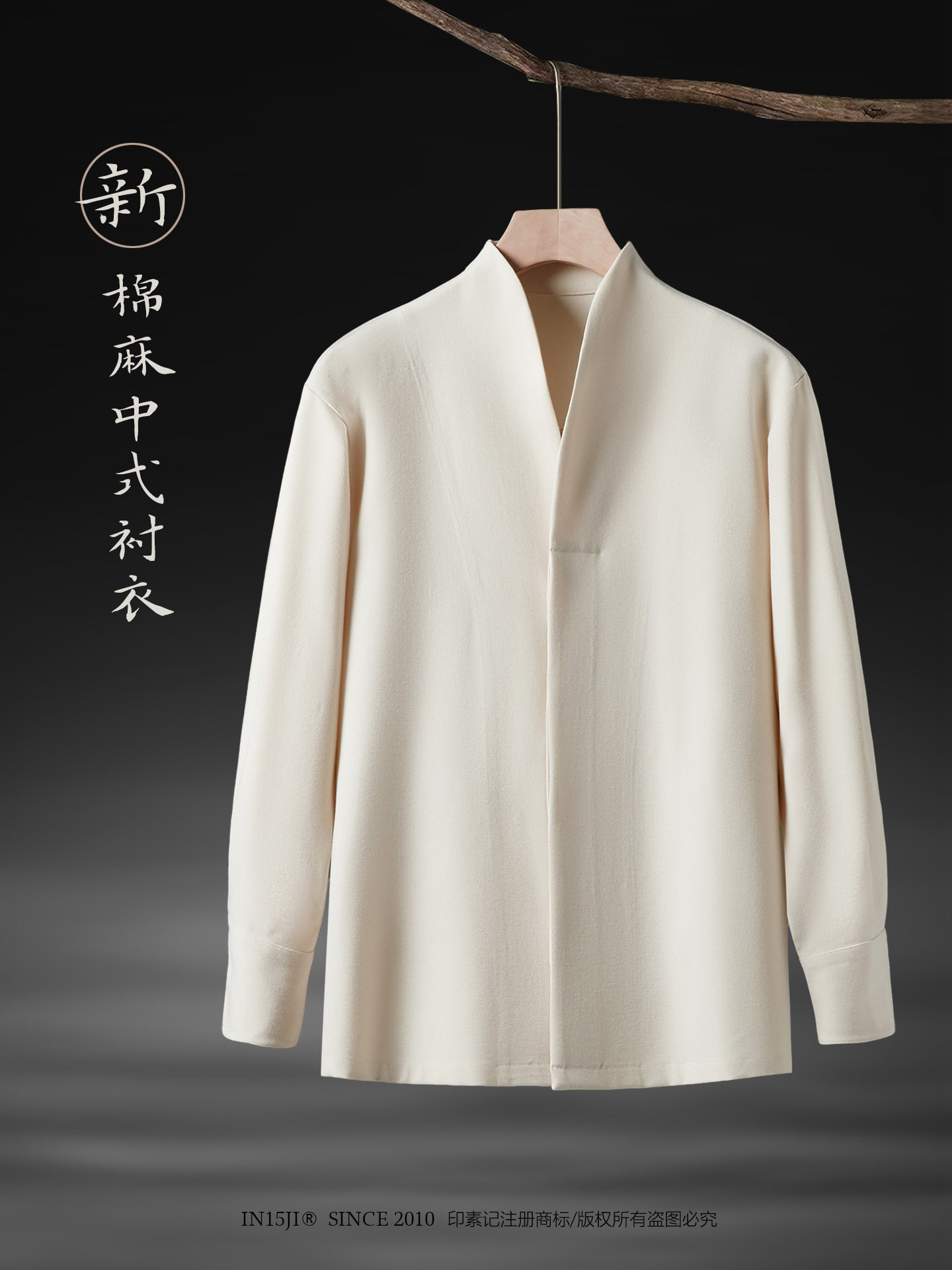 風男裝夏季復古風冰絲T恤短袖男士套裝上衣V領中式漢服七分袖